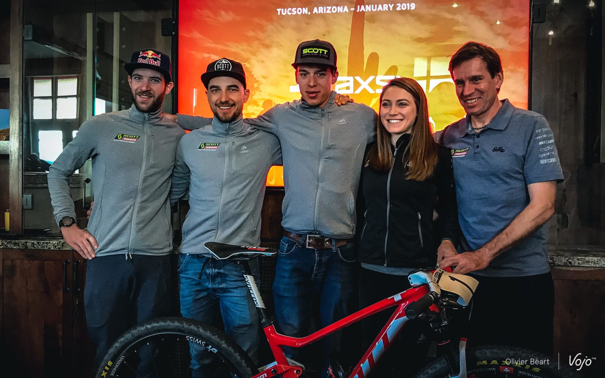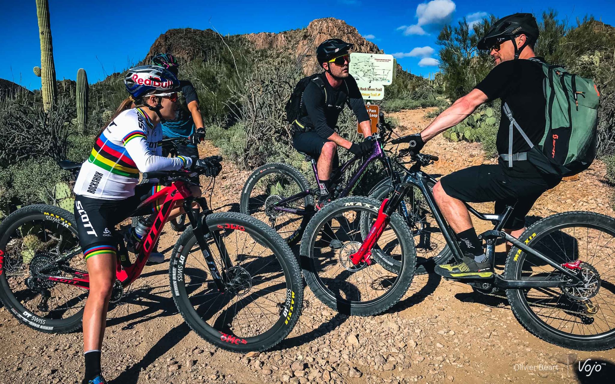 Vojo : Kate, pour commencer, comment ne pas vouloir revenir sur cette incroyable journée du 8 septembre 2018, où tu as décroché le titre de championne du monde pour cette première année dans la catégorie Elite. As-tu réalisé de suite ? Kate Courtney : « Clairement, cela m’a pris du temps de réaliser. J’étais surtout heureuse parce que ma famille avait fait le déplacement et réussir à gagner mon premier titre majeur devant eux, c’était quelque chose de très spécial. D’autant que l’ambiance à Lenzerheide était probablement la plus incroyable jamais vue sur une course de VTT, avec une assistance record. Mais ensuite, la saison était finie et je n’ai pas encore eu l’occasion de porter le maillot en course. Là, j’imagine que cela me fera encore un petit effet supplémentaire, je suis assez impatiente que cela arrive. Par contre, quand je suis sortie pour la première fois en le portant, simplement sur route pour monter le Stelvio, là, j’ai repensé et un peu pris conscience que j’avais bien gagné le titre de championne du monde Elite. » C’est vrai que chez les U23, j’ai progressé petit à petit en faisant 8e du général en 2014 pour ma première année, puis 4e en 2015, 2e en 2016 avant de remporter le général en 2017 pour ma dernière saison dans la catégorie. La transition vers le niveau Elite s’est faite assez naturellement et j’ai vu que j’étais d’emblée compétitive face aux références de la catégorie. Par contre, jusque là, je n’avais jamais eu de réussite sur les championnats du monde (elle n’a jamais conquis le maillot irisé en U23) et je voulais que cela change. J’avais été blessée au genou en juin et j’ai dû faire une petite pause. Mais cela m’a surtout permis de vraiment axer toute ma deuxième partie de saison sur un seul objectif, les championnats du monde, et d’arriver avec un vrai pic de forme à ce moment là. On peut ajouter que le parcours de Lenzerheide me convient bien, et au final, tout s’est parfaitement bien déroulé ! Non, pas vraiment. Par contre c’est en effet quelqu’un dont je connais bien la façon de rouler. Je savais qu’elle était forte, mais je savais aussi surtout que je pouvais la battre. Quand j’ai vu que je revenais sur elle, j’ai pris confiance. Mais j’ai l’habitude de me concentrer surtout sur ma course la tactique globale, mais moins sur mes rivales, quelles qu’elles soient. Oui, c’est vrai que ce sera un de mes objectifs l’an prochain. Cela montrera que ce titre de championne du monde est juste mon premier titre, mais que ce n’est pas juste un hasard ou un coup d’éclat isolé. J’ai veux donc décrocher une, et même plusieurs victoires en coupe du monde aussi, dès l’an prochain. Avoir le maillot irisé sur les épaules change aussi les choses, on est beaucoup plus regardé. L’an dernier j’ai été régulière dans le top 10 et j’ai réussi à passer un gros cran en fin de saison. Là je veux m’installer dans la durée, et montrer mon arc-en-ciel sur les podiums. Comme on le disait tout à l’heure, la régularité a toujours été une de mes caractéristiques dans la catégorie U23, je vais faire en sorte que cela le soit aussi en Elite. Mais le niveau est très élevé, beaucoup plus serré et il y a beaucoup plus de candidates à la victoire en Elite. Ce sera donc dur mais j’ai mis tous les atout de mon côté pour y arriver. Oui. C’est un pas important pour moi. J’ai grandi avec Specialized et je les en remercie. Mais là, avoir l’opportunité d’apprendre aux côtés des meilleurs, avec Nino comme équipier et Frischi comme team manager, c’est juste exceptionnel. L’équipement joue aussi un rôle et ici c’est non seulement le team d’une marque de vélo, mais aussi celui de Sram, qui compte beaucoup sur les coureurs pour tester de nouvelles solutions et développer le matériel. C’est important pour moi et l’assurance d’avoir toujours ce qui se fait de plus pointu. Pour revenir au côté sportif, c’est un vrai team de champions du monde et je sais qu’en les rejoignant, je mets toutes les chances de mon côté pour réussir à atteindre mes objectifs futurs, en coupe du monde, mais aussi aux jeux olympiques. La décision de changer d’équipe remonte à bien avant les championnats du monde ? J’y pensais, en effet, et les conversations ont commencé avant. Firschi vient toujours voir la course des filles, et il n’a pas arrêté même quand Jenny Rissveds n’était plus là. Nous avons parlé plusieurs fois ensemble, et même quand il n’était pas question que je le rejoigne chez Scott-Sram, il m’avait déjà donné quelques conseils. J’ai perçu que c’est un authentique leader, un vrai mentor avec une expérience unique qui peut vraiment m’aider. Il a aussi un vrai souci de transmission que j’apprécie. Oui, Brad Copeland est plus qu’un mécano pour moi, c’est un ami proche. En changeant de vélo, je voulais garder une certaine continuité en le gardant à mes côtés. Il échange beaucoup avec Yannick, le mécano de Nino, et cela m’aide à trouver plus vite mes réglages sur le nouveau vélo. Dans l’ensemble, le staff de l’équipe est très fort pour cela car niveau postural et suspensions, j’ai trouvé très vite mes repères sur mon nouveau Scott Spark RC, pourtant fort différent de mon vélo précédent. Cela m’évite de perdre du temps et cela va me permettre, je l’espère, d’être compétitive directement en 2019.