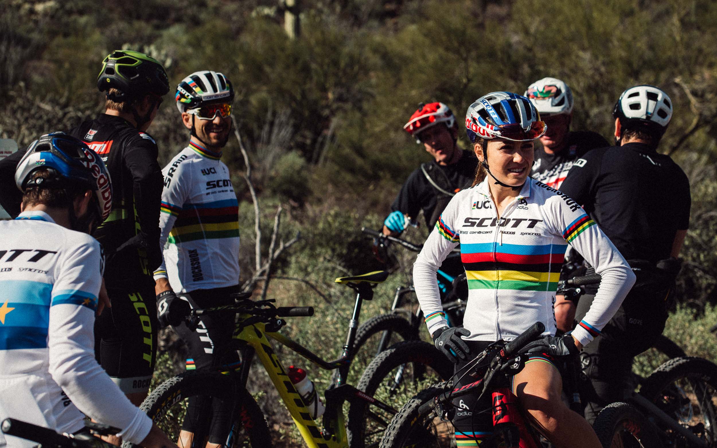 Récemment transférée du team Specialized au team Scott-Sram, elle avait attiré l’attention de Thomas Frischknecht il y a un moment déjà. Il la suivait discrètement, comme tout bon manager qui pense à l’avenir. Sans plus. Jusqu’à ce qu’au départ de la championne olympique Jenny Rissveds, en proie à des soucis psychologiques et souhaitant faire une pause, soit acté début 2018. Le moins qu’on puisse dire, c’est que l’expérimenté team manager du team Scott-Sram a eu le nez fin, puisqu’au moment de rejoindre l’équipe, elle a emmené avec elle le titre de championne du Monde Elite, permettant à l’équipe d’avoir les deux maillots arc-en-ciel Elite dans ses rangs (avec Nino Schurter) après avoir eu les deux champions olympiques !