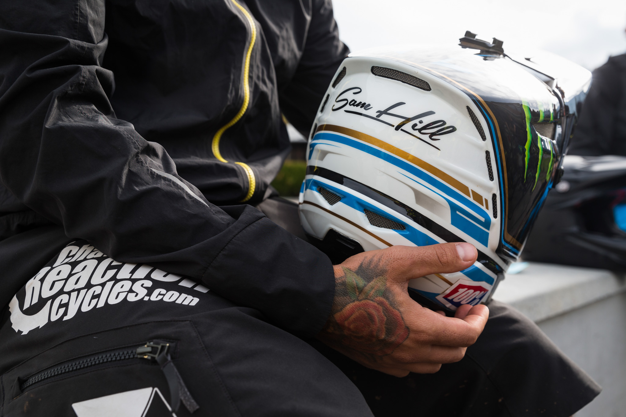 Pour poser le contexte, Cécile connaît Sam depuis longtemps. Du temps où elle roulait en cross-country et lui en DH. Hill roulait alors dans le même team que la double championne du monde et meilleure amie de la pilote Commençal. Quand, après lui avoir posé quelques questions générales de notre cru, on lui a expliqué qui l’interrogeait ensuite, l’Australien triple champion du monde DH et double vainqueur de la coupe du monde a esquissé un sourire avant de se prêter au jeu. Avant de passer aux questions de Cécile, quelques interrogations nous taraudent : Sam, est-ce que cette première saison complète d’enduro correspond à ce que tu en attendais ? Oui. L’année dernière, j’étais quand même encore concentré sur la descente, mais j’ai participé à trois ou quatre épreuves d’enduro, et j’ai vraiment aimé les destinations, les pistes, les spéciales. Cette année, j’en ai découvert encore d’autres, et ça fait vraiment du bien. Je suis vraiment très heureux d’avoir switché et d’être passé à l’enduro. Vous avez des conditions particulières depuis le début de l’année, très humides. Comment tu le gères ? La boue et la pluie, c’est une réalité avec laquelle tout le monde doit composer, c’est vrai que ça démotive un peu tout le monde, j’espère bien que les prochaines, relativement techniques, se feront sur le sec. « En enduro, sur les recos, tu n’as pas le temps de t’amuser, d’apprendre la piste de façon relax, c’est plus dur, mais ça rend aussi la compétition bien plus fun… » Comment les abordes-tu ? Tu es 2e derrière Adrien Dailly, mais pas si loin (à 80 points)… Oui, c’est une belle bagarre pour la victoire entre Adrien Dailly, Greg Callaghan et moi, c’est intéressant. Il reste 3 courses et je pense que je peux bien rouler dans les conditions sèches et poussiéreuses du Colorado et à Whistler. Donc je vais continuer à être consistant et à faire de mon mieux, en restant concentré sur chaque spéciale. Whistler sera une course stratégique ? Oui, je le pense. Mais les 3 épreuves seront physiques et techniques, sur des terrains cassants. Je vais essayer de reprendre un maximum de points sur celles du Colorado et de Whistler pour reprendre la tête avant d’arriver à Finale Ligure, mais on verra… Et maintenant, les questions de Cécile : en descente, vous reconnaissez beaucoup la piste, vous avez une reco à pied, une journée complète d’essais dessus, les qualifs… Tout ça pour une piste de 3 minutes. En enduro, il y a parfois jusqu’à 9 spéciales à retenir avec seulement 2 recos. Comment tu le gères ? C’est complètement différent. En enduro, sur les recos, tu n’as pas le temps de t’amuser, d’apprendre la piste de façon relax, c’est plus dur, mais ça rend aussi la compétition bien plus fun, parce qu’il reste forcément une part d’inconnue quand tu es en course. J’essaie de m’assurer de connaître au mieux les endroits-clés de la piste, où je peux aller vraiment vite, les sections un peu plus dangereuses, qui exigent de lever le pied. C’est mon approche. J’aime beaucoup cette dimension de l’enduro, ça exige de savoir réagir vraiment vite pour corriger les trajectoires si besoin. Est-ce que tu souhaiterais quand même reconnaître davantage, quitte à rapprocher l’enduro de la DH ? Non, c’est ce qui fait l’essence et la qualité de l’enduro. Une ou deux recos, ça suffit pour intégrer les parties dangereuses sur la piste ; le reste, c’est à toi de le gérer le jour de la course. Sans ça, ça deviendrait un peu trop facile… « Je suis content de mes pédales plates, et je suis trop vieux maintenant pour essayer autre chose (rires) ! » Comment gères-tu ces reconnaissances ? Tu as gardé la même approche qu’en DH ? En descente, comme on connaît chaque centimètre de la piste, on se doit d’être à chaque fois au maximum de notre vitesse, sur toutes les portions. En enduro, tu ne peux pas toujours te souvenir de ce qui va arriver juste après, donc il faut accepter de parfois perdre un peu de temps, de n’être pas toujours aussi rapide que tu pourrais l’être si tu connaissais la spéciale sur le bout des doigts. On est davantage dans la capacité de réagir vite à une situation. L’enduro demande de l’endurance, de l’explosivité et des aptitudes techniques importantes. La DH met surtout l’accent sur l’explosivité et les aptitudes techniques. Pour cette année, est-ce que tu as éprouvé le besoin de travailler encore ta technique ou tu as plutôt mis l’accent sur le physique? J’ai plutôt ressenti le besoin de travailler sur le côté physique. Plus que sur le technique, que j’entretiens quand je roule chez moi, par exemple. Là, j’ai davantage veillé à m’affûter physiquement…