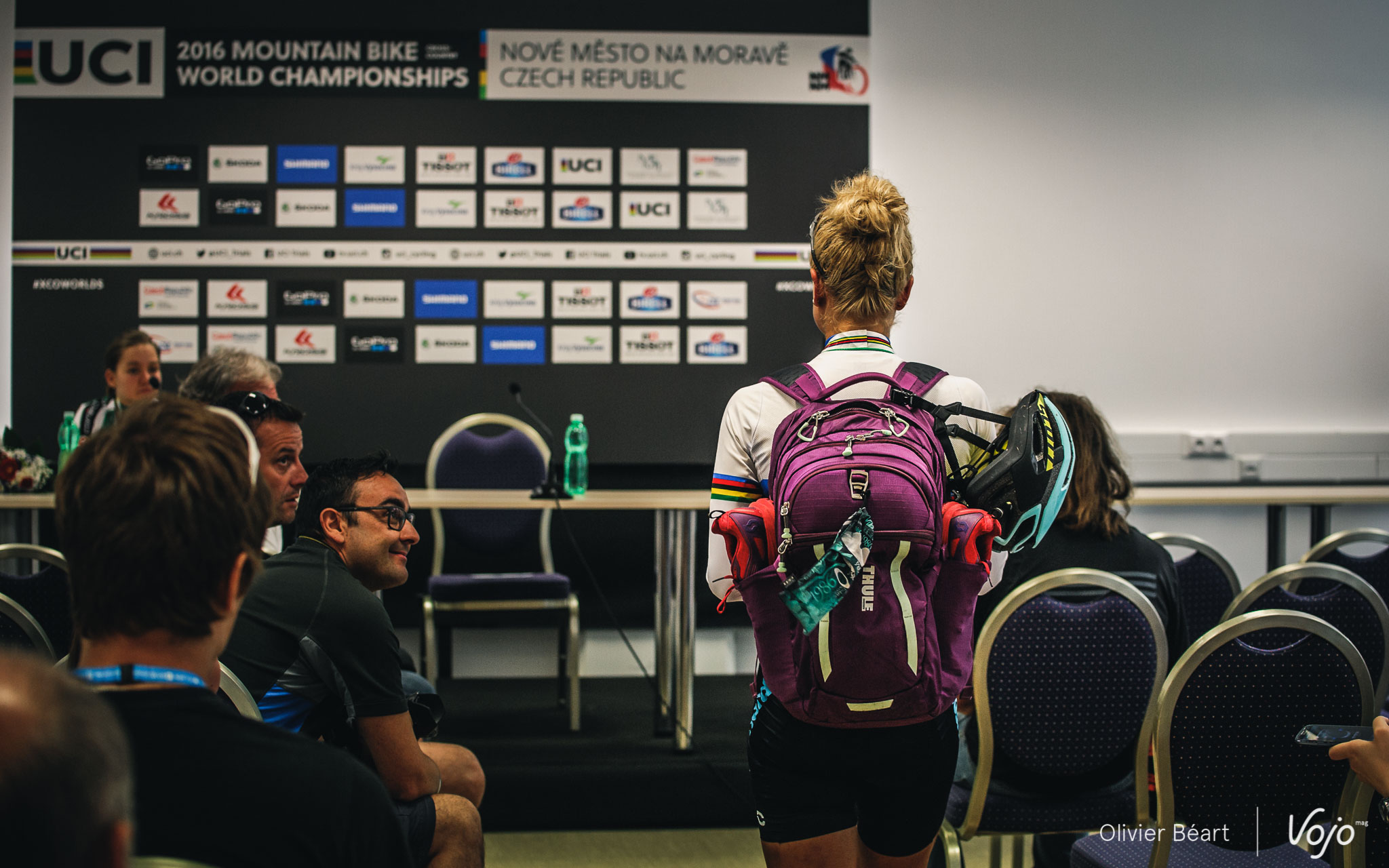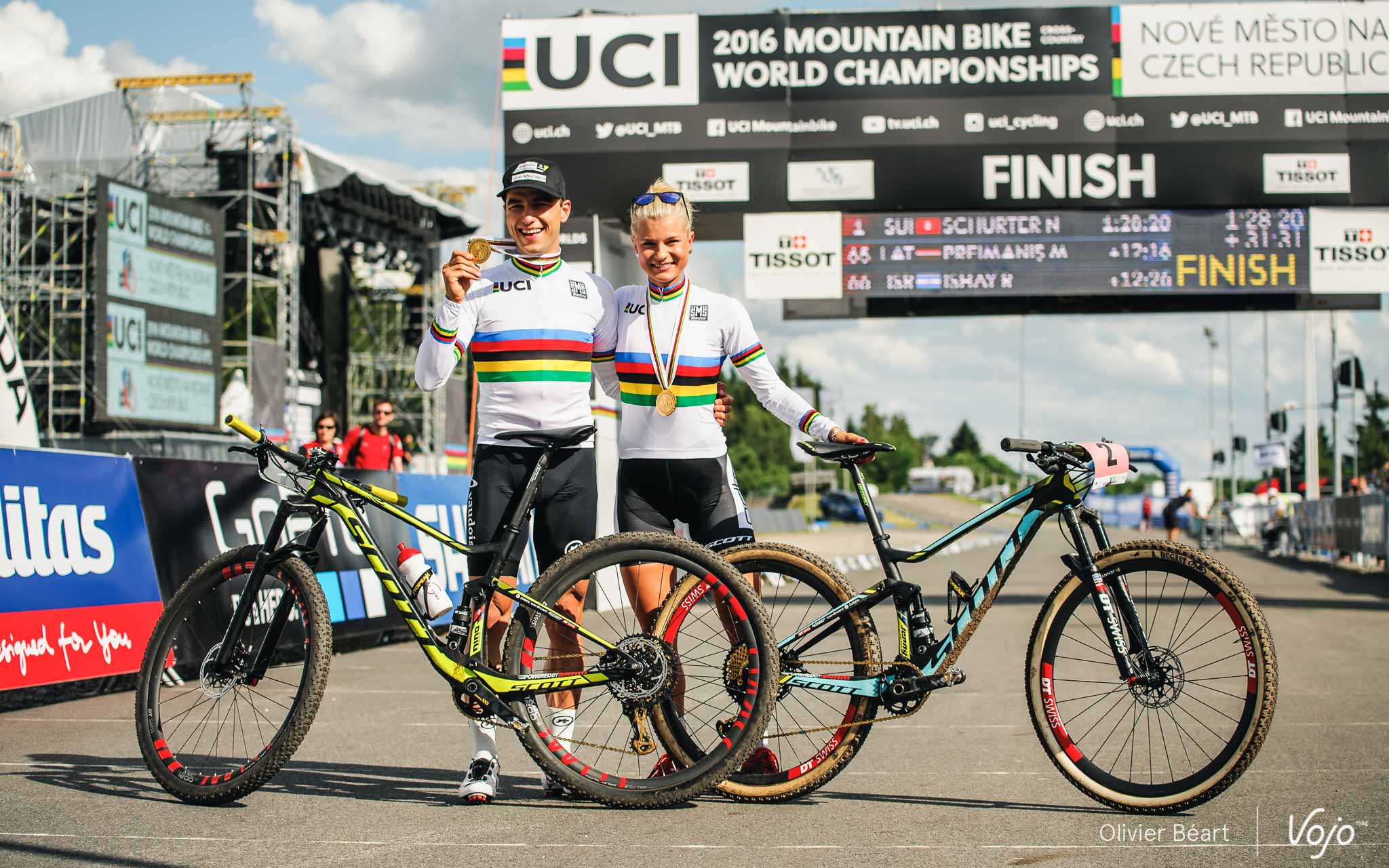 C’est vrai que je voulais vraiment ce titre de championne du Monde U23 qui m’avait échappé jusque là. Mais je ne pense pas que cette victoire m’a donné plus de confiance. Début 2016, j’ai fait le choix de rouler en catégorie Elite sur les Coupes du Monde, un an avant l’échéance normale. Dès la première manche à Cairns, j’ai vu que je pouvais être performante avec les meilleures en terminant 9e malgré une selle cassée qui m’avait fait rétrograder jusqu’en 45e position à un moment. Puis, à Albstadt, j’ai terminé 2e malgré une chute. C’est cela qui a construit ma confiance tout au long de la saison, car j’ai réussi à être constante au plus haut niveau.