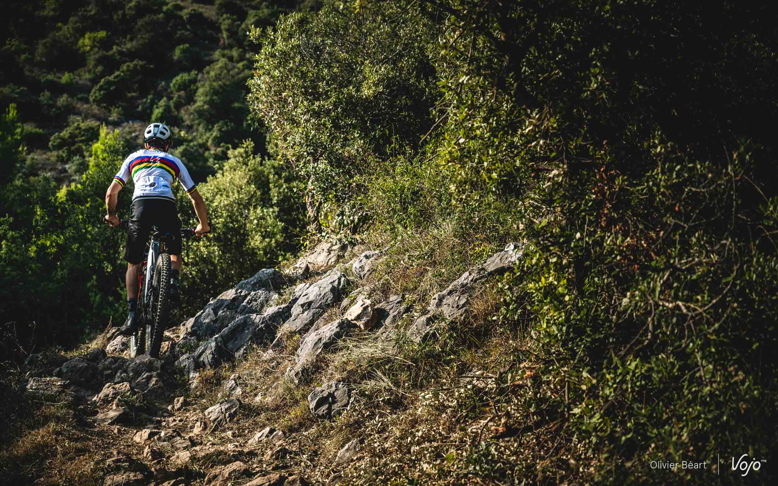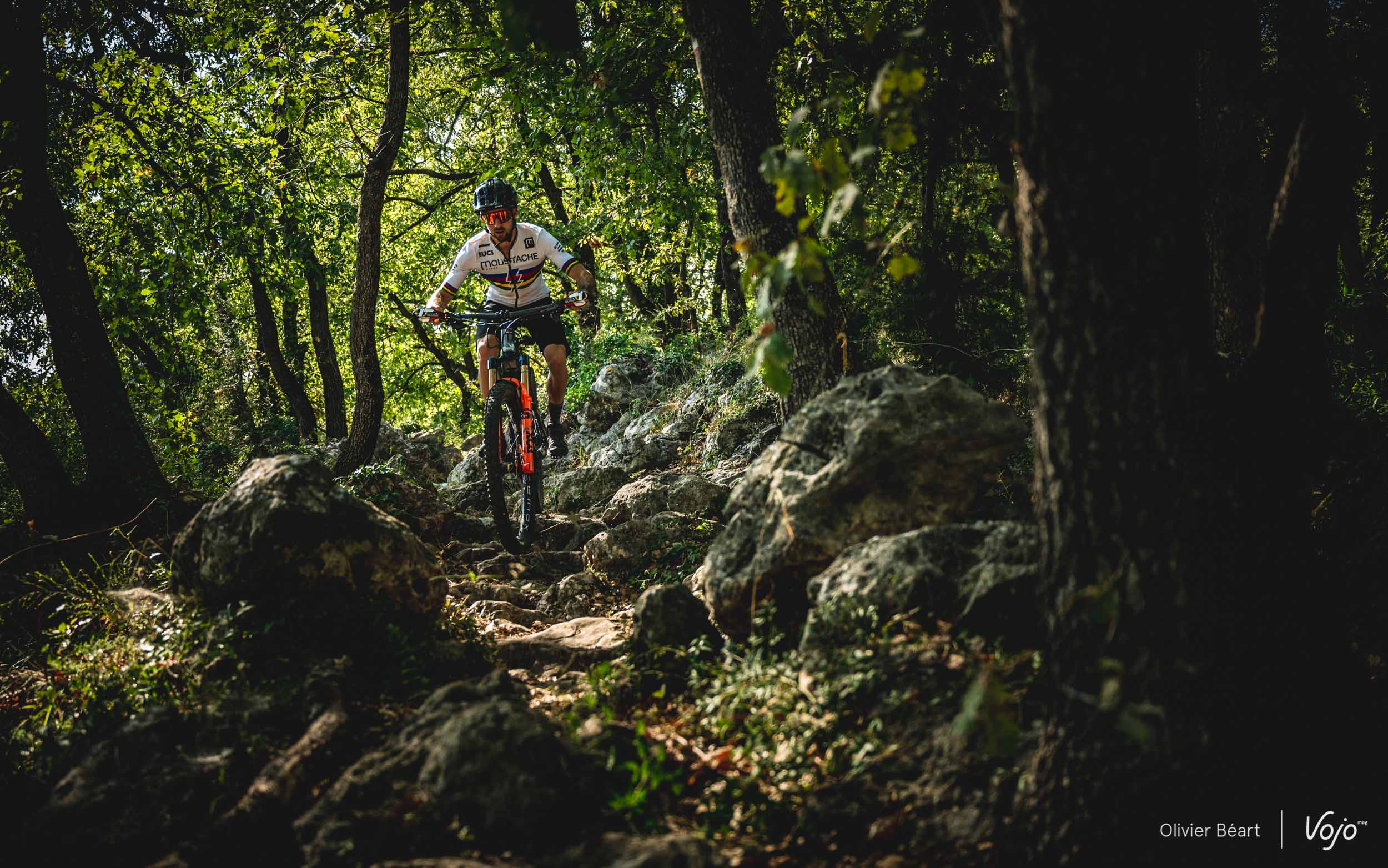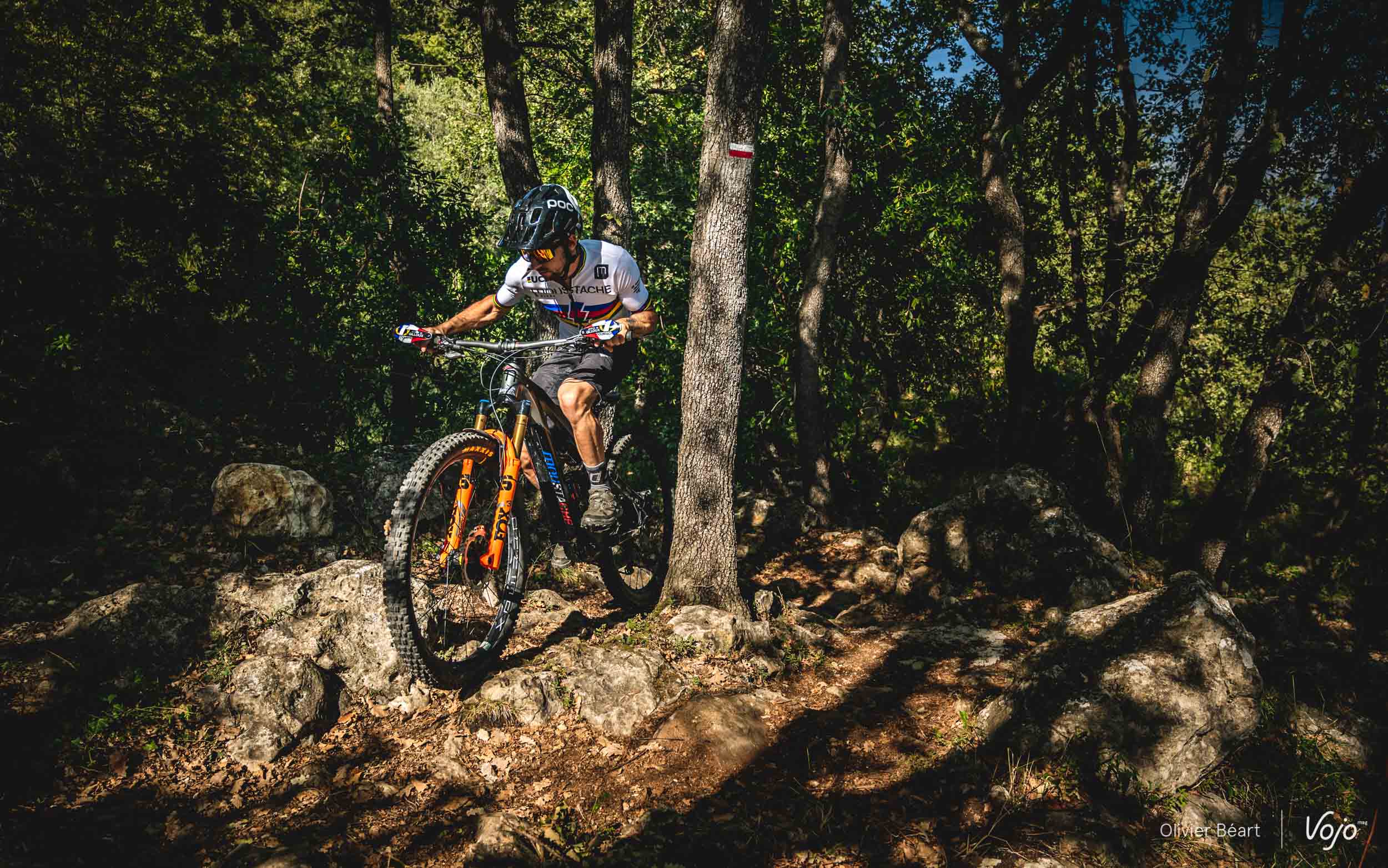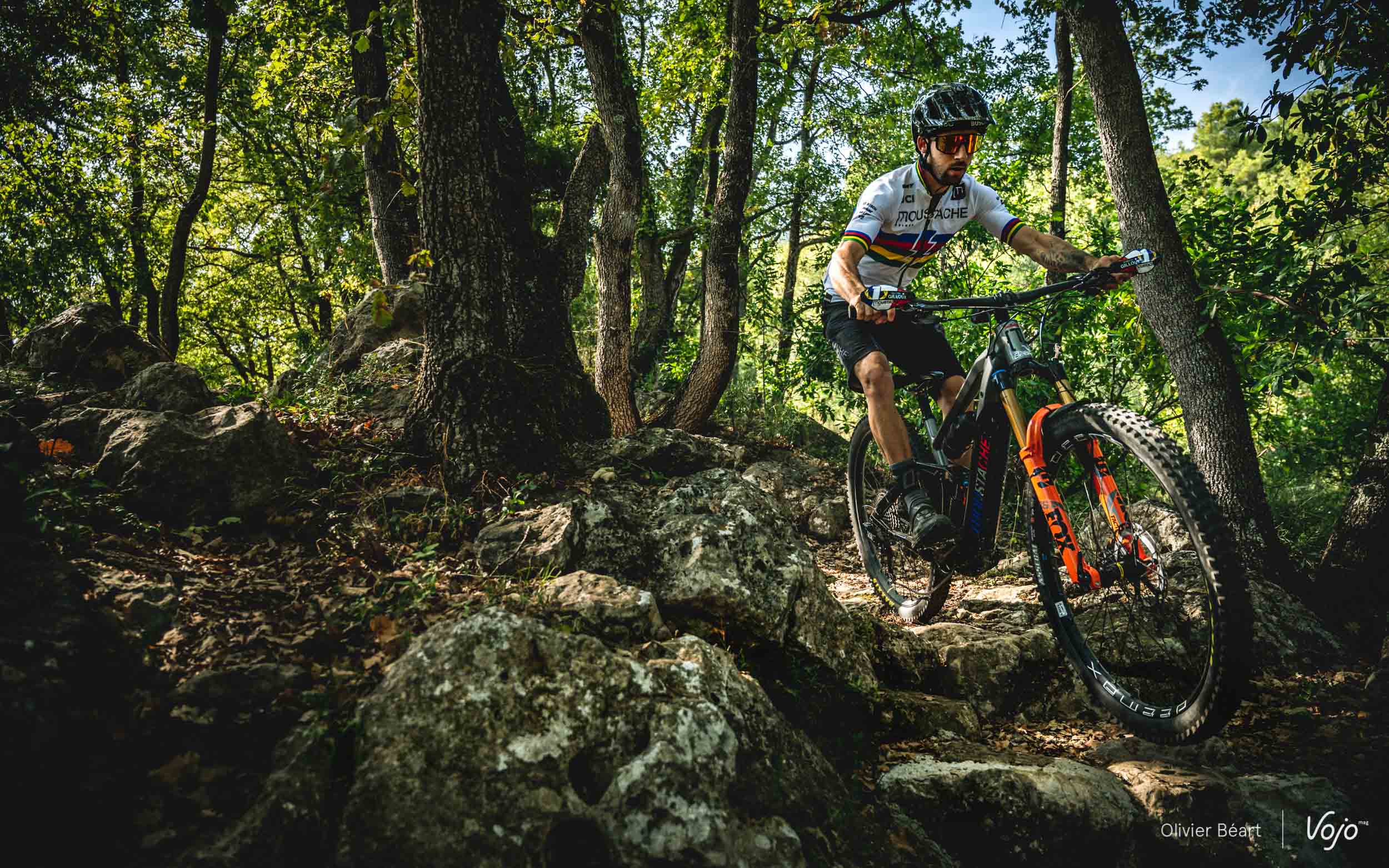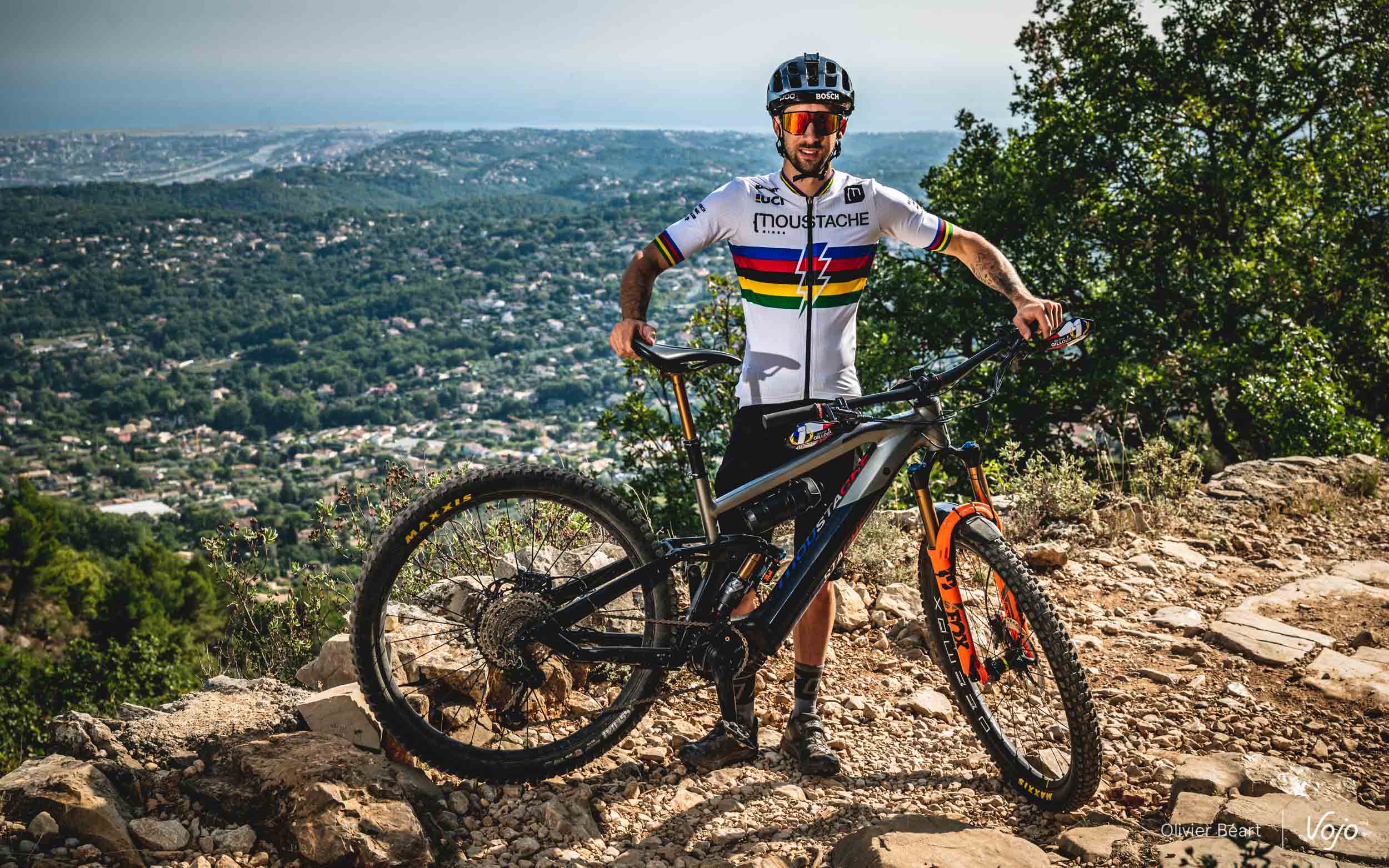 Tout en étant sincèrement heureux du titre de Jérôme, et surtout de la reconnaissance amplement méritée qui va avec, c’est justement en ce sens que nous avons une nouvelle fois été très critiques par rapport au dernier championnat du monde e-bike à Val di Sole qui, vu de l’extérieur, ressemblait une nouvelle fois à un XC olympique classique, très court et sans réelle spécificité e-bike. Erreur ! Après lecture de notre article, Jérôme nous a appelés peu après pour faire valoir un point de vue différent. De là est née l’idée de rendre visite à Jérôme pour aller rider ensemble et en parler de vive voix, avec pour résultat une discussion très intéressante et constructive dont nous vous livrons ici les meilleurs moments.