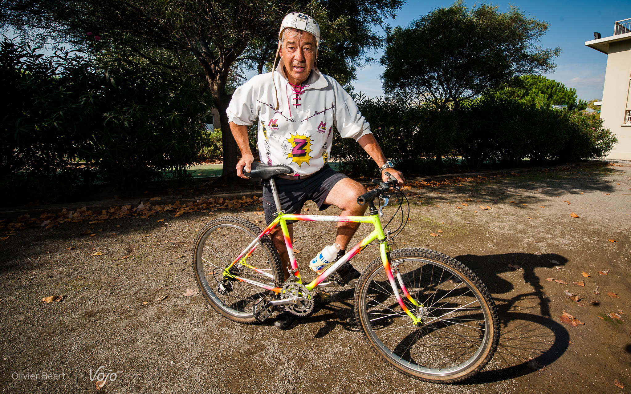 Son visage buriné rappelle qu’il a la 70-aine bien faite, mais il a toujours le regard pétillant d’un jeune loup quand il parle de VTT. Avec son casque improbable, son maillot de la mythique équipe « Z » des années 80′ et son vélo en acier, on aurait pu le confondre avec un participant de la Rando Roc déguisée, à laquelle il a d’ailleurs participé pour le fun. A la différence que chez Raymond, tout est authentique. C’est exactement comme cela qu’il y a 30 ans, il était un des sept bikers à se présenter sur la ligne de départ de ce qui allait devenir le plus grand événement VTT au Monde. Vojo Mag: Raymond, à l’époque, en 1984, personne ne connaissait encore le VTT. Vous étiez un des pionniers… V: A l’époque, pouviez-vous imaginer que le Roc allait rencontrer un tel succès ? V: C’est la première fois que vous revenez au Roc d’Azur ? V: Justement, qu’est-ce qui a changé dans le Roc depuis les débuts ? V: En 30 ans, le VTT aussi a beaucoup évolué. Vous avez amené votre vélo de l’époque, pouvez-vous nous le présenter ? V:Vous roulez toujours ? V: Vous vous êtes promené dans les allées du salon. Qu’est-ce qui vous a marqué ? Vojo Mag était présent en force au Roc d’Azur. Retrouvez nos autres articles sur cette épreuve mythique ici: