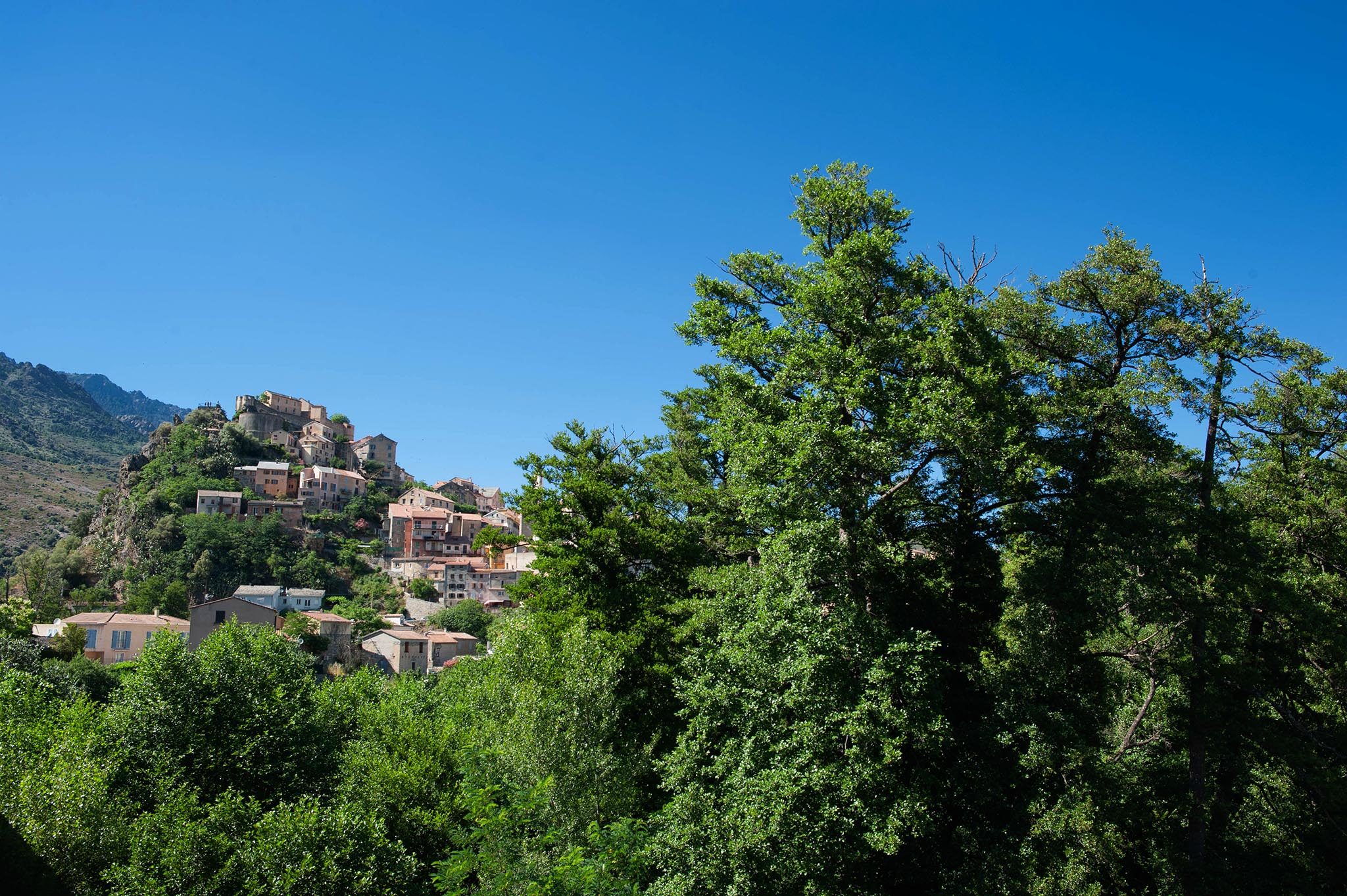 L’itinéraire traverse une vallée perdue, celle formée par le Colombano. Arrivé au col éponyme, la beauté de l’île est provocante. Dans la plongée vers la Balagne, en amphithéâtre autour de la Grande Bleue, se déroule face à moi des villages de caractère.