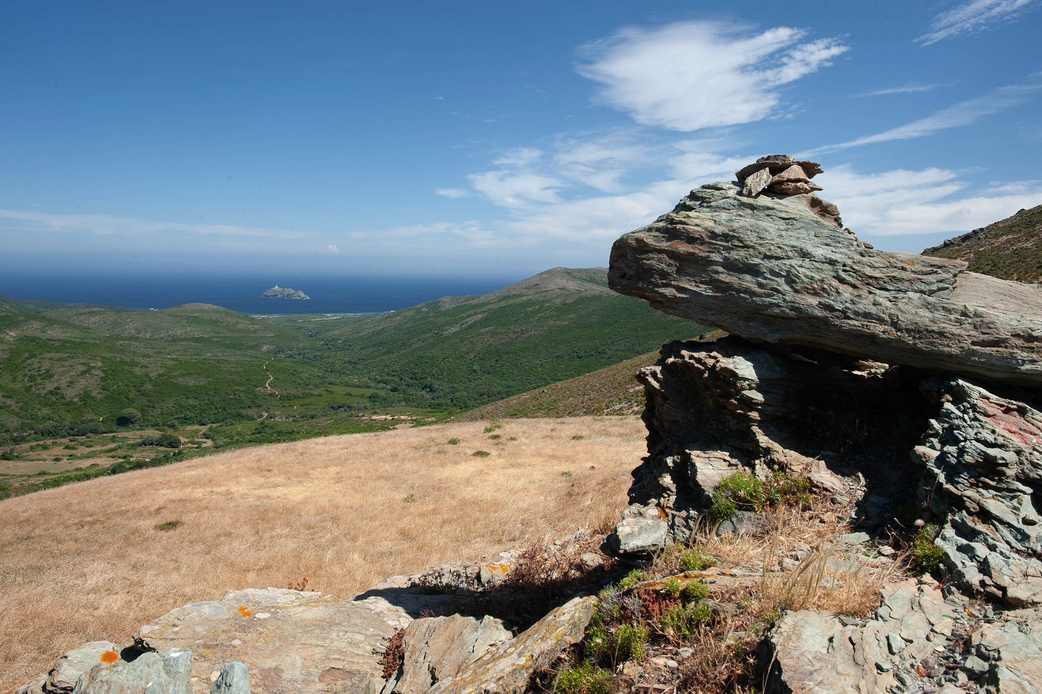 L’itinéraire traverse une vallée perdue, celle formée par le Colombano. Arrivé au col éponyme, la beauté de l’île est provocante. Dans la plongée vers la Balagne, en amphithéâtre autour de la Grande Bleue, se déroule face à moi des villages de caractère.