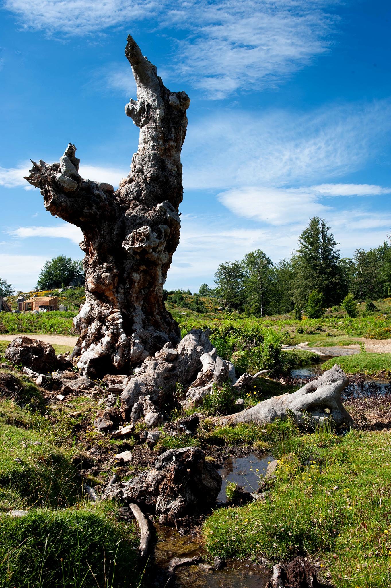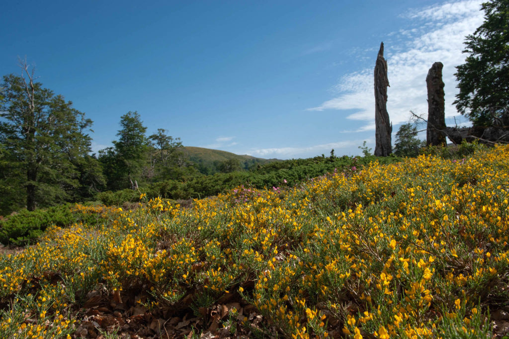 De l’autre côté d’une colline, je pénètre dans un immense jardin avec une profusion de couleurs et de ruisseaux coulant entre des tapis de mousse. C’est le royaume des genêts, des arbousiers, des lavandes, du romarin et des chênes.