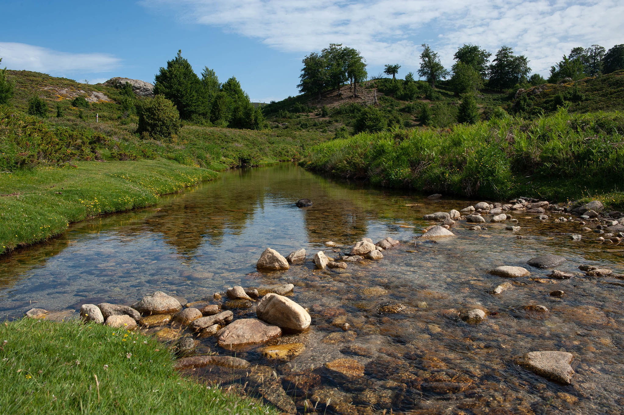 Au détour d’un chemin, j’ai l’impression de sillonner l’Ecosse, avec ses étendues vertes ondulées et entrecoupées de rochers épars.
