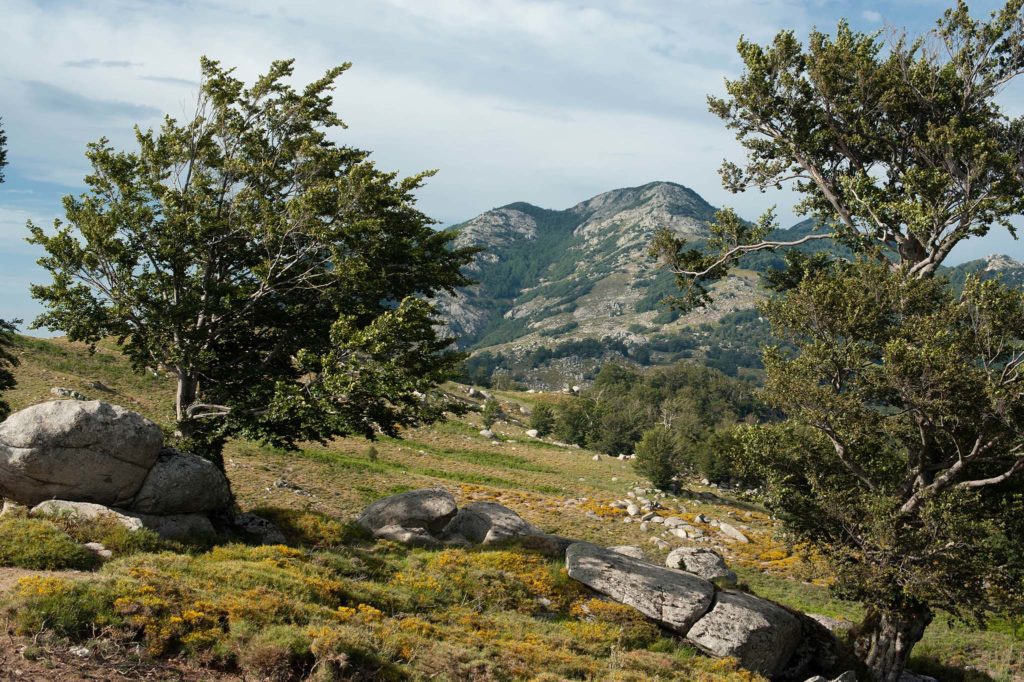 A Zicavo, je quitterai cette fois l’itinéraire de la GT20 pour m’élever plus haut, vers le plateau du Coscione. L’endroit est magique, idyllique. Et je perds tout repère. Le paysage est vaste, se confond entre le ciel, la terre et la mer.