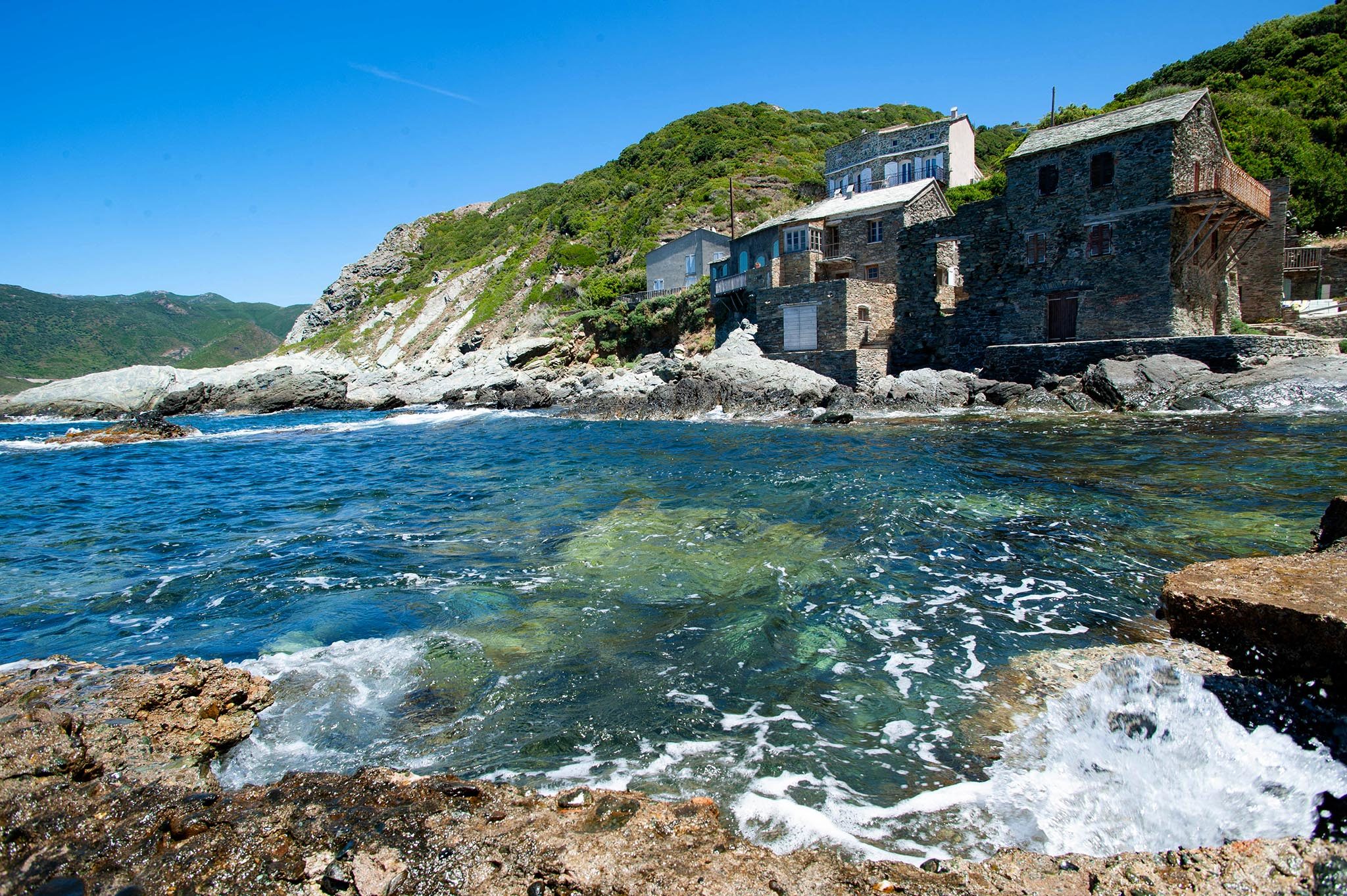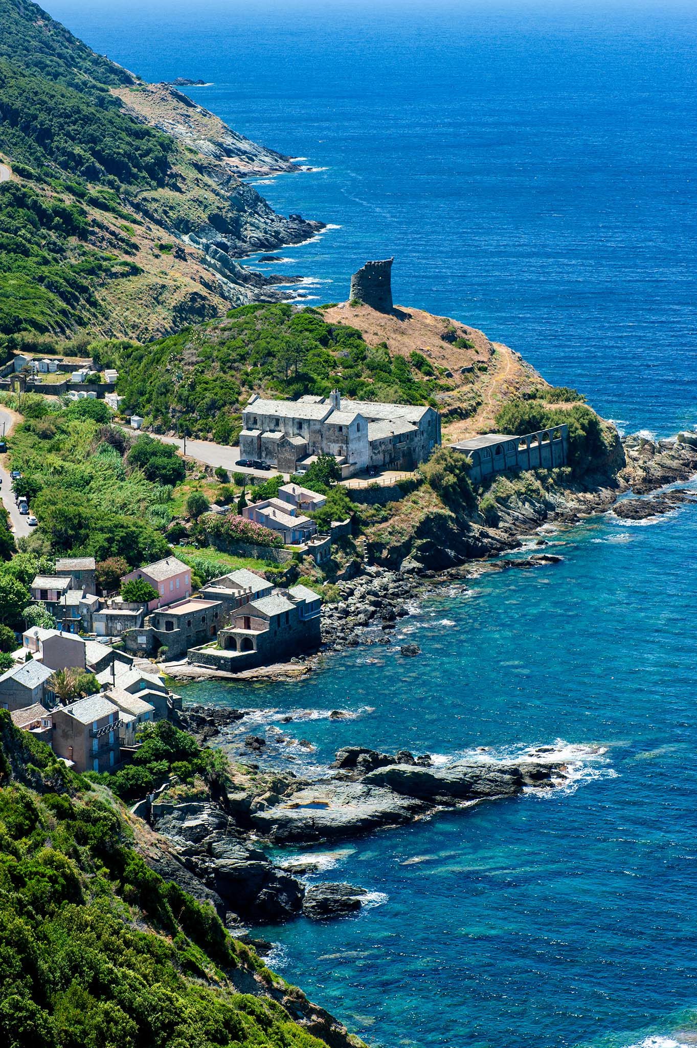 Depuis Centuri, la route est un perpétuel balcon sur les rivages de la Méditerranée : chaque virage est l’occasion d’admirer la Grande Bleue. Nul ne peut se lasser d’un tel spectacle. Et même l’usine fantôme, celle de Canari où l’on exploita de l’amiante jusque dans les années 1950, ne peut ternir ce paysage.