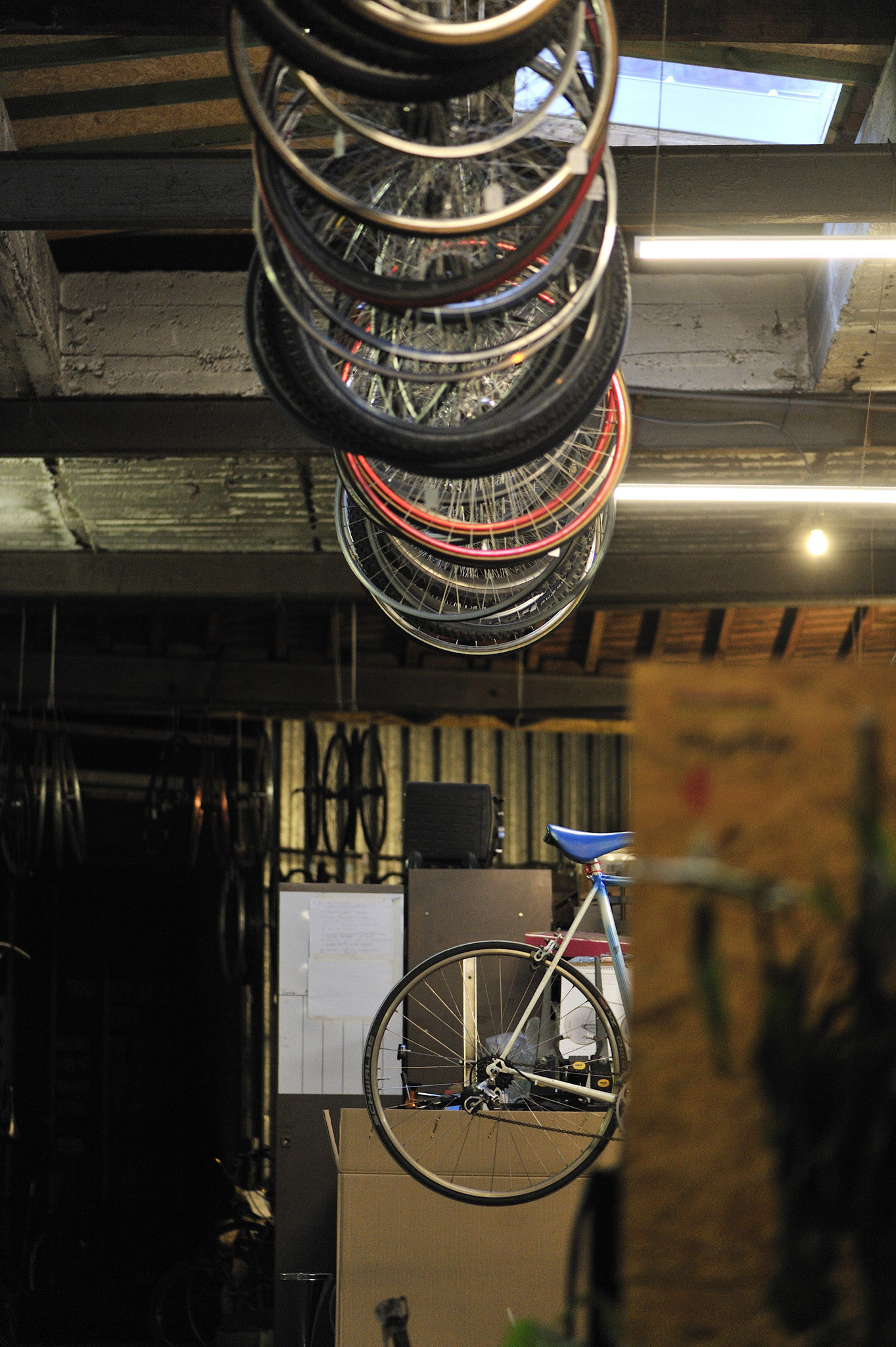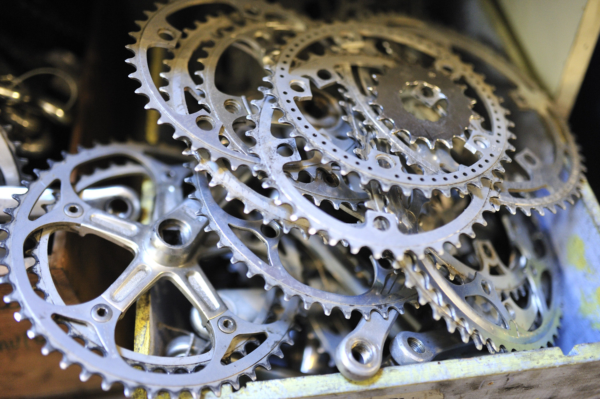 De vieux plateaux, poignées de freins ou dérailleurs retrouvent une nouvelle vie.