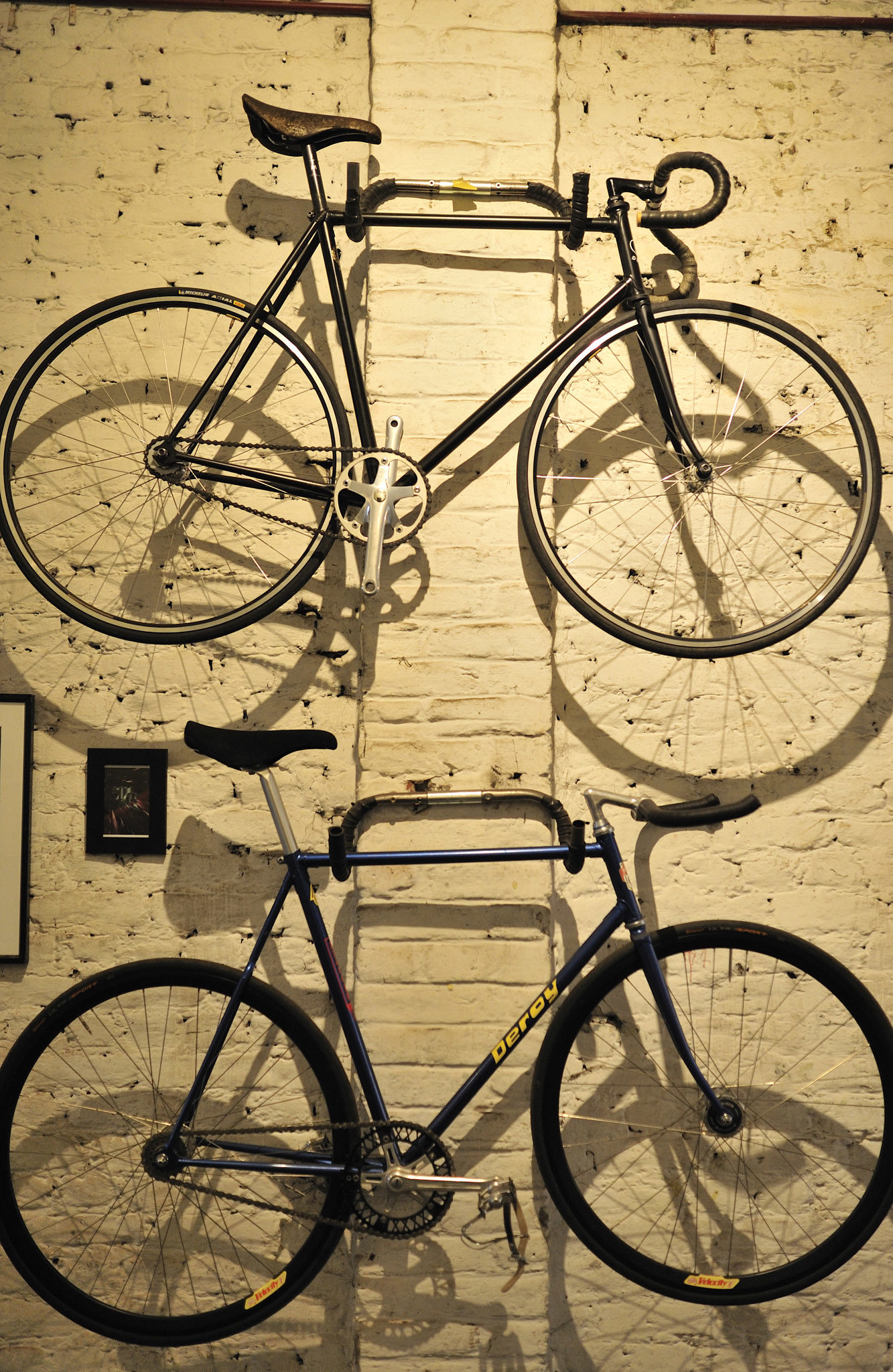 Et là, j’écarquille les yeux. Sous la vieille charpente pendent de vieux vélos qui ont affronté les affres du temps, les chemins, les pavés d’antan et les routes du monde. D’autres ont perdu leur apparat et sont cadres nus, prêts à retrouver une nouvelle jeunesse.
