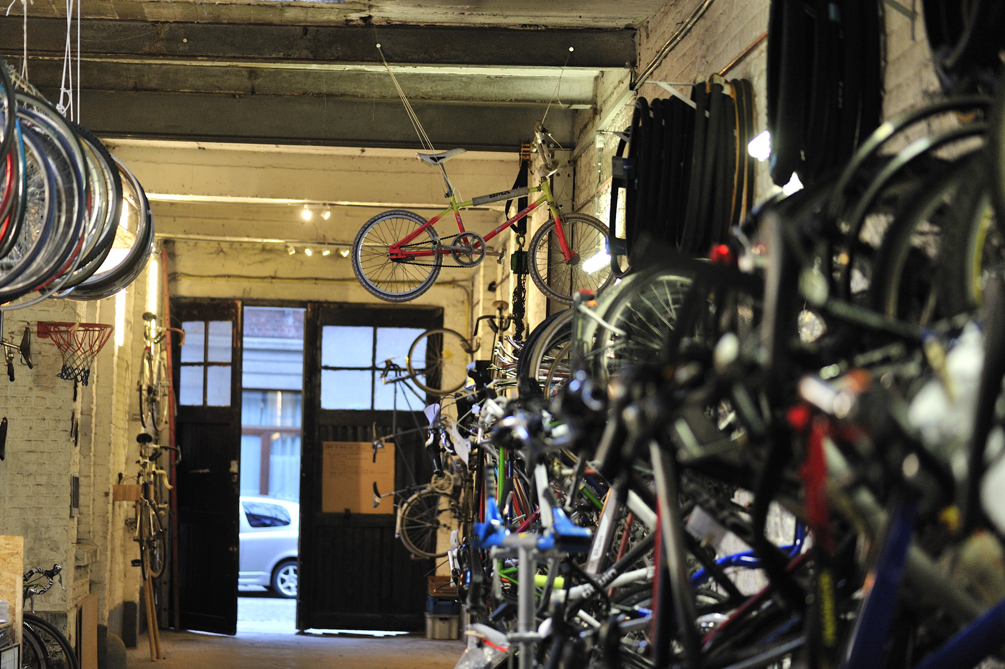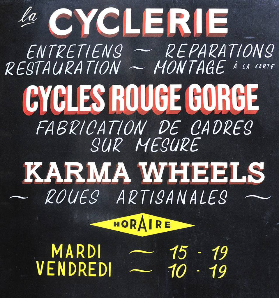 La Cyclerie sent bon l’odeur du vieux caoutchouc et de l’huile. Des effluves qui ravivent de suite de ma mémoire l’ambiance de ces magasins de ma jeunesse où ateliers et boutiques ne faisaient qu’un. Quel contraste avec les grandes enseignes d’aujourd’hui et ses (trop) propres ateliers aseptisés et la présentation de vélos comme s’il s’agissait de produits de luxe.
