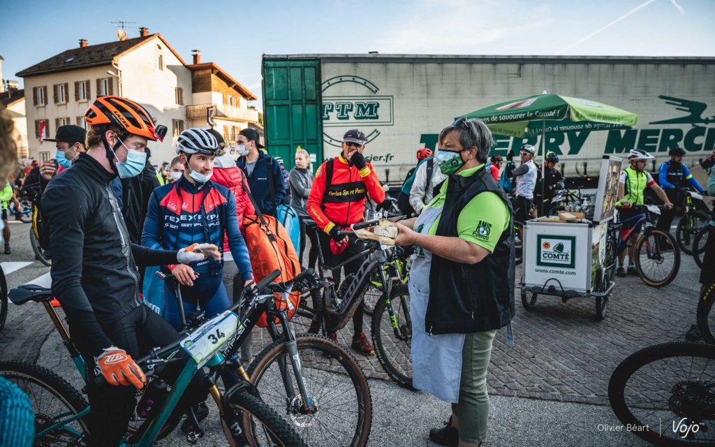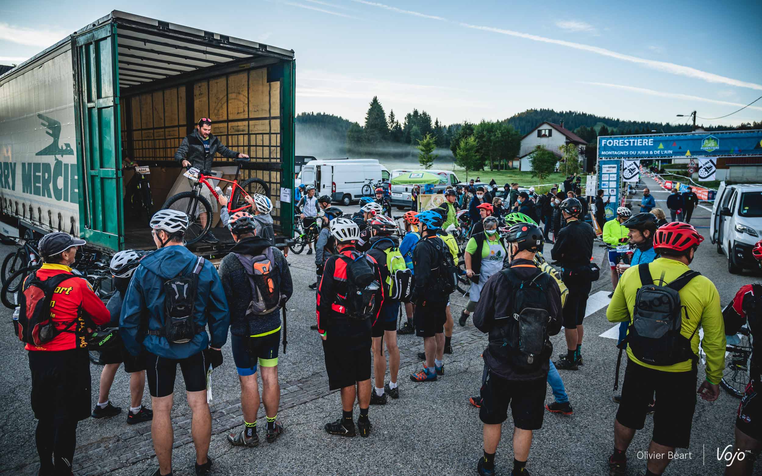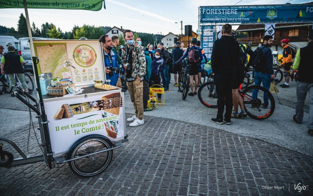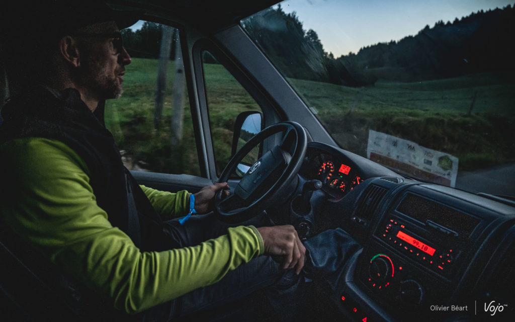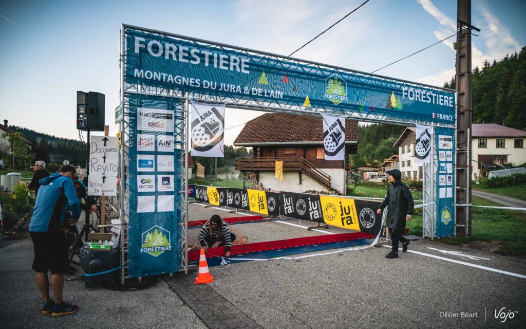 30 ans plus tard, la Forestière est plus que jamais vivante… et elle se mérite ! Si le centre névralgique est situé à l’Espace Loisirs d’Arbent, le départ est donné dans le petit village des Moussières. Situé à seulement quelques kilomètres à vol d’oiseau d’Arbent, il faut pourtant près de 40 minutes pour y arriver en voiture ! C’est donc à 6h15 que je me mets en route en compagnie d’Emmanuel Tartavez, coordinateur de l’événement, afin de rejoindre le site de départ. Le paysage au lever de soleil, avec la brume matinale, est féérique… et sur les petites routes, les vaches ont pris possession du bitume.