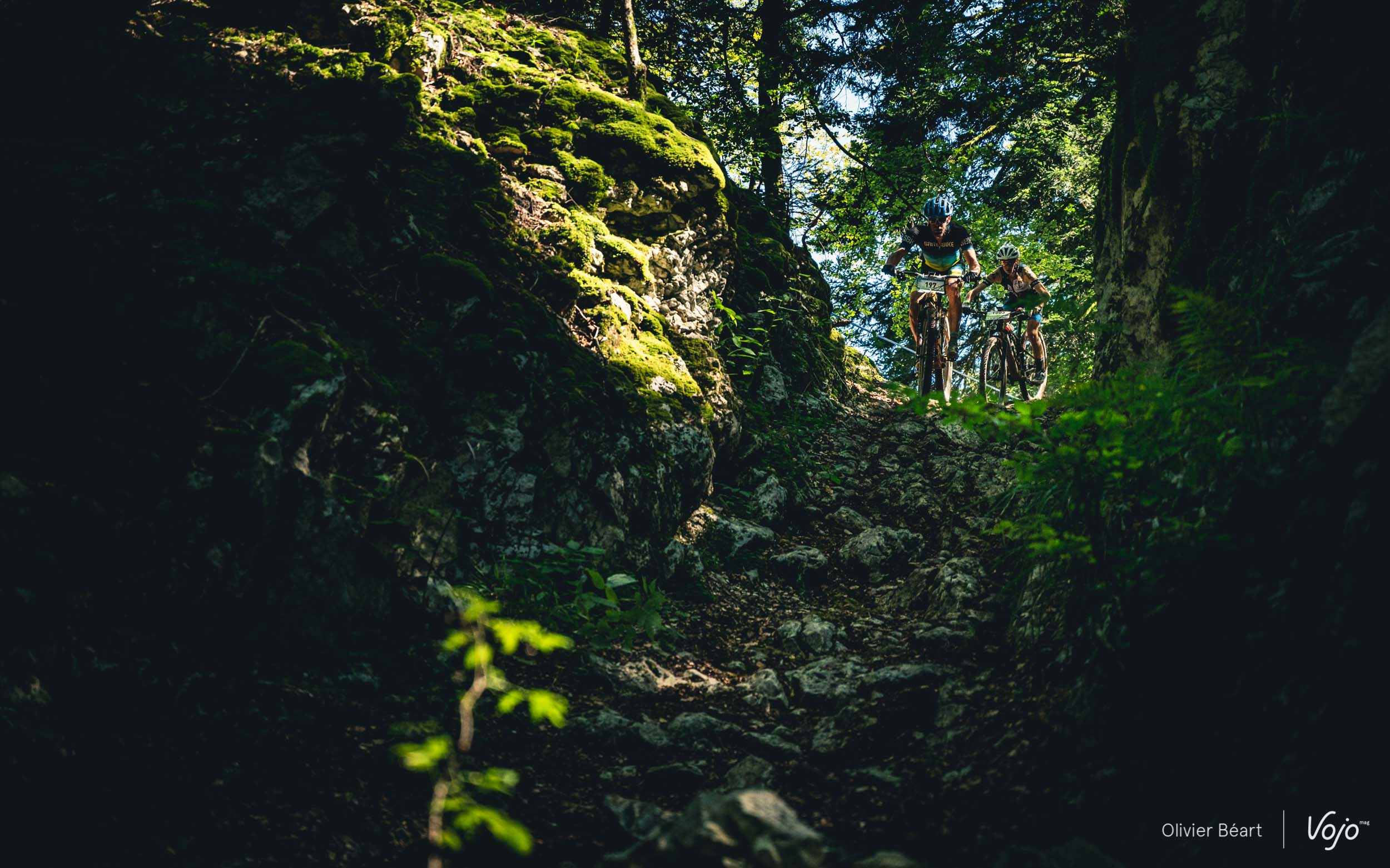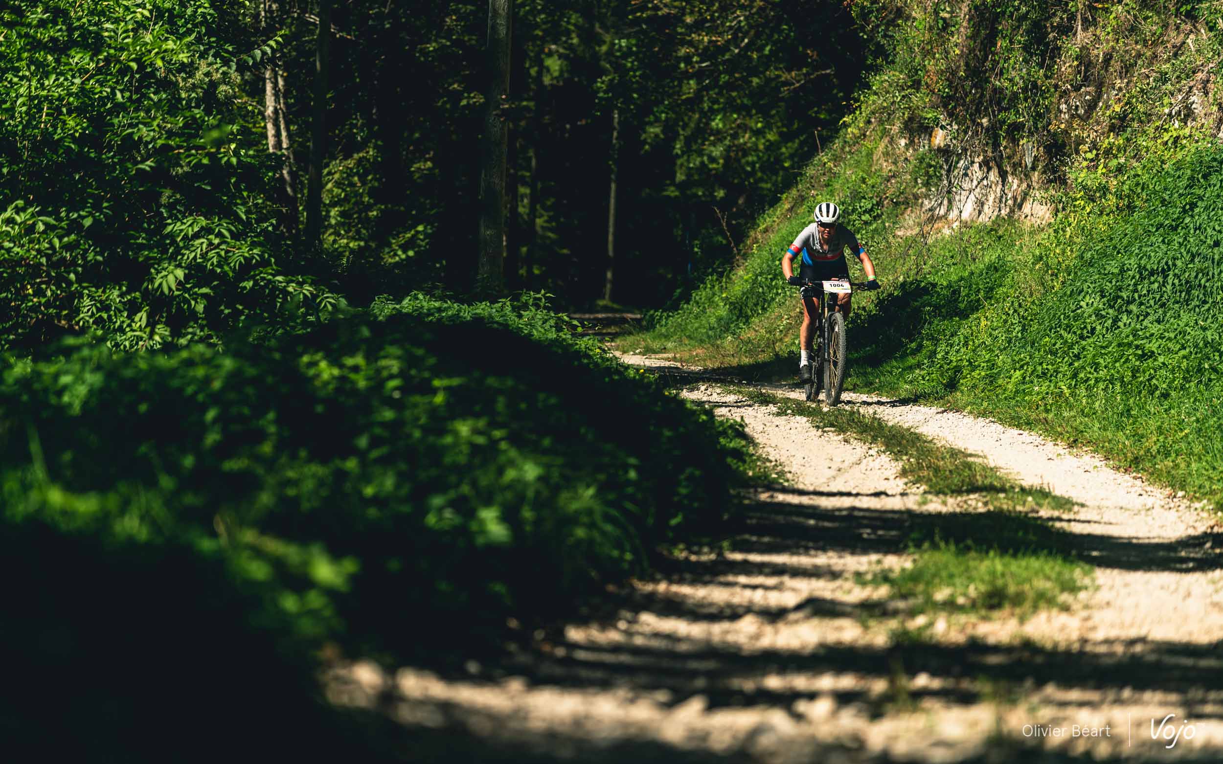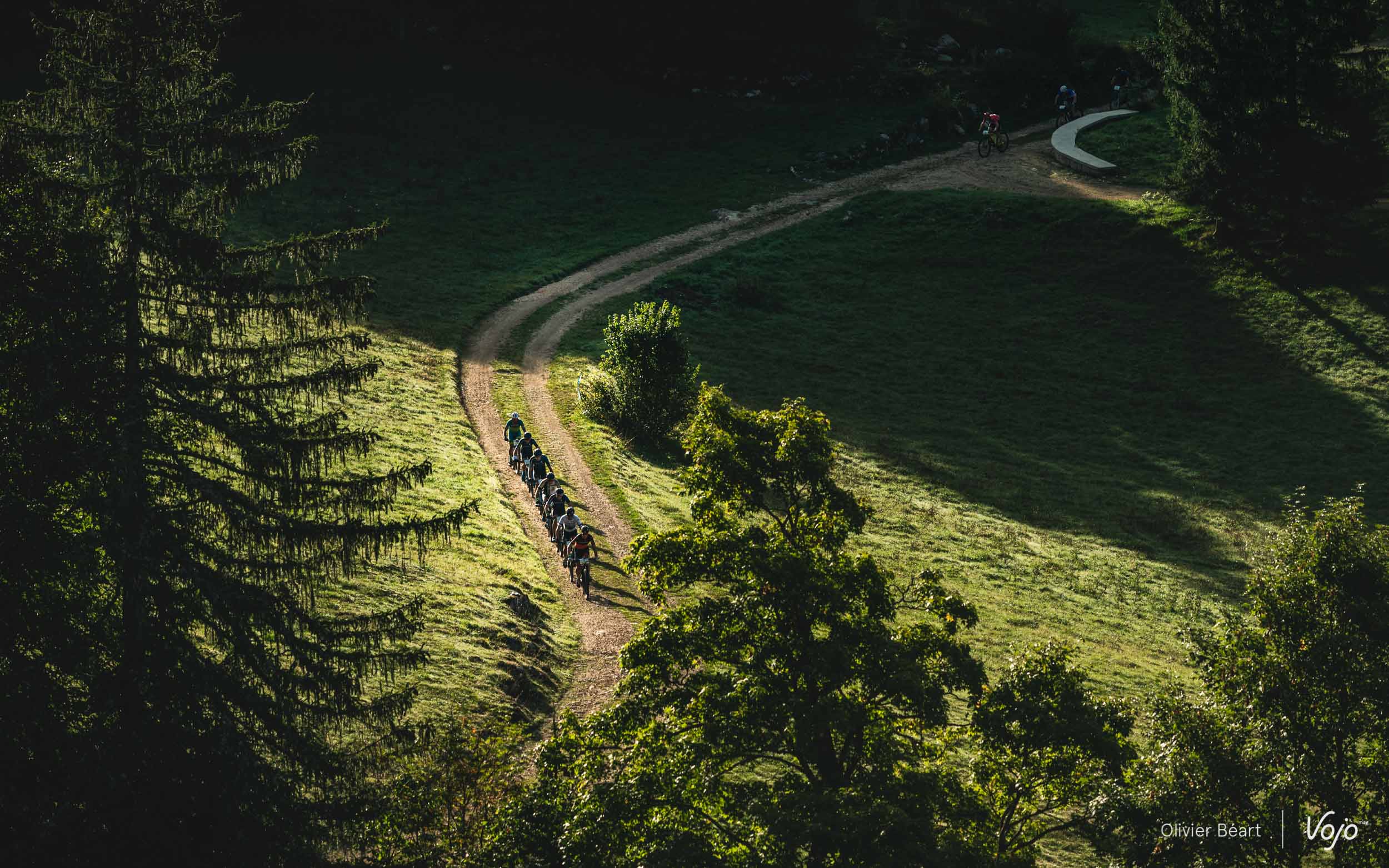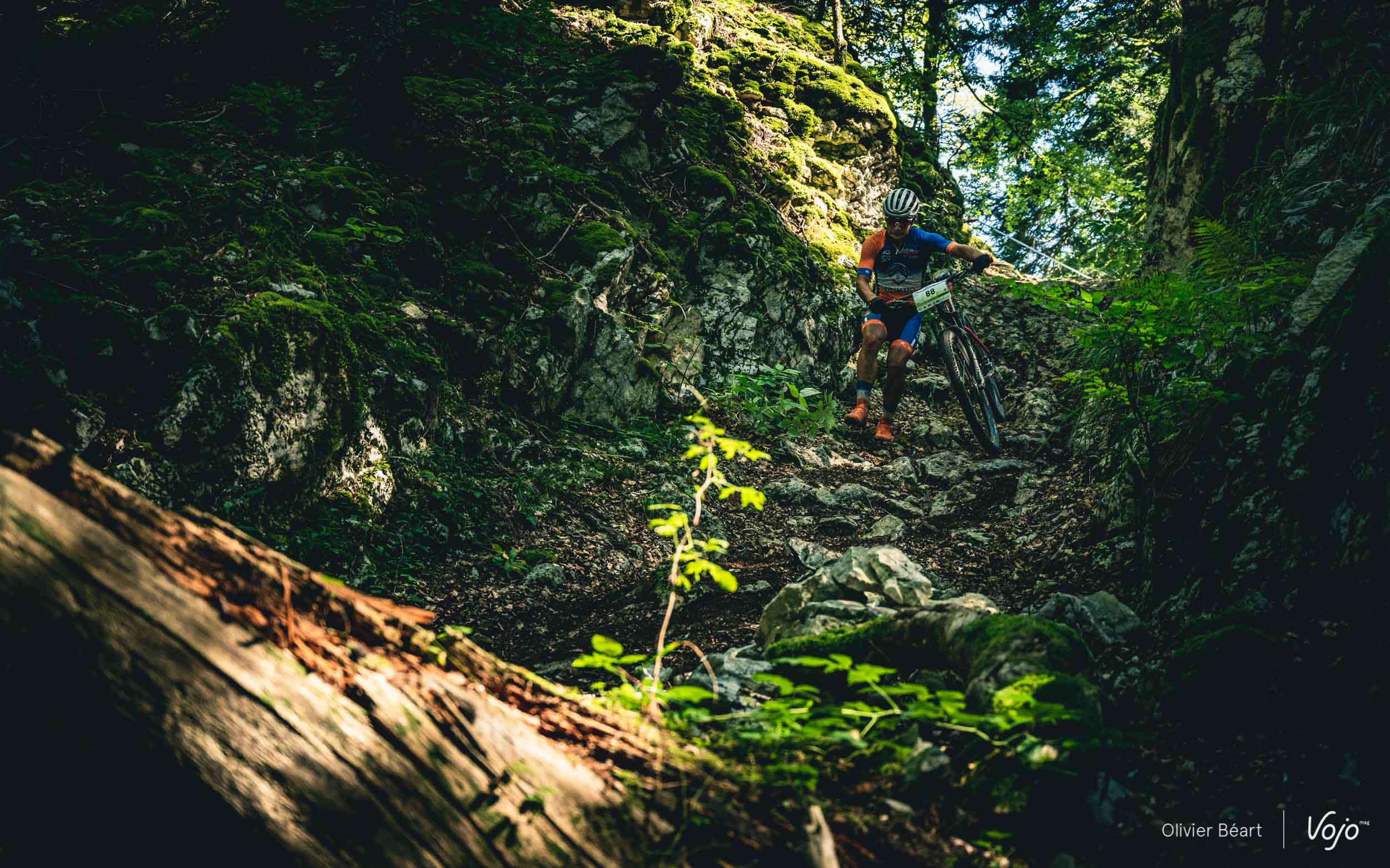 On commence par un petit singletrack sans trop de pente mais très joueur, où les deux équipiers du team La Forestière-Rosti se chambrent et s’amusent à se doubler en prenant des lignes un peu différentes.