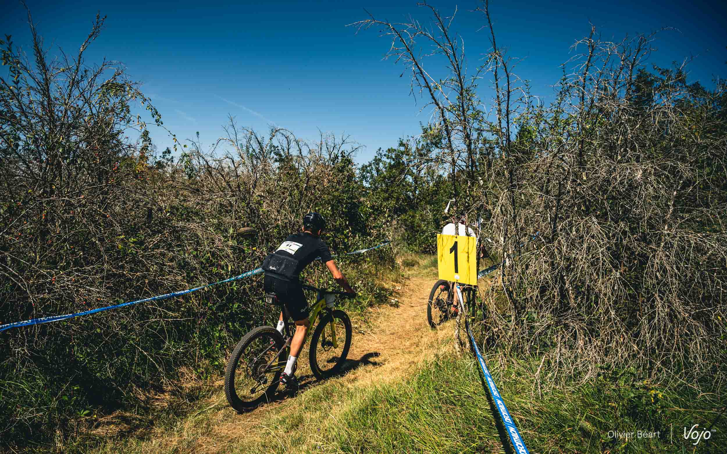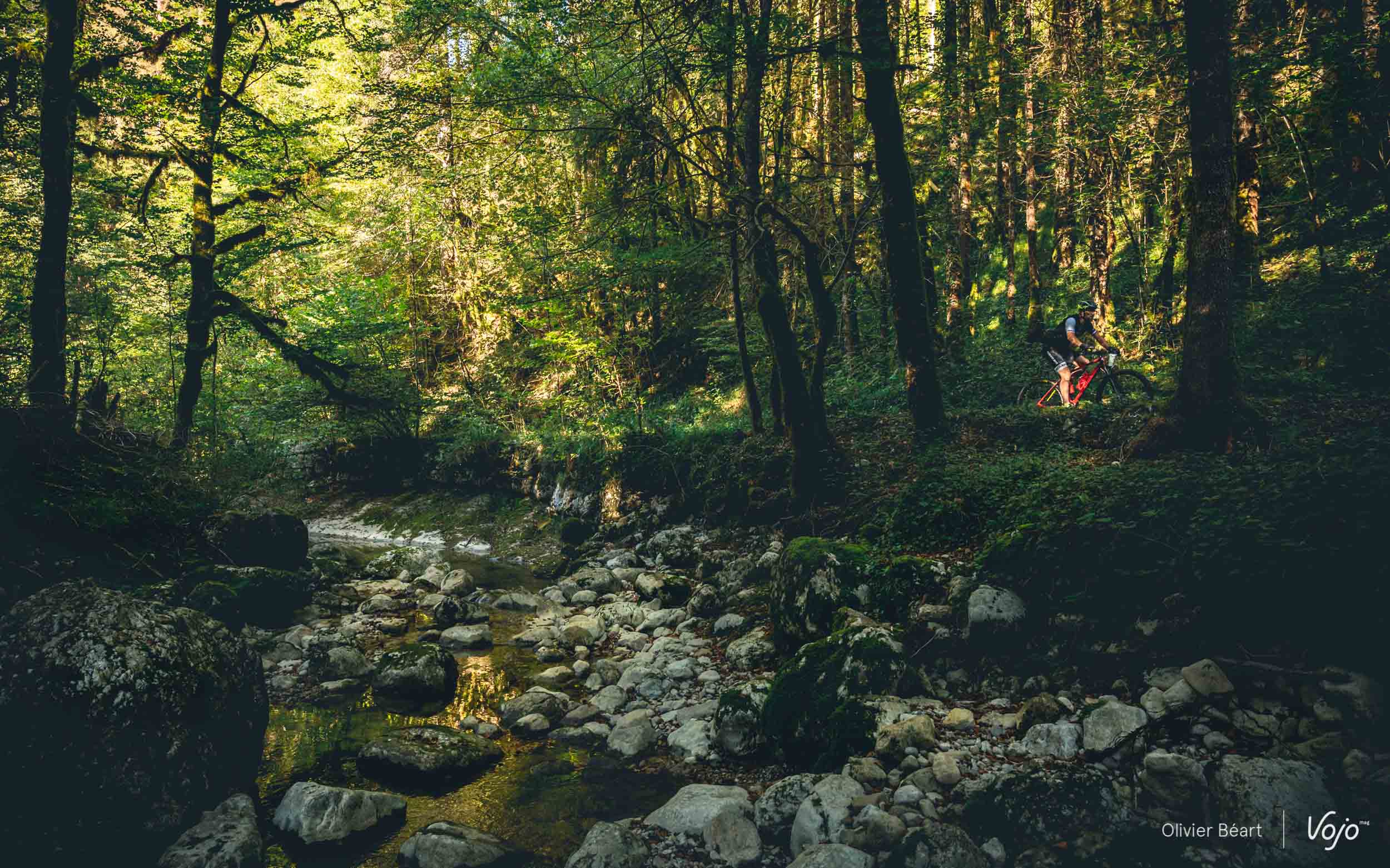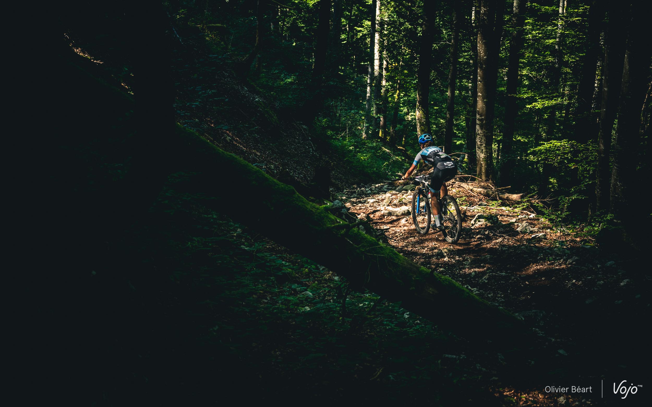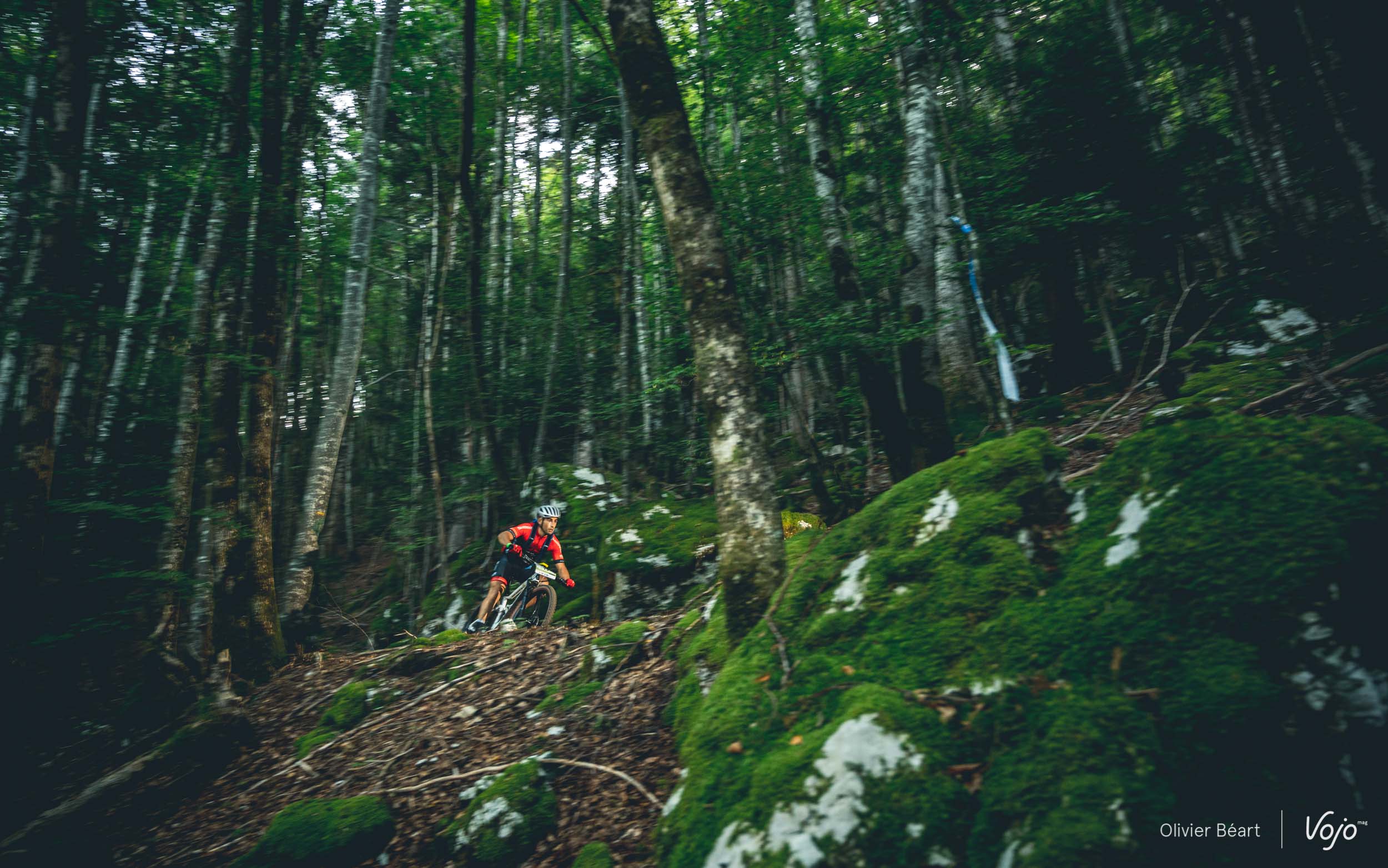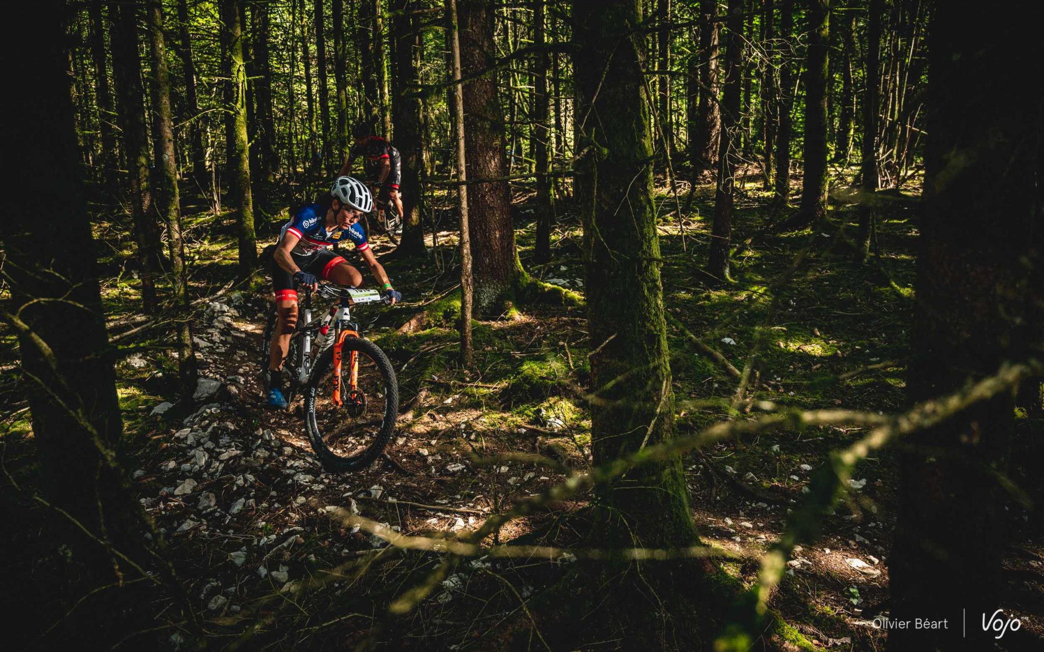On commence par un petit singletrack sans trop de pente mais très joueur, où les deux équipiers du team La Forestière-Rosti se chambrent et s’amusent à se doubler en prenant des lignes un peu différentes.