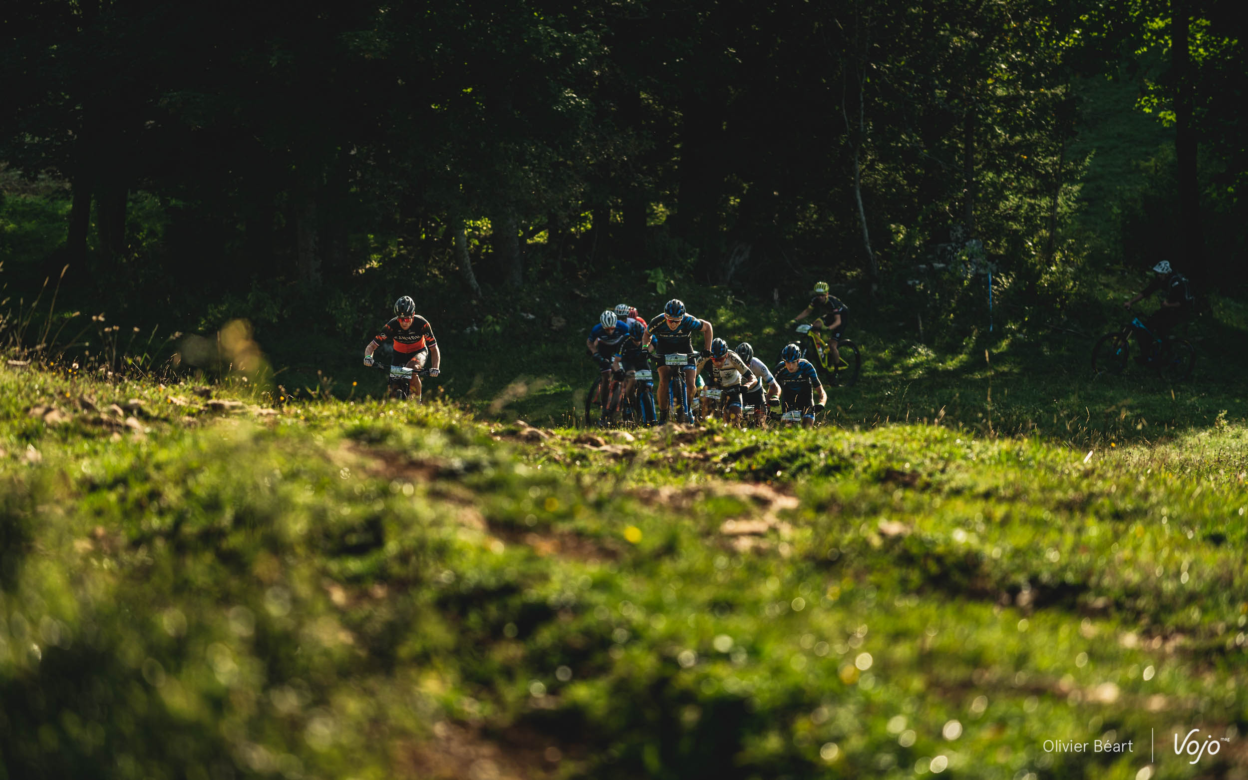 Après une première boucle pour étirer le peloton autour des Moussières, les coureurs approchent de la mythique descente vers St-Claude et ses quasi 600m de dénivelé négatif tout en singletrack !