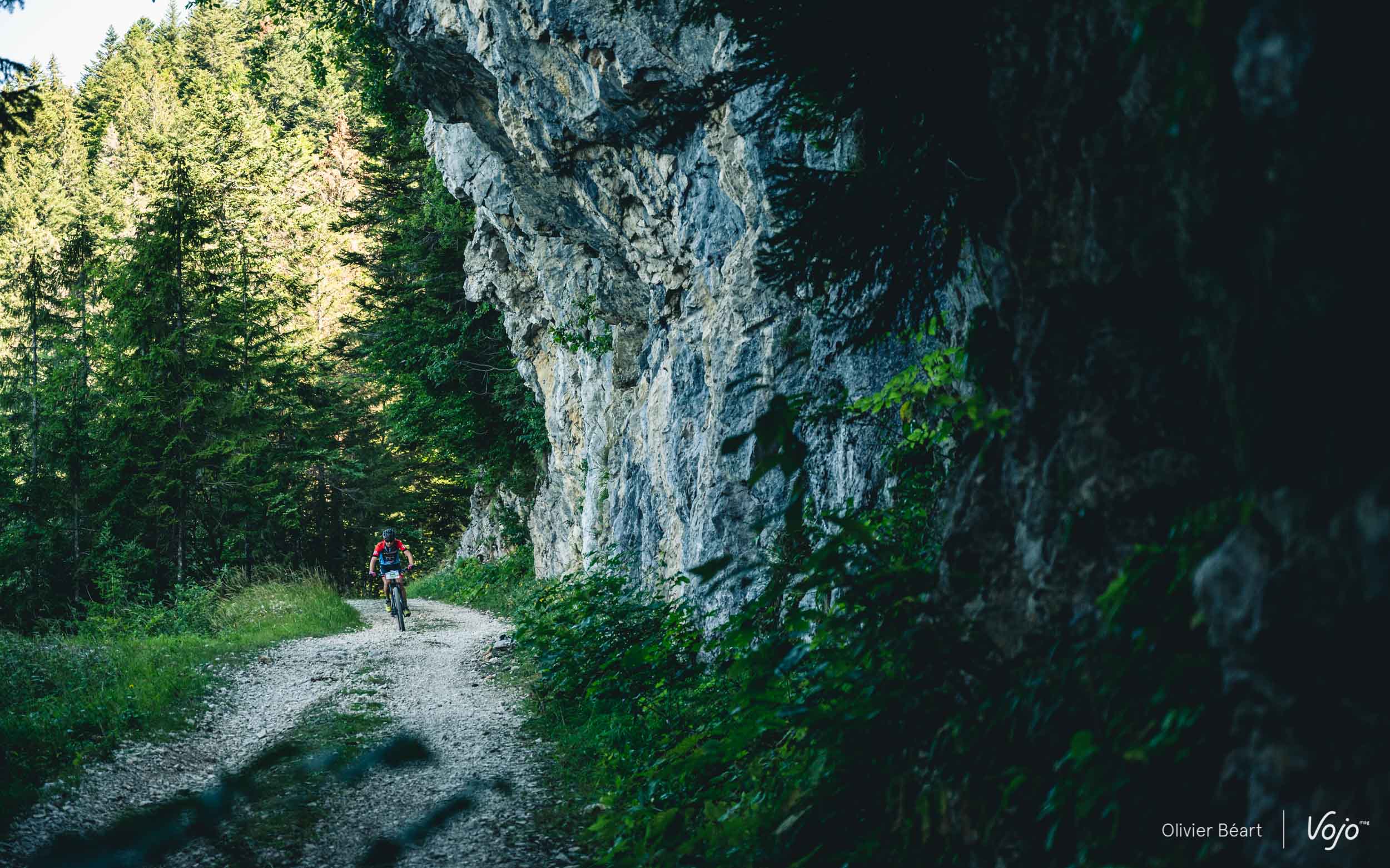 Une nouvelle descente très rapide dans les prés permet d’y arriver à vitesse grand V. La Forestière réussit une belle alternance entre les passages engagés et techniques, et d’autres plus roulants qui permettent de composer un parcours aussi complet qu’agréable.