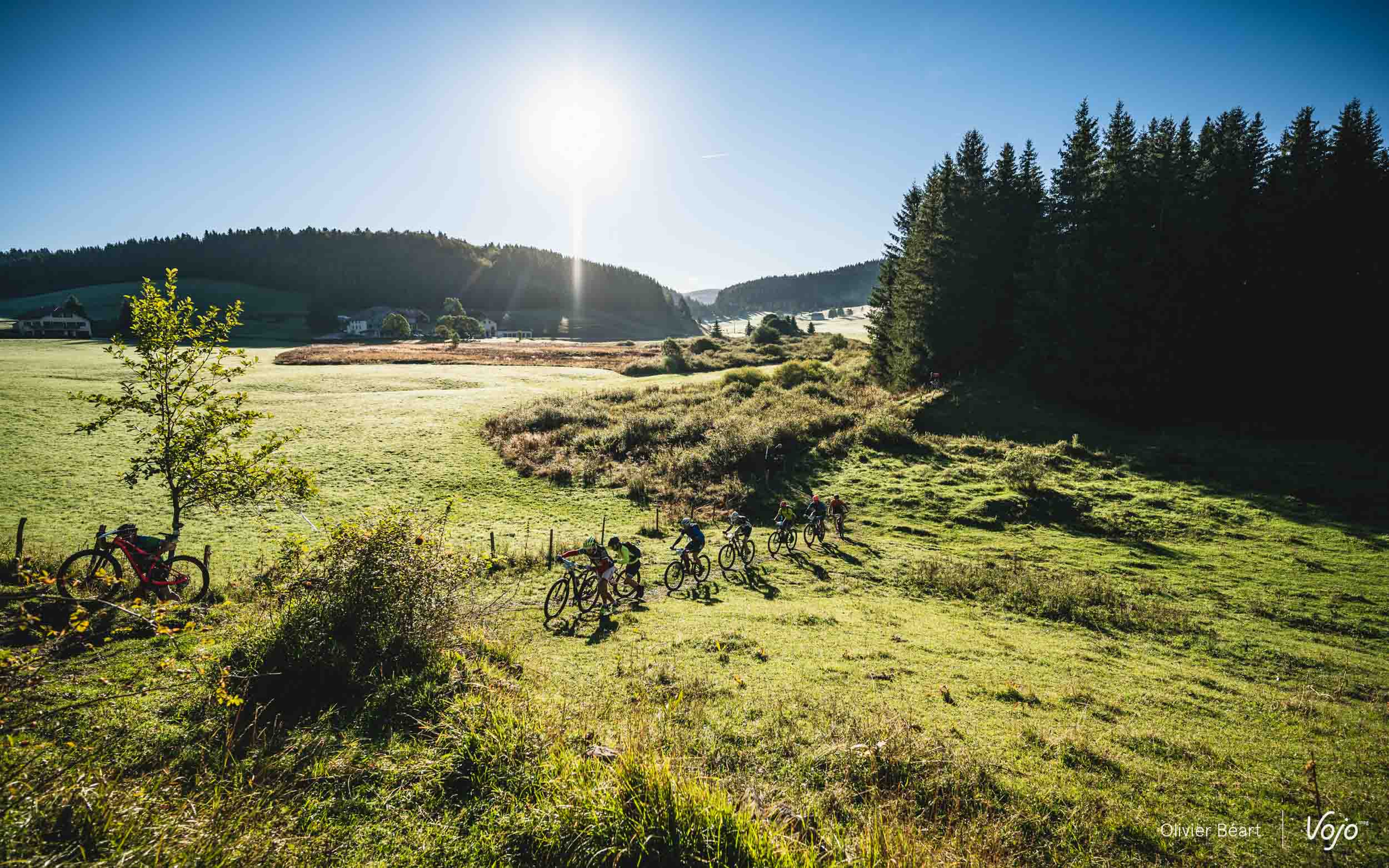 Même si c’est mission quasi impossible, si on devait résumer la Forestière en une seule image, elle pourrait ressembler à ceci. Mais avant de parvenir sur les hauts plateaux jurassiens avec leurs panoramas majestueux, il faut les mériter ! Revenons un peu en arrière, au commencement de ce marathon de 100 km pour les hommes et 70 km pour les femmes ; reconnu au titre de Worlds Series par l’UCI encore cette année tout en restant ouvert au grand public.