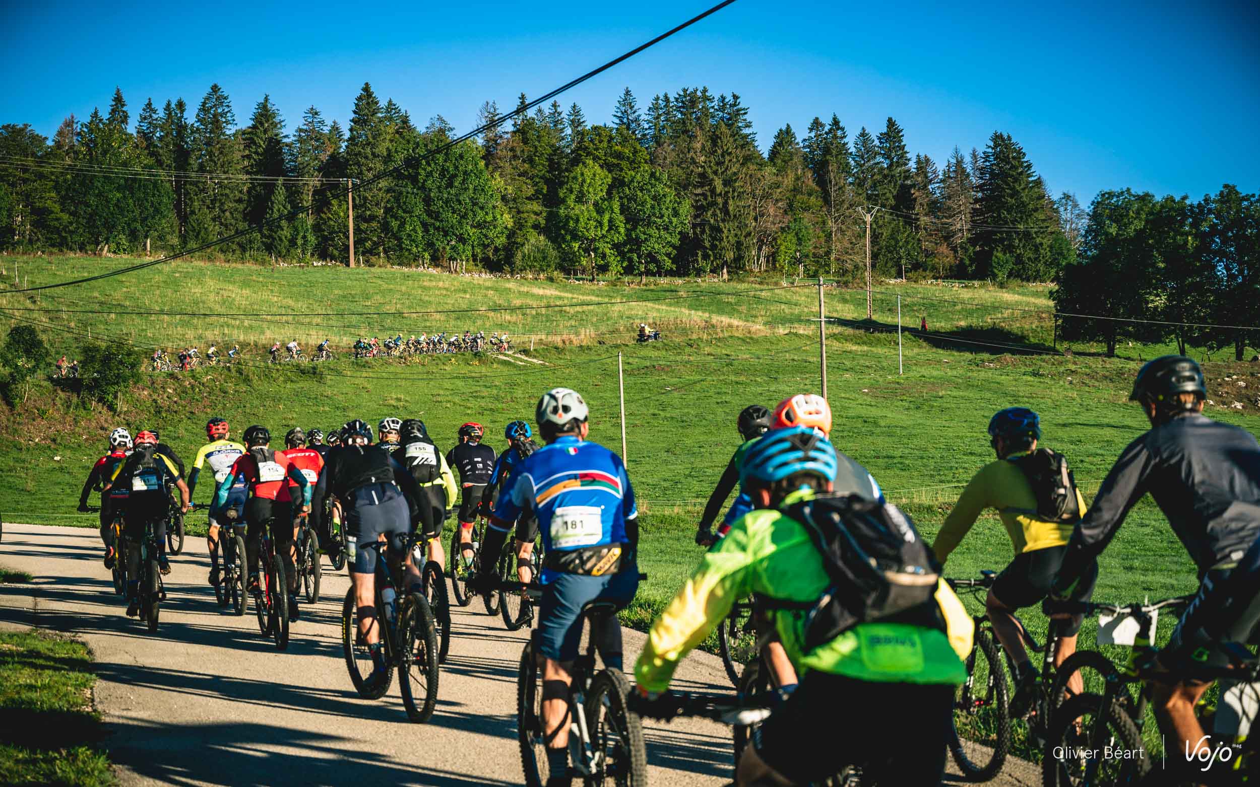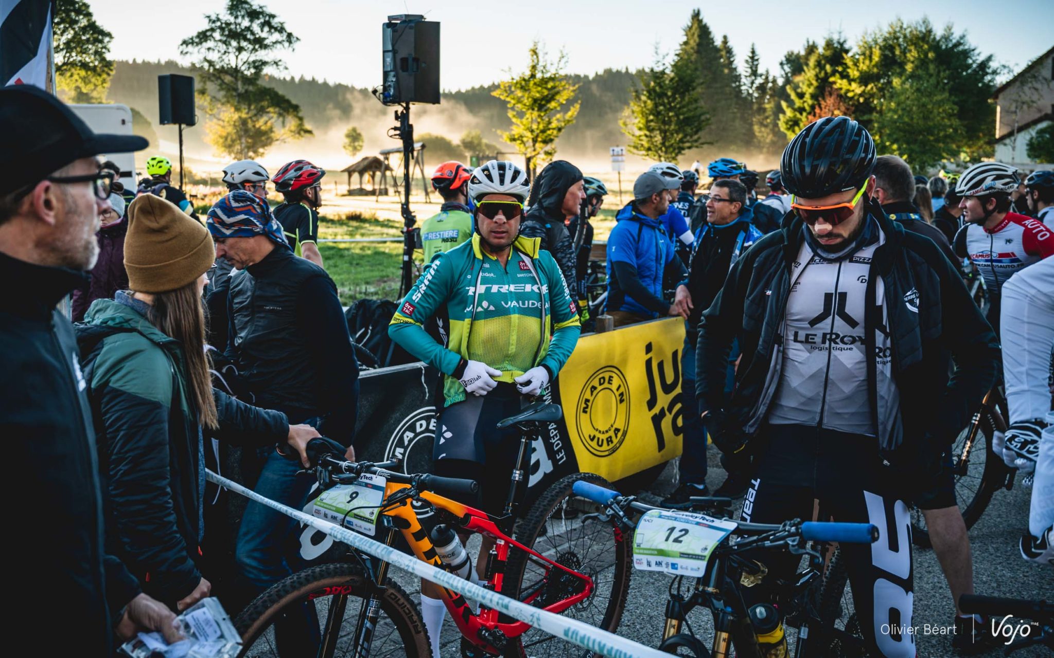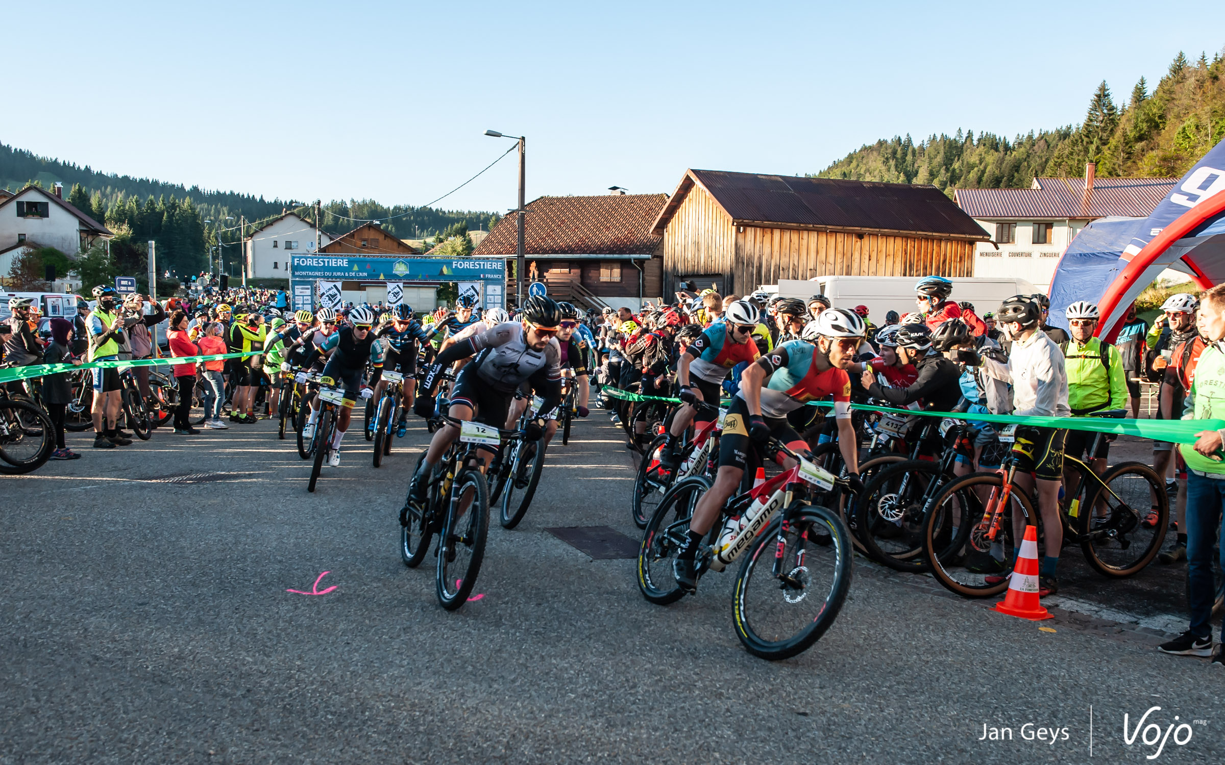 Même si c’est mission quasi impossible, si on devait résumer la Forestière en une seule image, elle pourrait ressembler à ceci. Mais avant de parvenir sur les hauts plateaux jurassiens avec leurs panoramas majestueux, il faut les mériter ! Revenons un peu en arrière, au commencement de ce marathon de 100 km pour les hommes et 70 km pour les femmes ; reconnu au titre de Worlds Series par l’UCI encore cette année tout en restant ouvert au grand public.