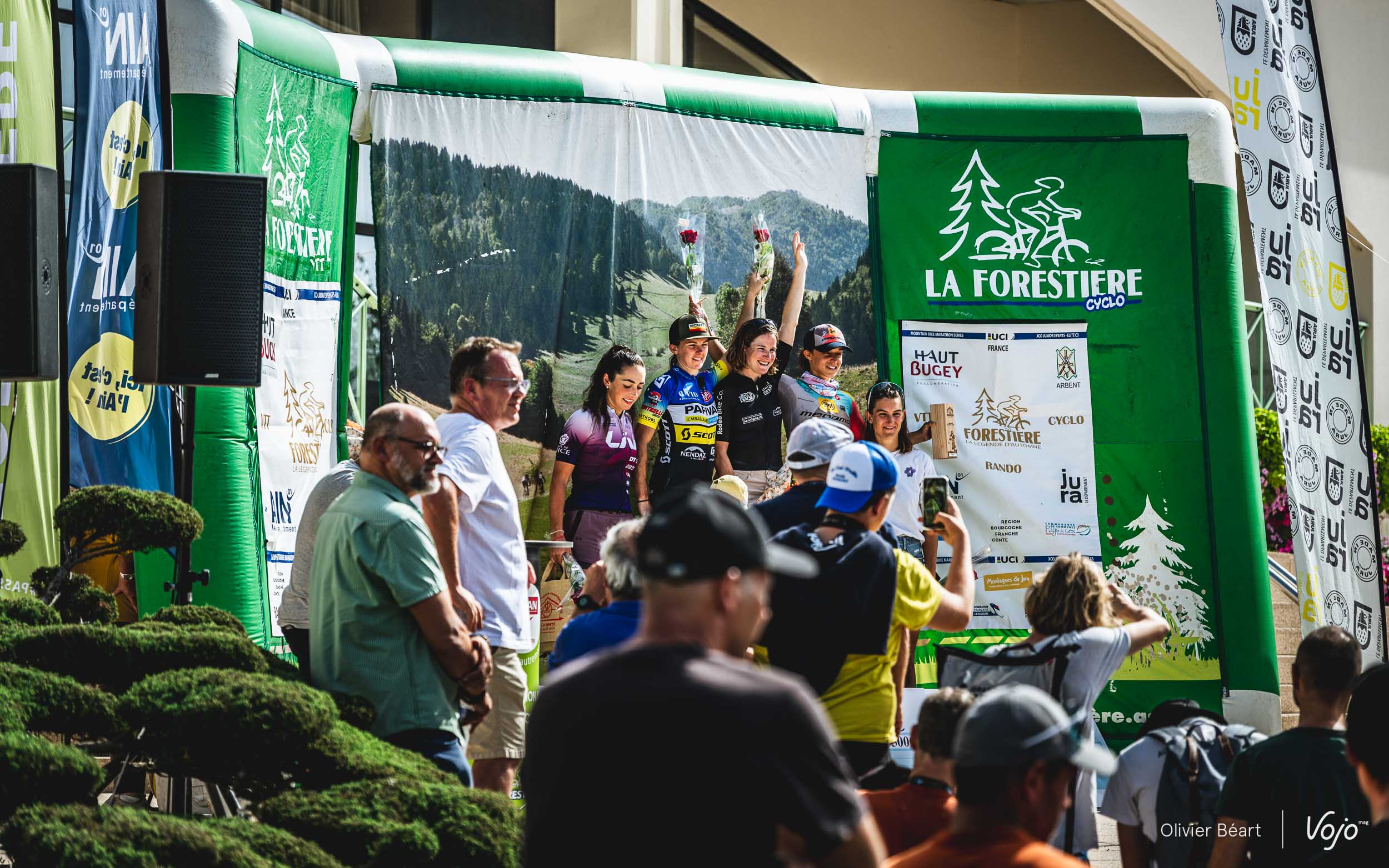 Plusieurs pilotes, dont le vainqueur Hugo Drechou (ici aux côtés de Philippe Gindre, président de la Forestière) et Axel Roudil-Cortinat, ont tenu aussi à rendre hommage à l’organisation. « Oui, il y avait une coupe du monde marathon à Morzine hier, mais pour ma part, je voulais absolument défendre mon titre de 2022 et soutenir la Forestière par ma présence. J’en ai parlé à mes équipiers du team Megamo et tous ont décidé de me suivre et de faire l’impasse sur Morzine. C’est dommage de devoir faire ce genre de choix à cause d’un calendrier qui prévoit deux épreuves de haut niveau sur un week-end, mais je ne suis pas déçu d’être venu ici. »