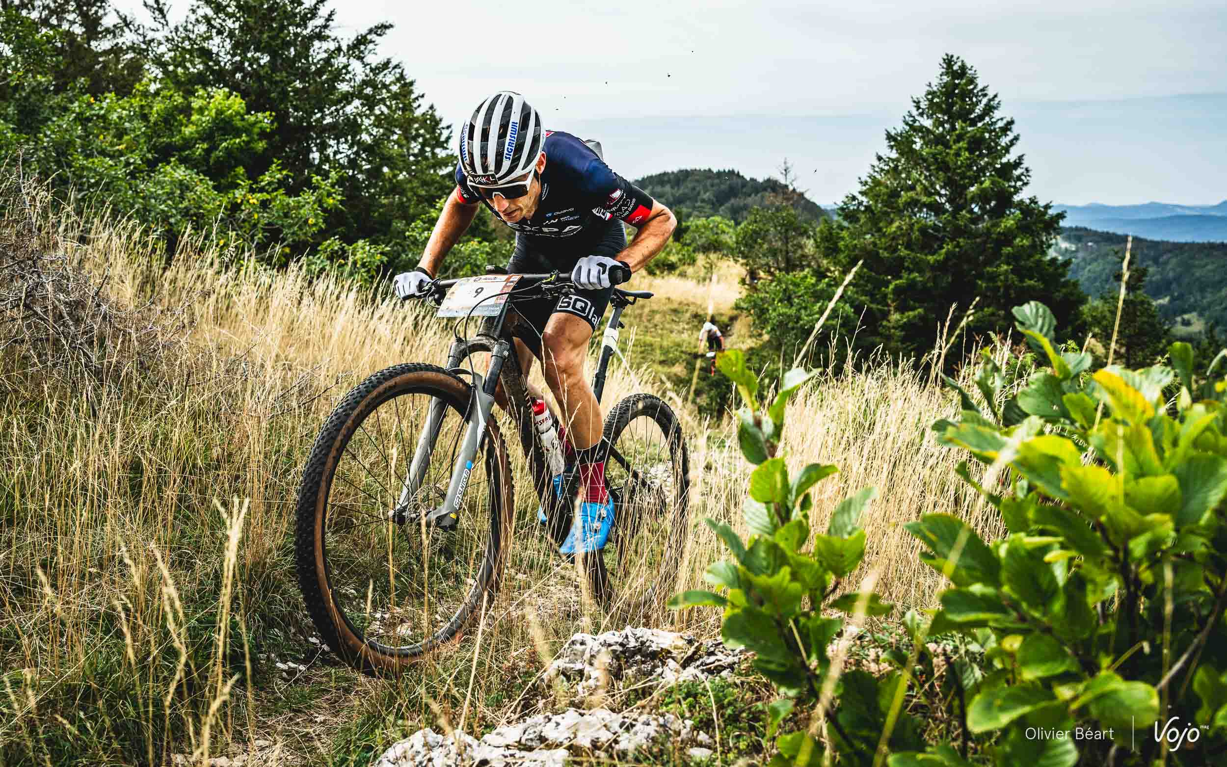 Ici au second plan, dans la roue de l’Allemand Sascha Weber (qui finira par abandonner), le champion de France de la discipline, Axel Roudil-Cortinat, reste également bien placé. Il a pourtant roulé plus de 5 heures la veille sur la coupe du Monde de marathon.