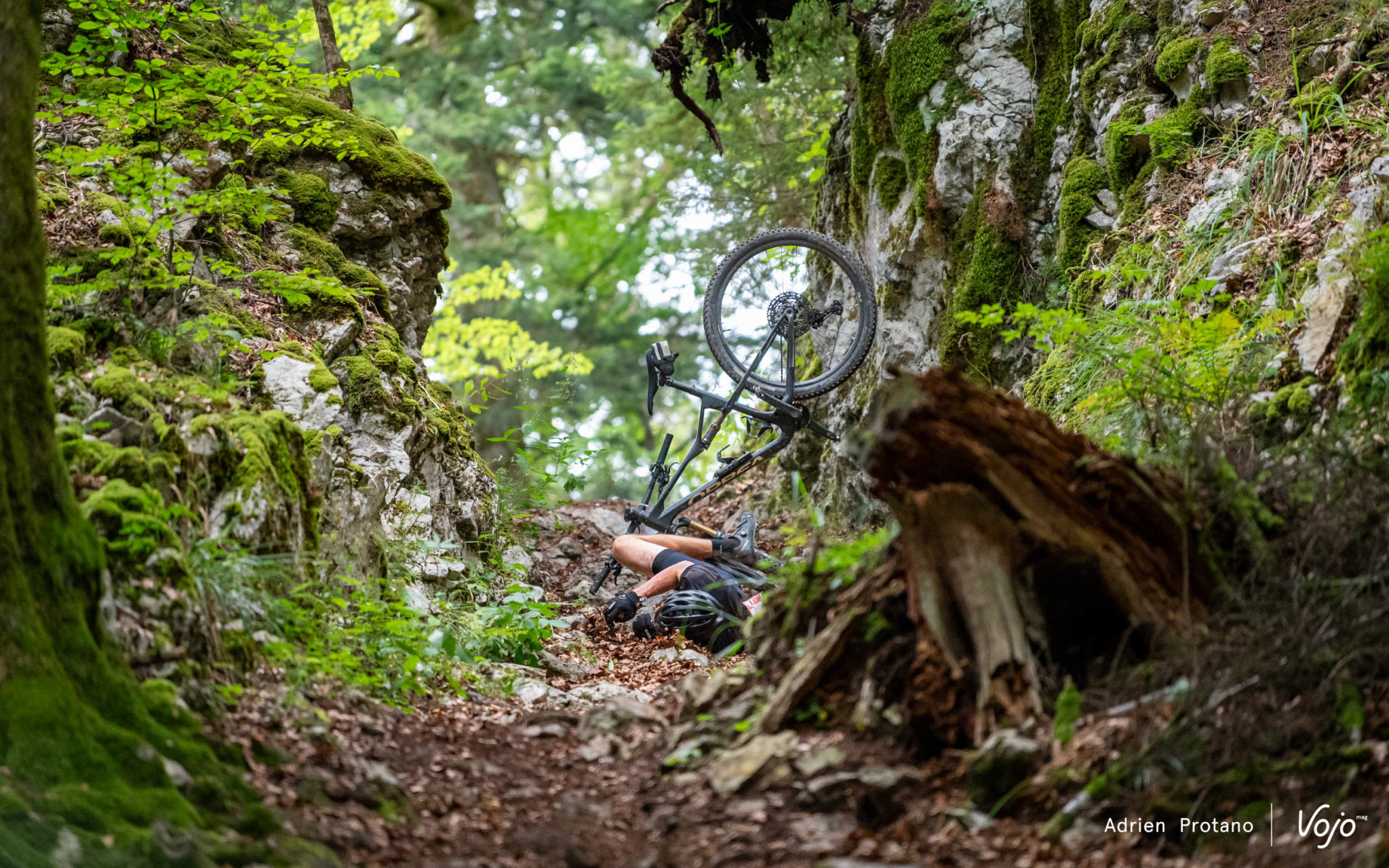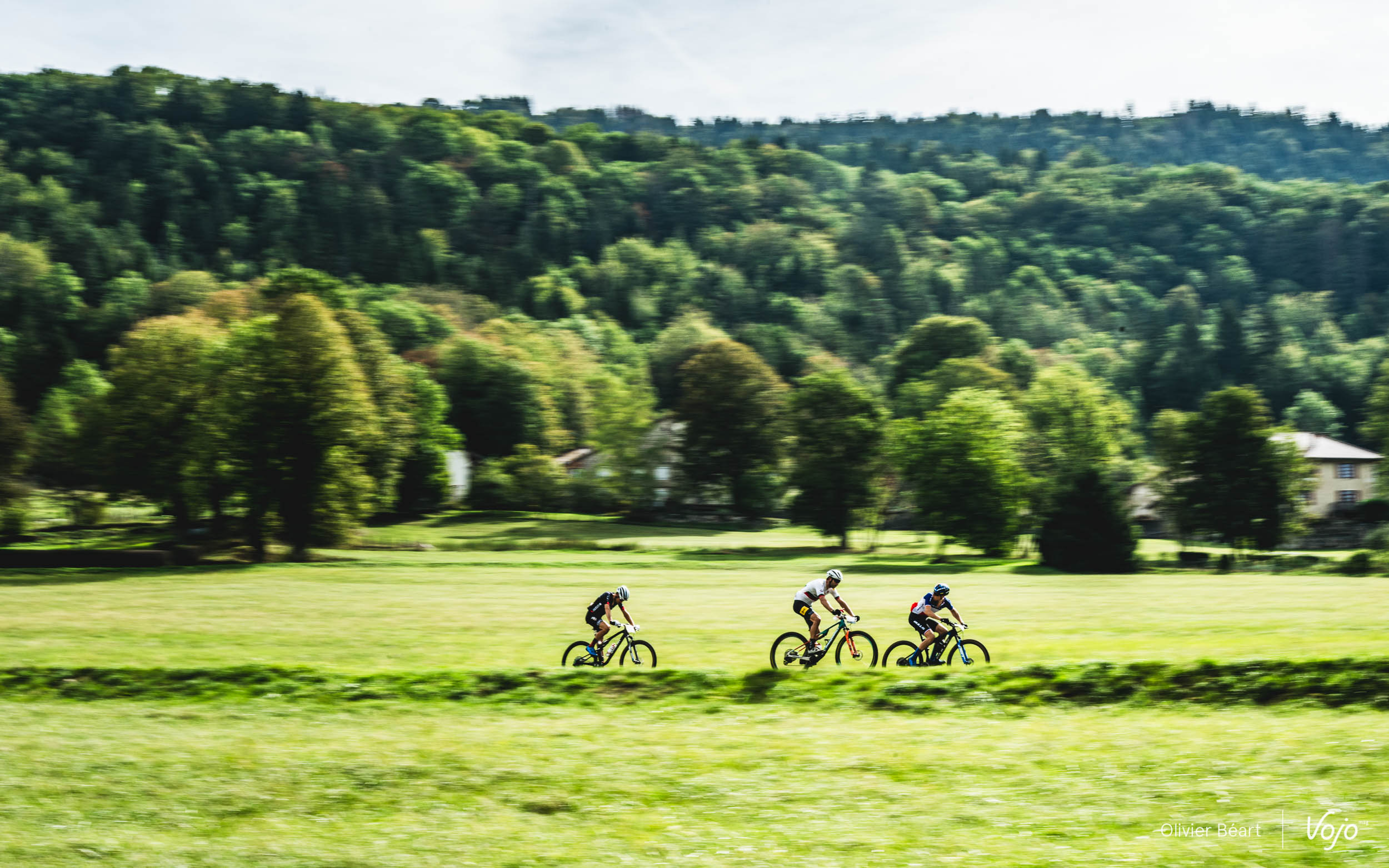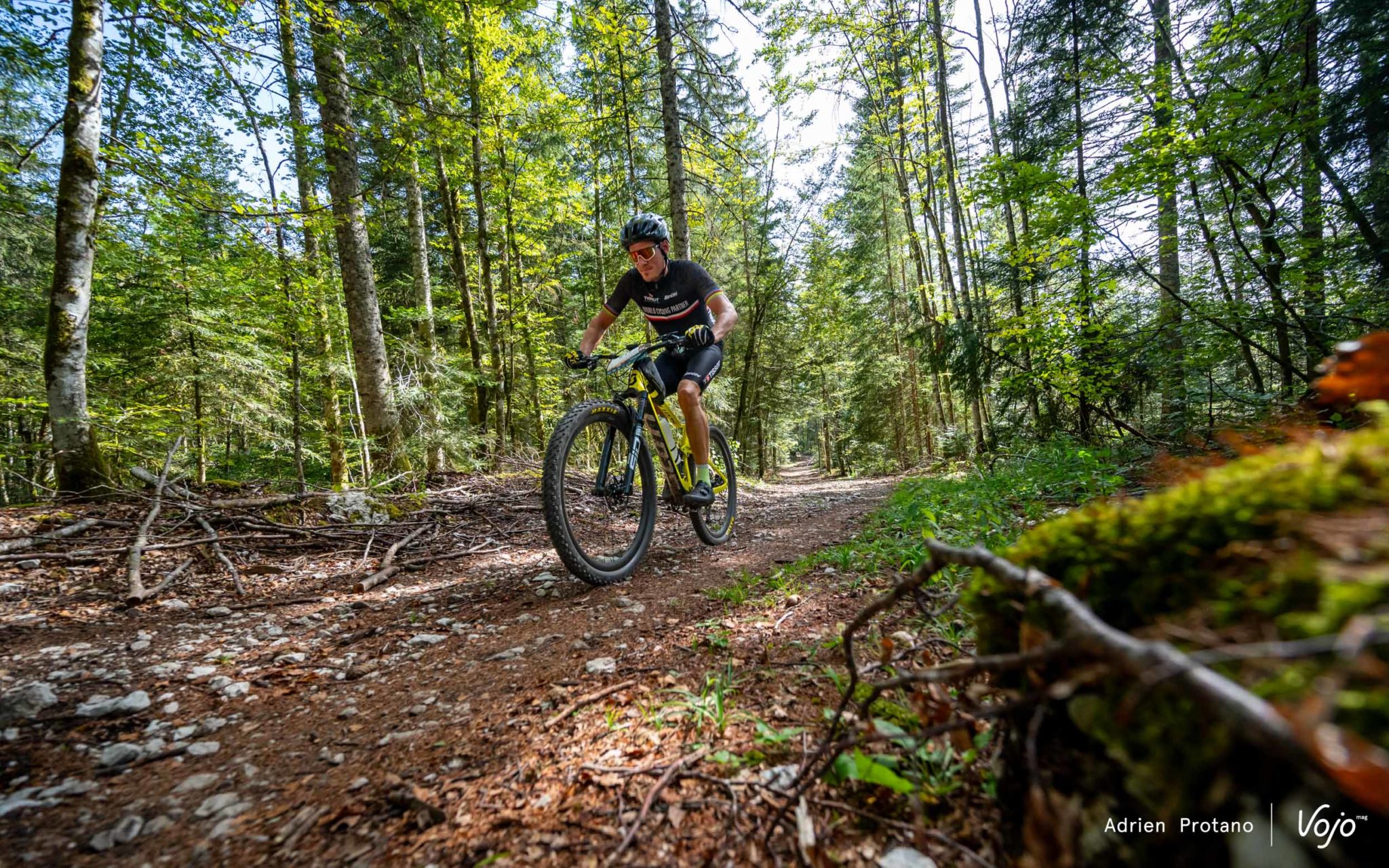 C’est sur le tracé de la grande traversée du Jura VTT que le parcours nous emmène afin de rejoindre le village de Giron et son ravitaillement. Si le comté local et un bon verre de coca frais nous trottent déjà dans le coin de la tête, il nous reste pourtant plus d’une dizaine de kilomètres avant de pouvoir en apercevoir la couleur !