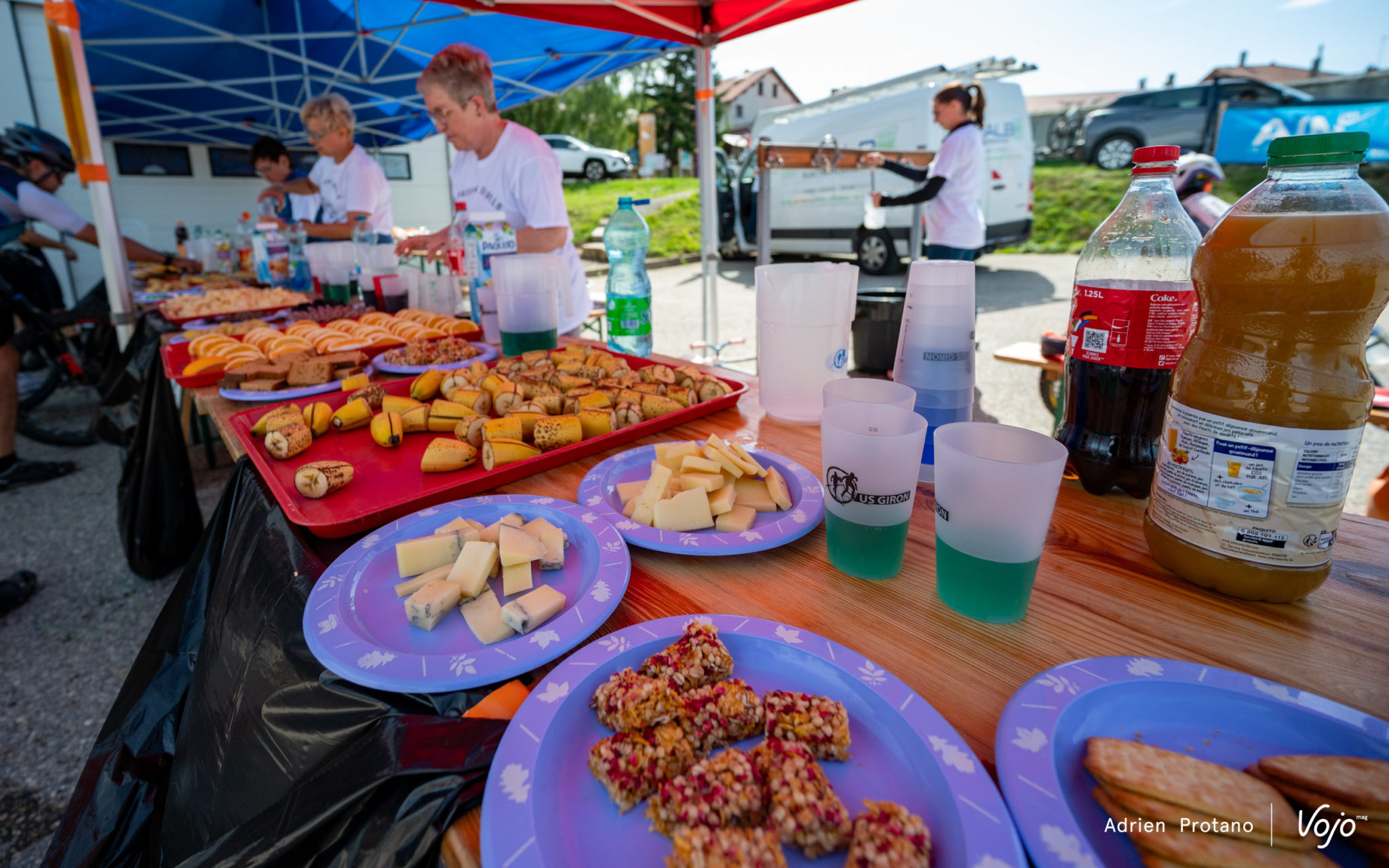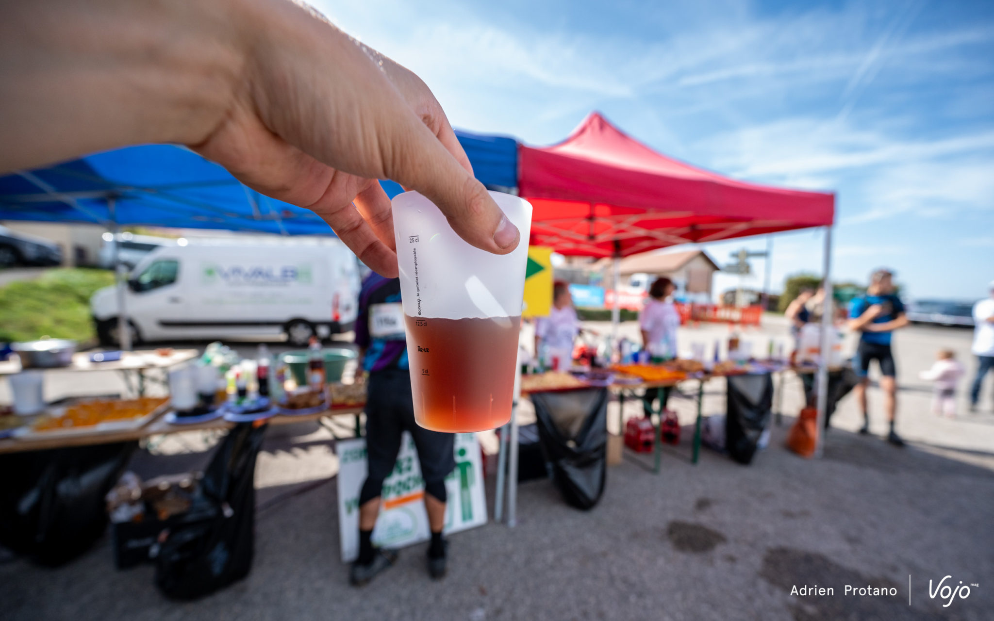 Au ravitaillement ! Le buffet est généreux et les associations de saveurs, à ce stade de la journée, ne sont pas toujours les plus communes… Qu’importe, tant que ça nous plaît ! C’est également le moment pour pointer la gentillesse et la bienveillance des bénévoles, tout en les remerciant chaleureusement.