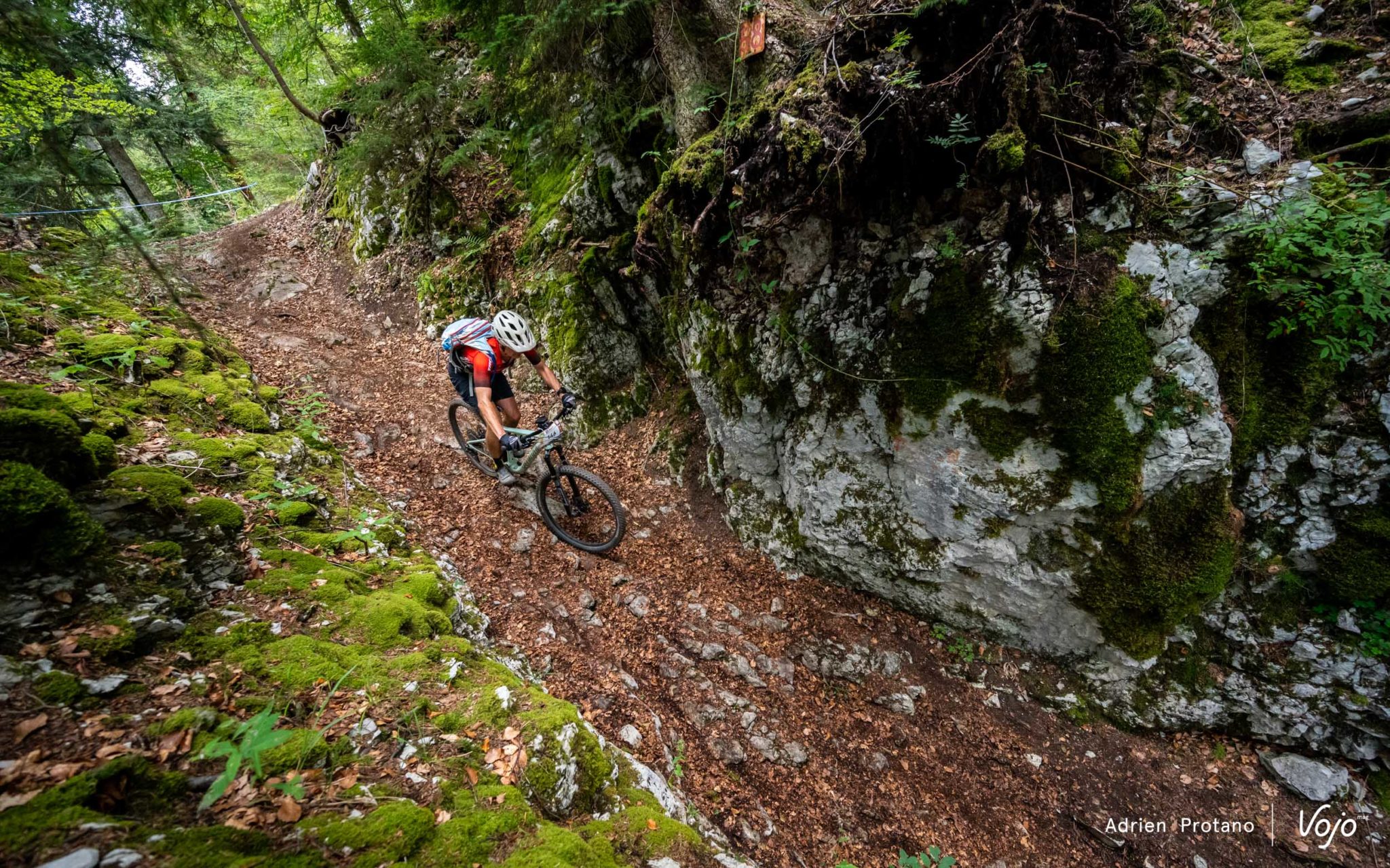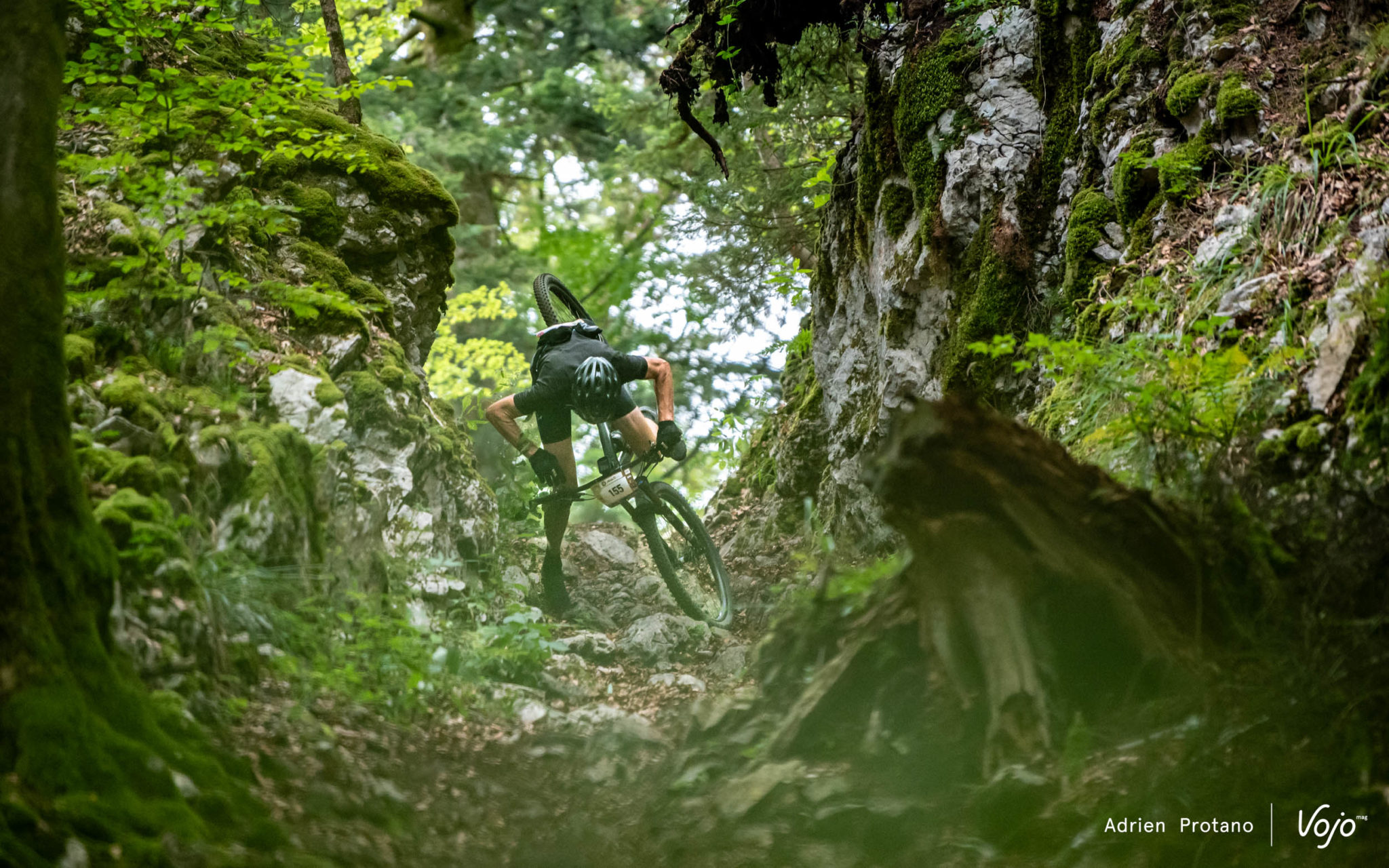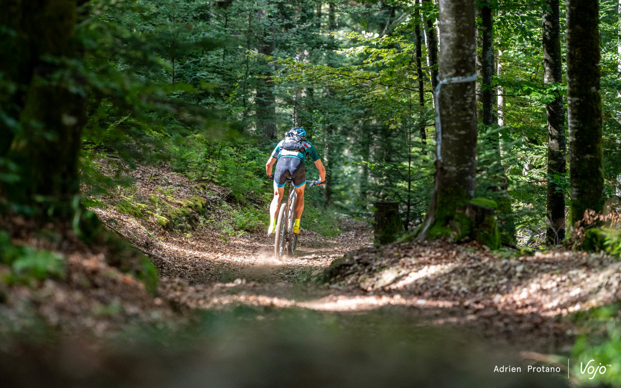 L’ascension se poursuit sur un chemin forestier où les pilotes Élites maintiennent un rythme effréné, comme s’ils abordaient une épreuve olympique de cross-country… or 100 kilomètres sont au programme de la course hommes, tandis que les femmes s’élancent pour 70 kilomètres.