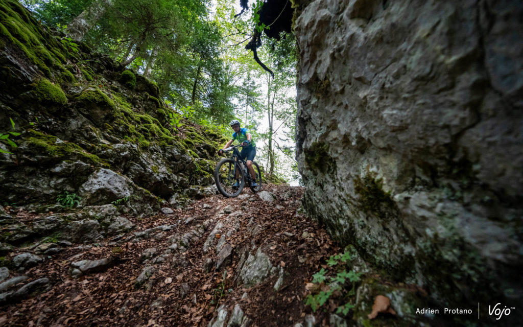 Et puis d’un coup, sans crier gare, la pente s’inverse et nous nous surprenons à prendre de la vitesse sans plus pédaler sur ce singletrack joueur, ça fait du bien au mental !