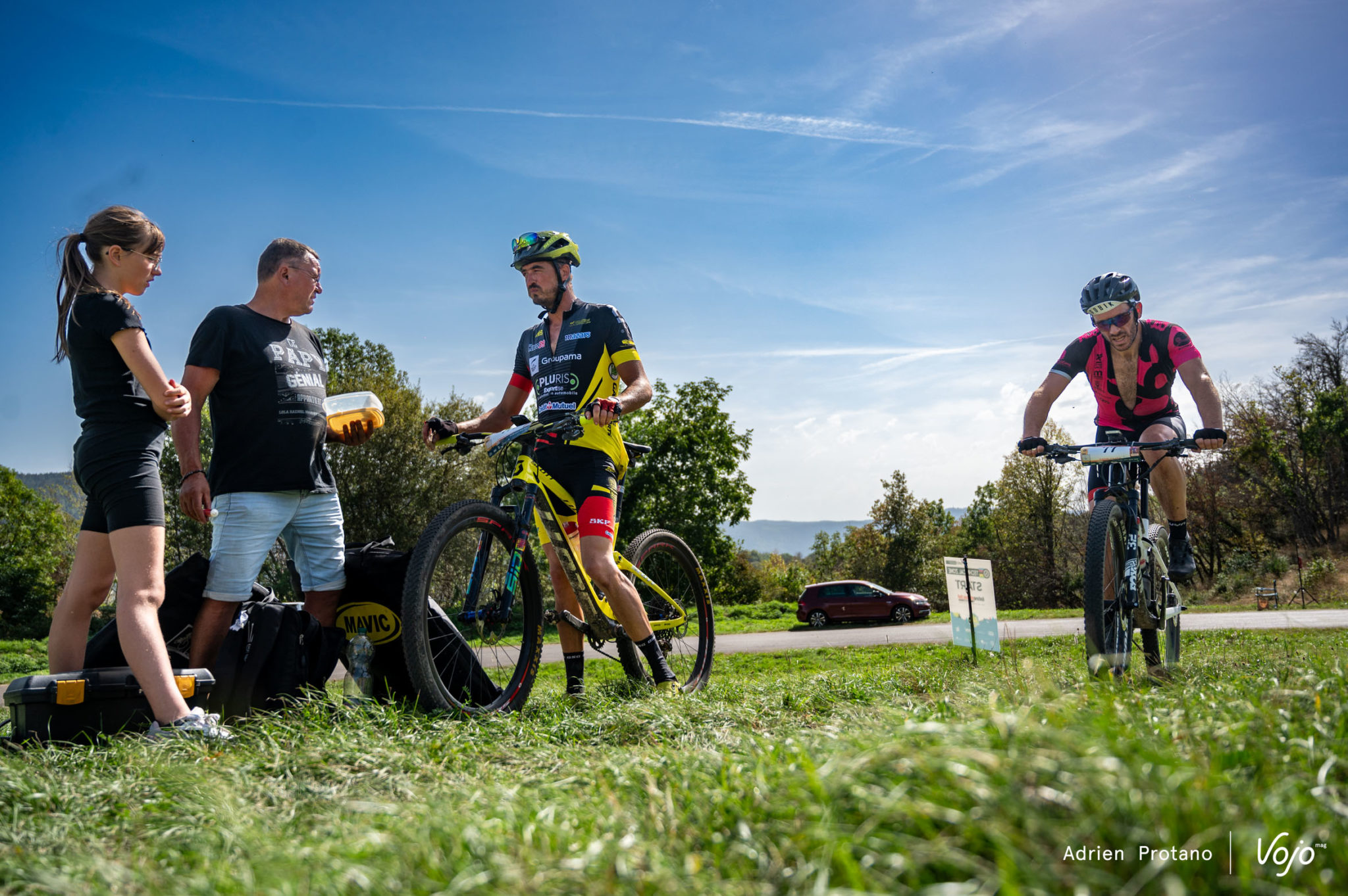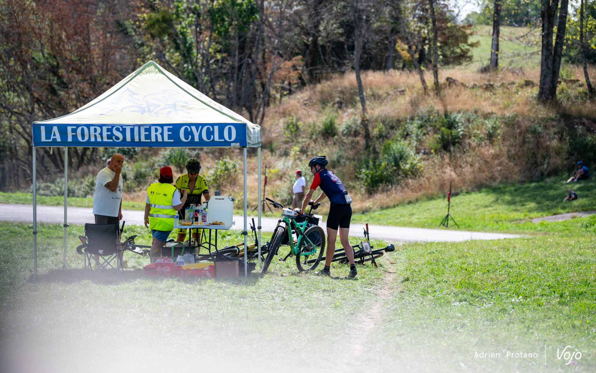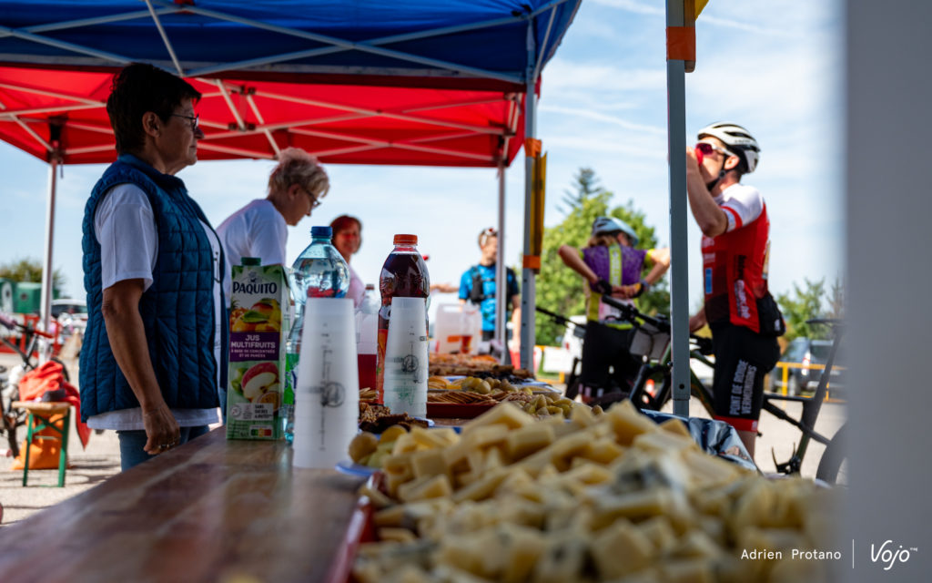 Nous voilà arrivés au dernier ravitaillement du parcours, qui fait également office de zone technique dans laquelle il est possible de recevoir l’assistance de ses proches en cas de soucis mécanique, ou uniquement pour partager un en-cas bien mérité !