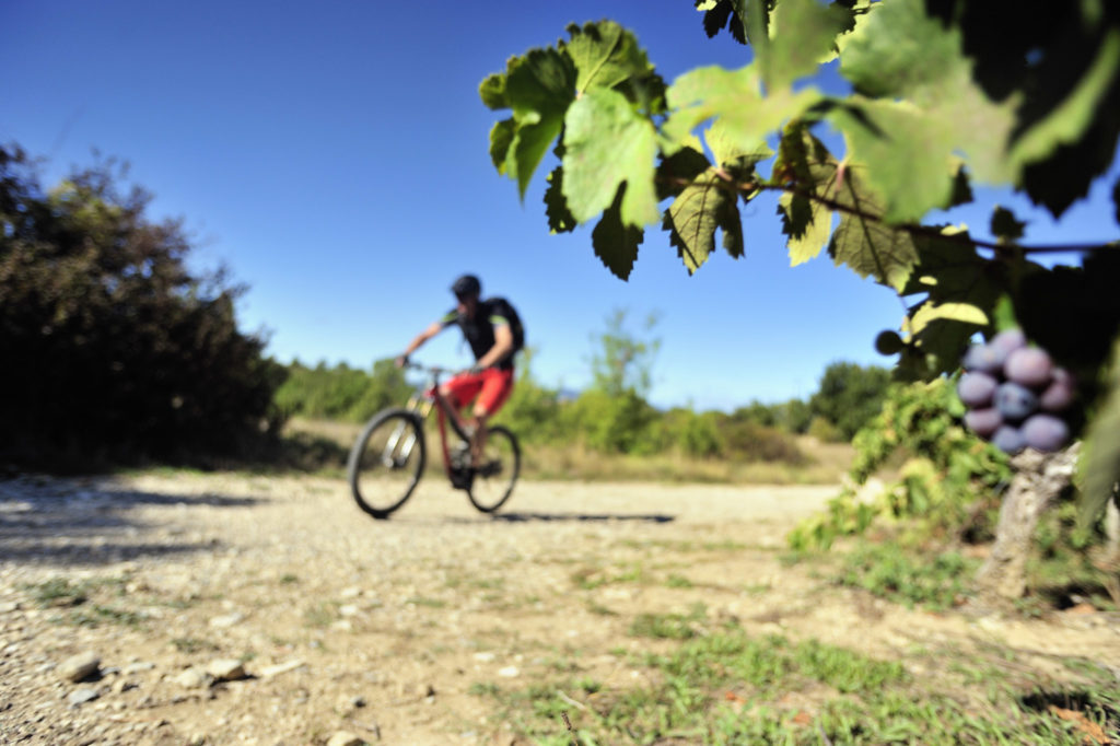 Du site, nous suivons une trace qui file tout droit et qui coupe les épingles de la route. Retour vers Salavas : l’itinéraire poursuit sa route vers l’est et grimpe vers Labastide-de-Virac. En cette fin de journée, l’esprit vagabonde. Nous rêvons de cette époque disparue où les hommes vivaient en totale harmonie avec la nature, sans les contraintes de notre monde moderne. Selon le guide de la grotte Chauvet 2, leur vie n’avait rien à envier à la nôtre. Nos gènes de nomades se ravivent quand on enfourche nos VTT : il est agréable d’aller où bon nous semble. Serions-nous les vrais héritiers de nos aïeux chasseurs cueilleurs ?