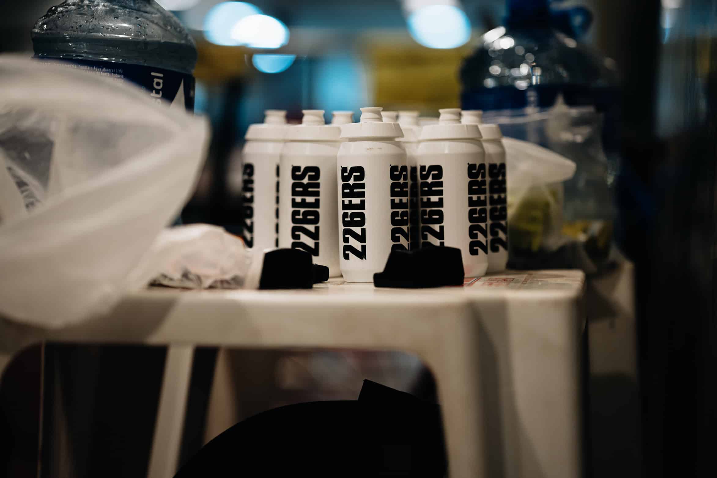 Cet hiver, on a eu un changement de partenariat côté nutrition, avec désormais la marque 226ers qui nous accompagne. Dès l’annonce, j’ai demandé à recevoir des produits en test, parce que pour moi, arriver sur les premières courses sans avoir pu essayer avant, ce n’est pas envisageable. Je suis assez exigeant à ce niveau-là : le goût, c’est un critère important. Si je n’apprécie pas ce que je bois, je sais que j’aurai tendance à moins m’hydrater… Sur la gamme RaceDay, le seul goût dispo actuellement, c’est Soft Lemon. Et pour être honnête, je ne suis pas fan. Du coup, je préfère rester sur la gamme Energy Drink, qui me convient mieux. On fait des concentrations assez fortes dans les bidons pour atteindre les bons apports : souvent 2,5 cuillères pour un demi-bidon, donc 5 cuillères pour un bidon complet… C’est conséquent !