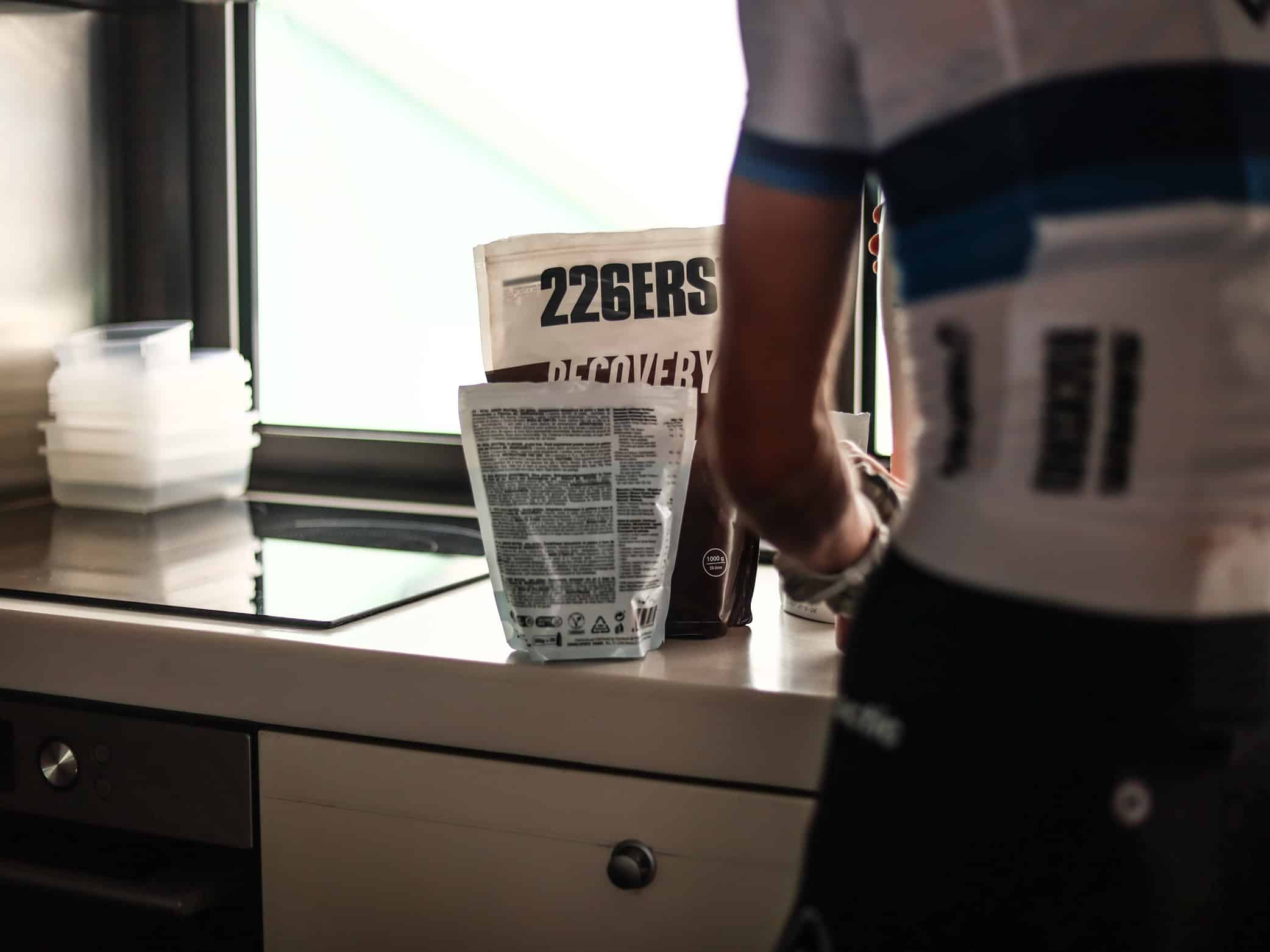 Cet hiver, on a eu un changement de partenariat côté nutrition, avec désormais la marque 226ers qui nous accompagne. Dès l’annonce, j’ai demandé à recevoir des produits en test, parce que pour moi, arriver sur les premières courses sans avoir pu essayer avant, ce n’est pas envisageable. Je suis assez exigeant à ce niveau-là : le goût, c’est un critère important. Si je n’apprécie pas ce que je bois, je sais que j’aurai tendance à moins m’hydrater… Sur la gamme RaceDay, le seul goût dispo actuellement, c’est Soft Lemon. Et pour être honnête, je ne suis pas fan. Du coup, je préfère rester sur la gamme Energy Drink, qui me convient mieux. On fait des concentrations assez fortes dans les bidons pour atteindre les bons apports : souvent 2,5 cuillères pour un demi-bidon, donc 5 cuillères pour un bidon complet… C’est conséquent !