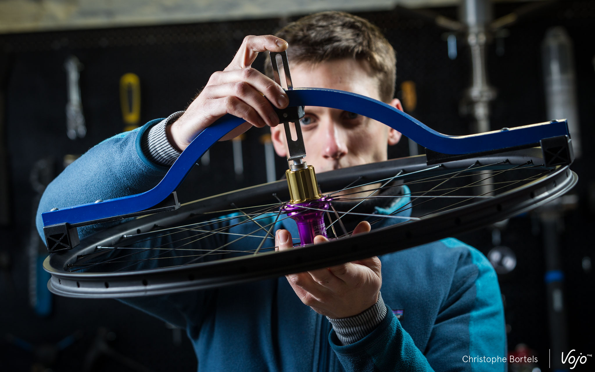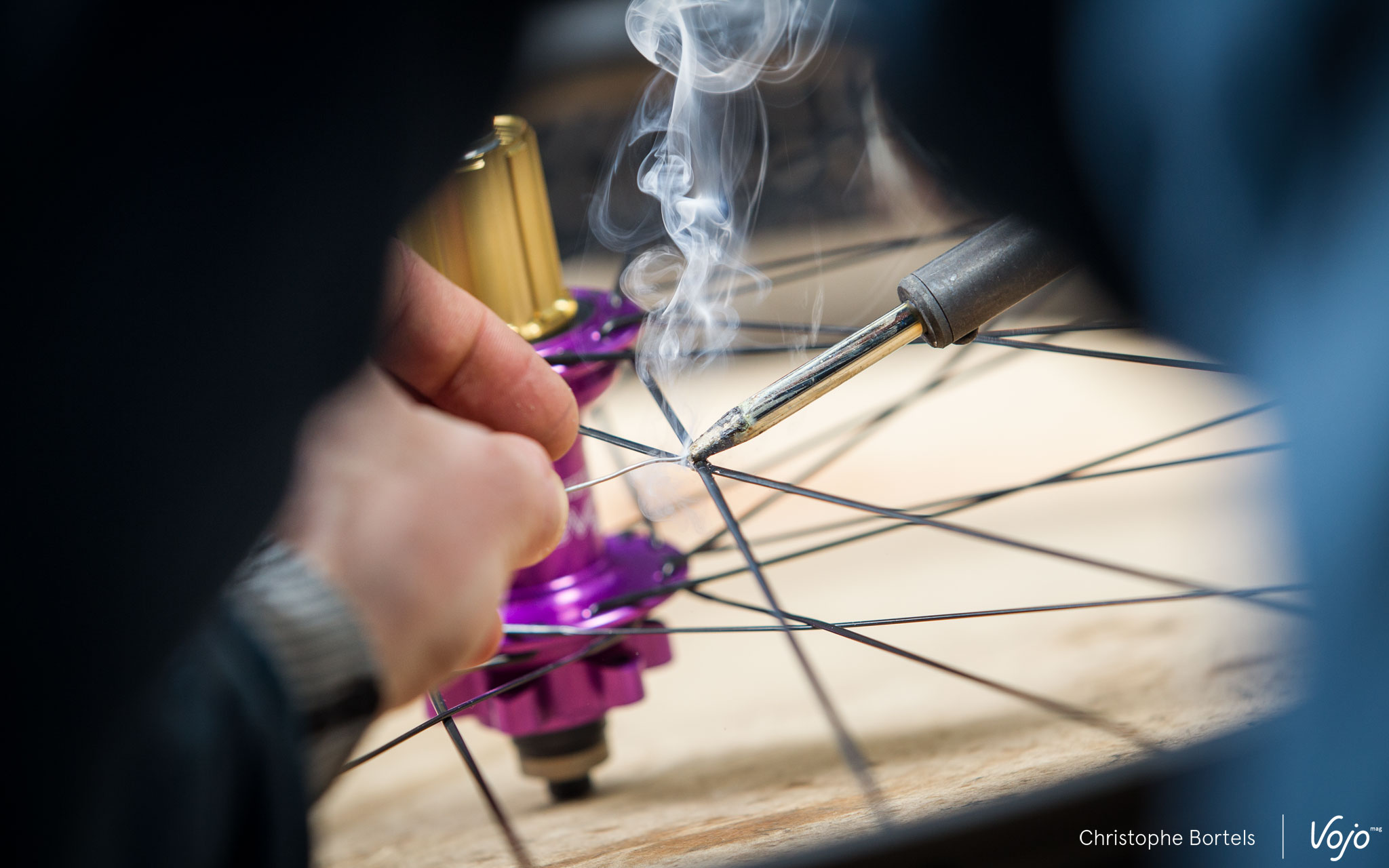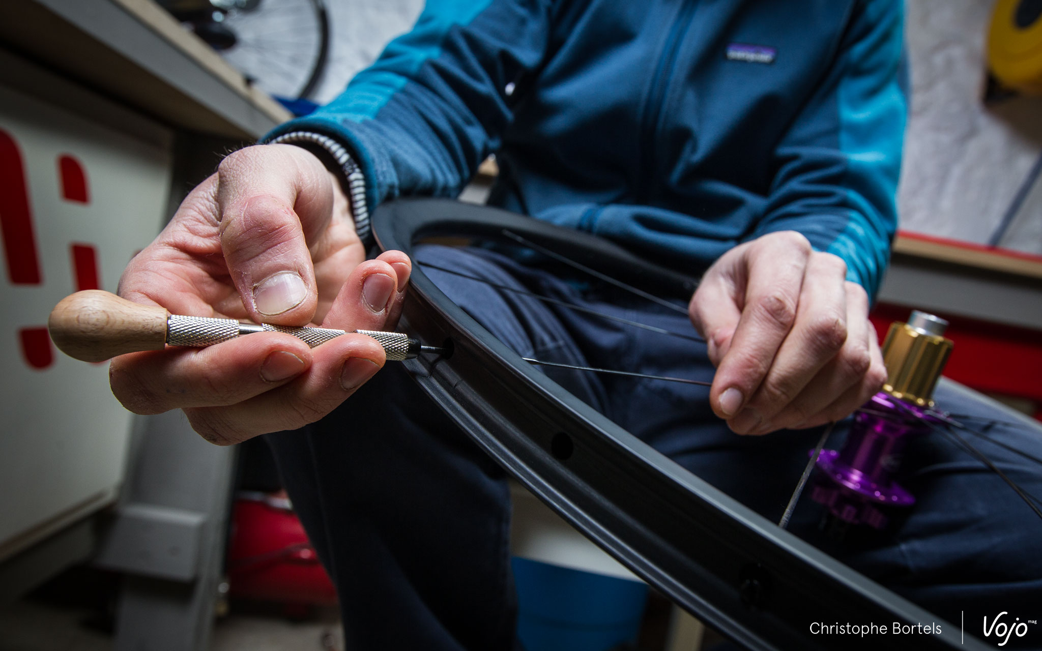 Pour beaucoup d’entre nous, la roue reste un grand mystère. On apprécie qu’elle soit solide, légère et dynamique, mais quand il s’agit d’en monter une de A à Z, on laisse faire « ceux qui savent ». Car assembler une roue, ça ne s’improvise pas, et la qualité d’un montage peut radicalement influencer le comportement d’un vélo. Le but ici n’est pas de proposer un tuto, encore moins de se lancer dans des considérations mathématico-physiques à coups de chiffres et de formules, mais tout simplement de vous faire découvrir le travail d’un monteur de roues « artisanales », sa méthode, ses outils et quelques-uns de ses secrets. Mais pas tous !