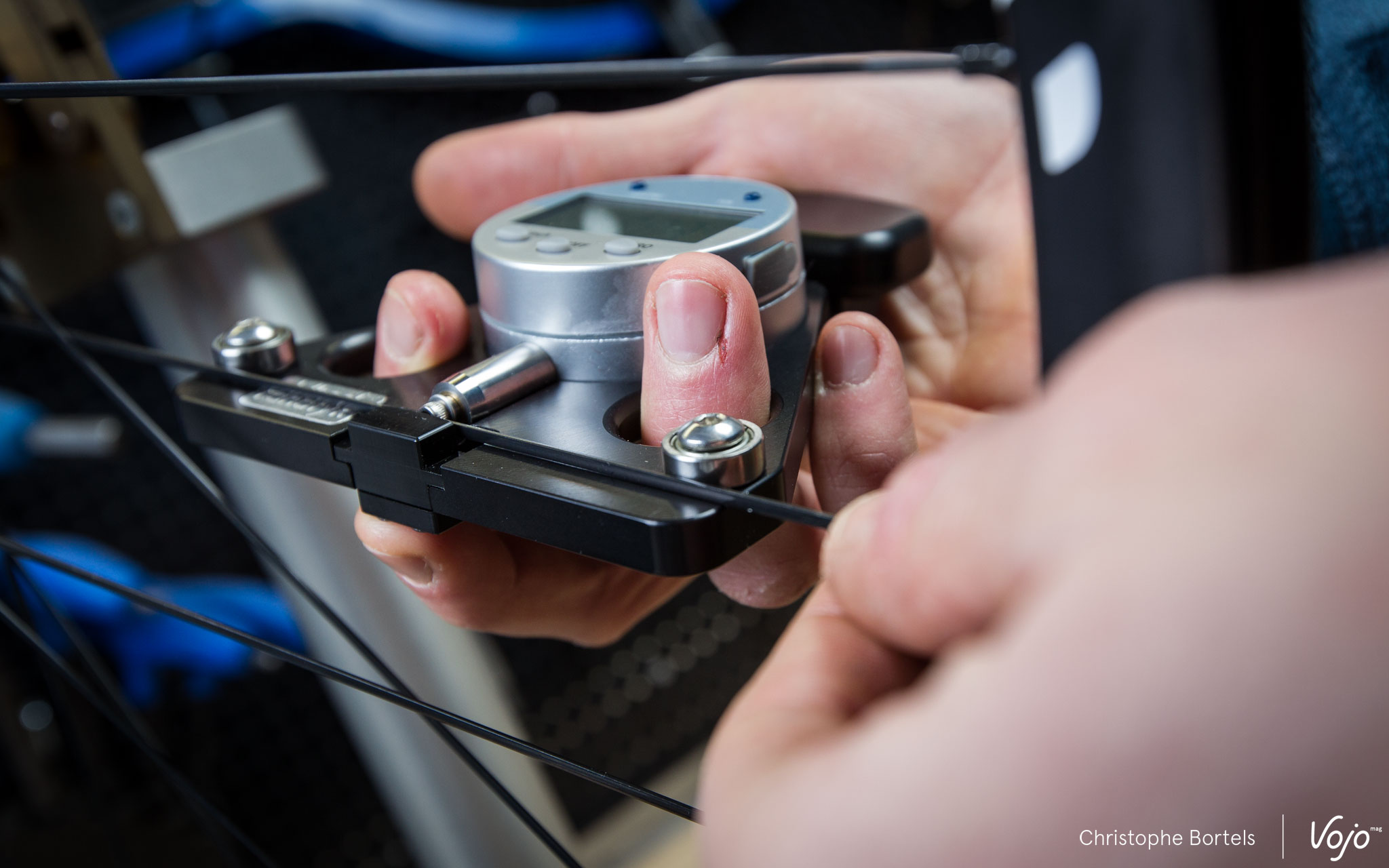 Le tensiomètre, c’est l’outil indispensable du monteur de roue. Il permet, comme son nom l’indique, de mesurer la tension du rayon. Cette mesure est prise plusieurs fois au cours du montage.