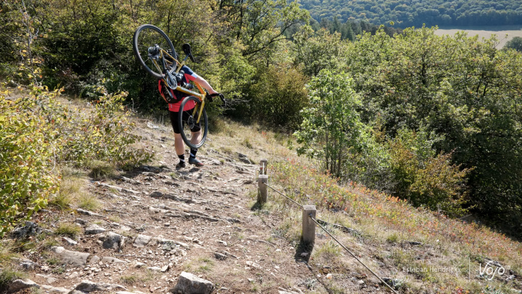 Le départ est donné avec un peu de retard à cause d’un souci d’adresse mais les kilomètres s’enchainent ensuite et tout se passe plutôt bien. Toute la trace n’est pas adaptée au vélo et il faut parfois envisager un peu de portage, mais rien de grave. Nous sommes partis légers et bien équipés, les paysages ne déçoivent pas. Ce n’est pas une région dans laquelle je roule souvent et on en profite vraiment à fond.