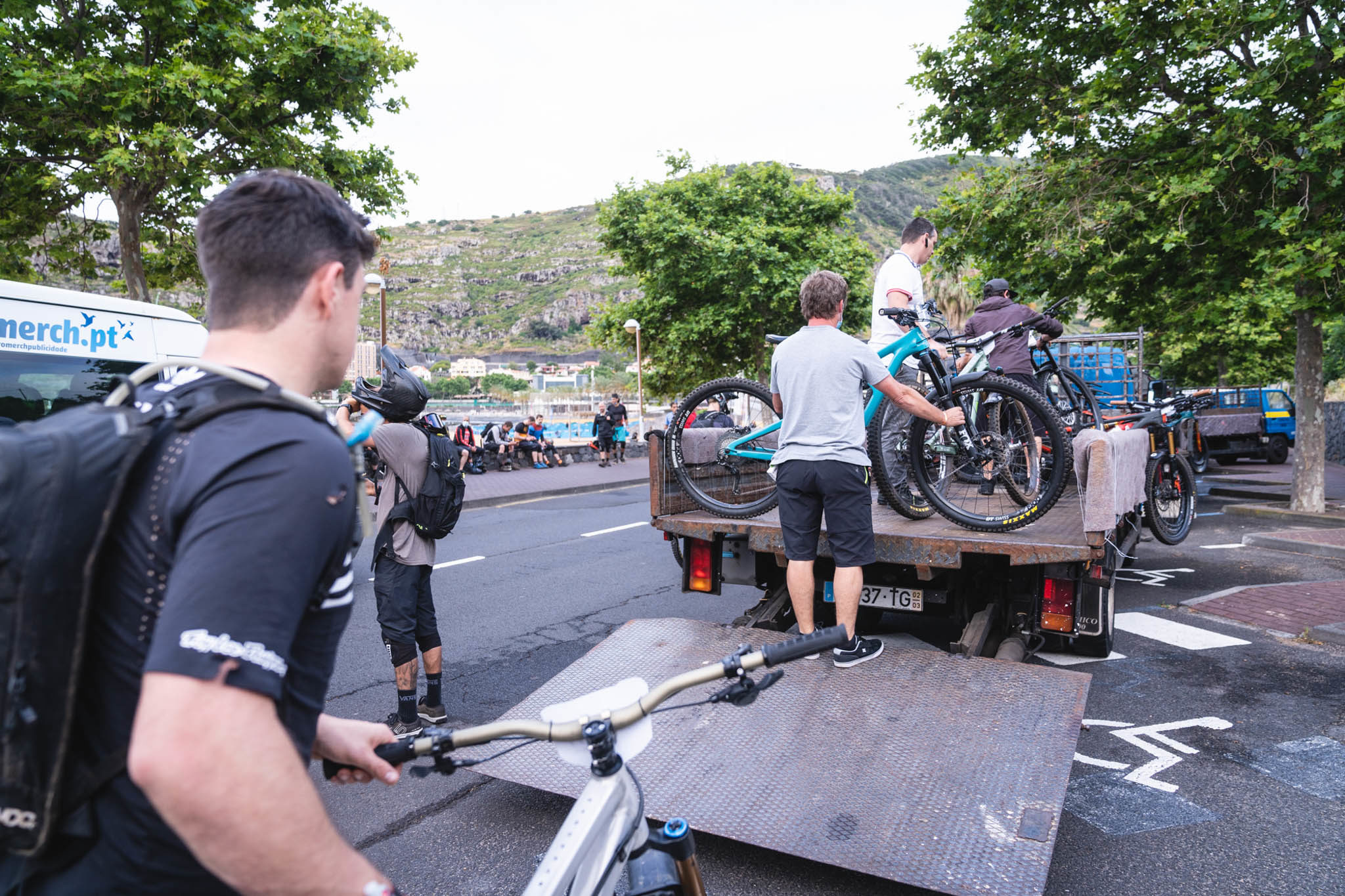 Sur la TransMadeira, chaque jour commence par une navette vers le sommet. 2 bus et quelques camions amènent les riders et les vélos au sommet de l’île pour passer plus de temps sur les sentiers pendant la journée, et quand on voit la pente de la route, on est bien content de la faire en navette !