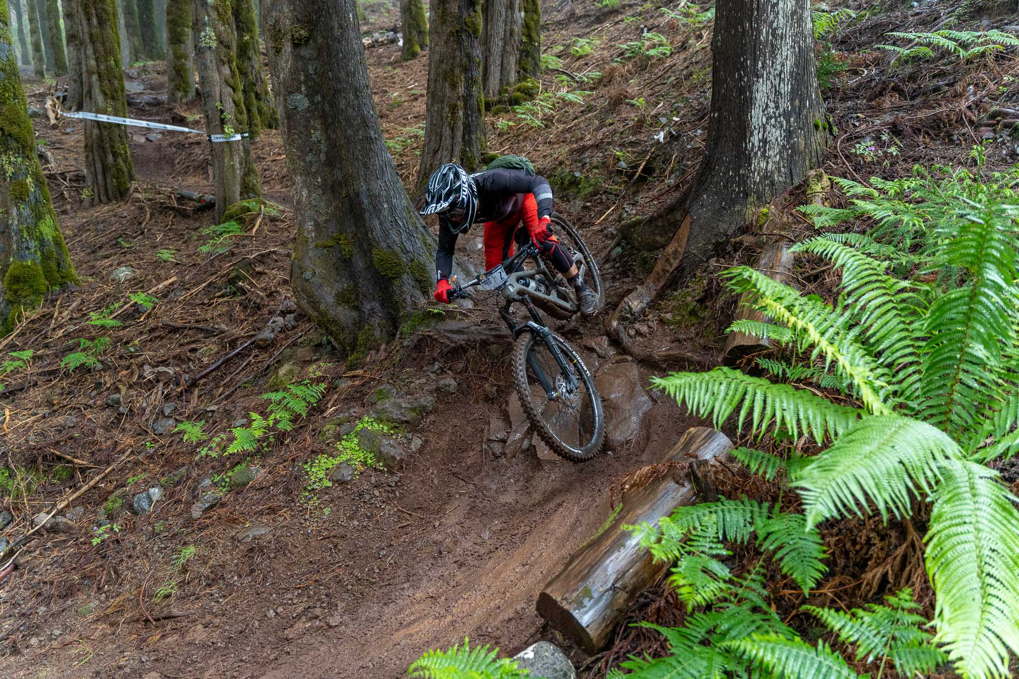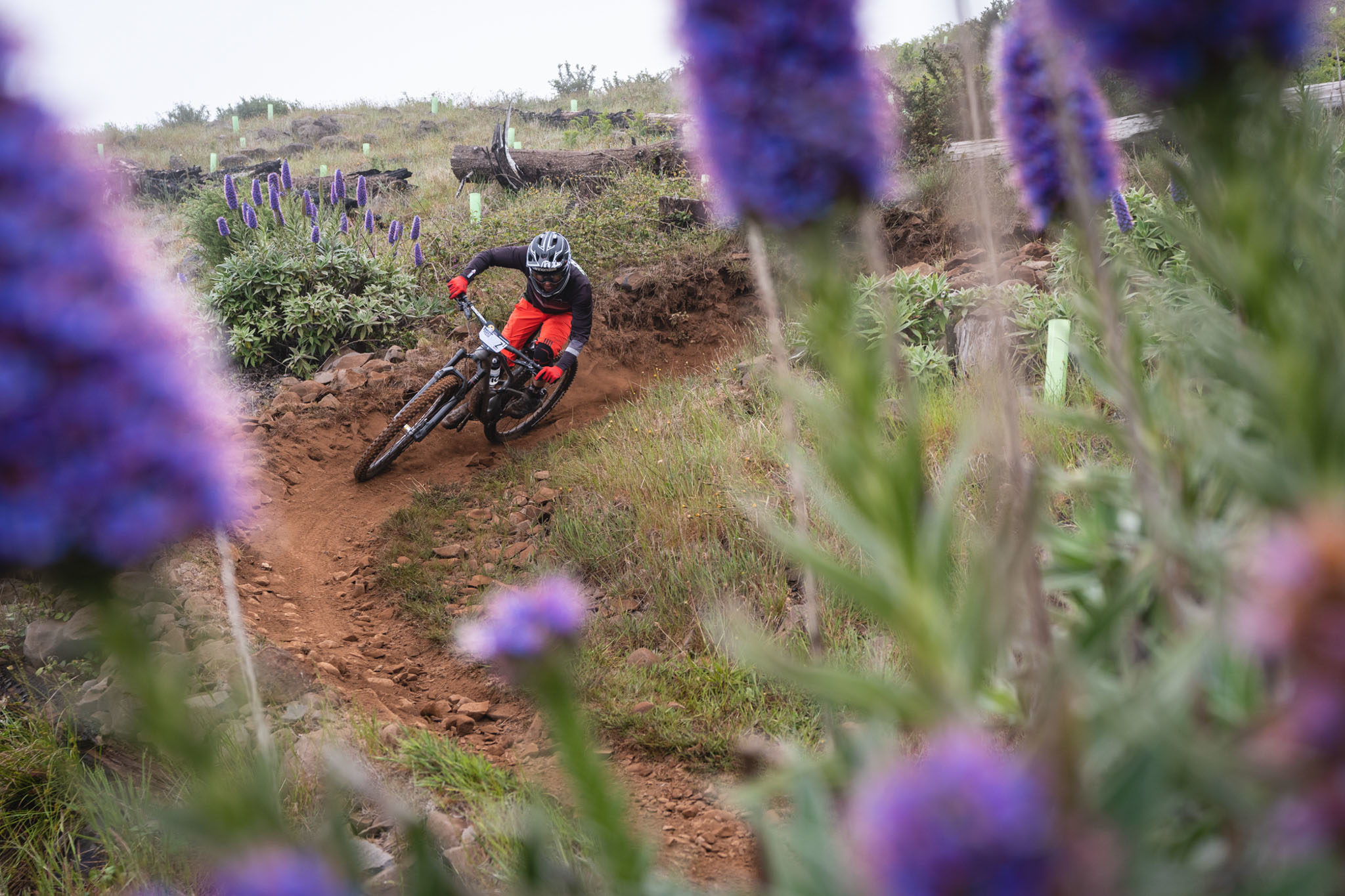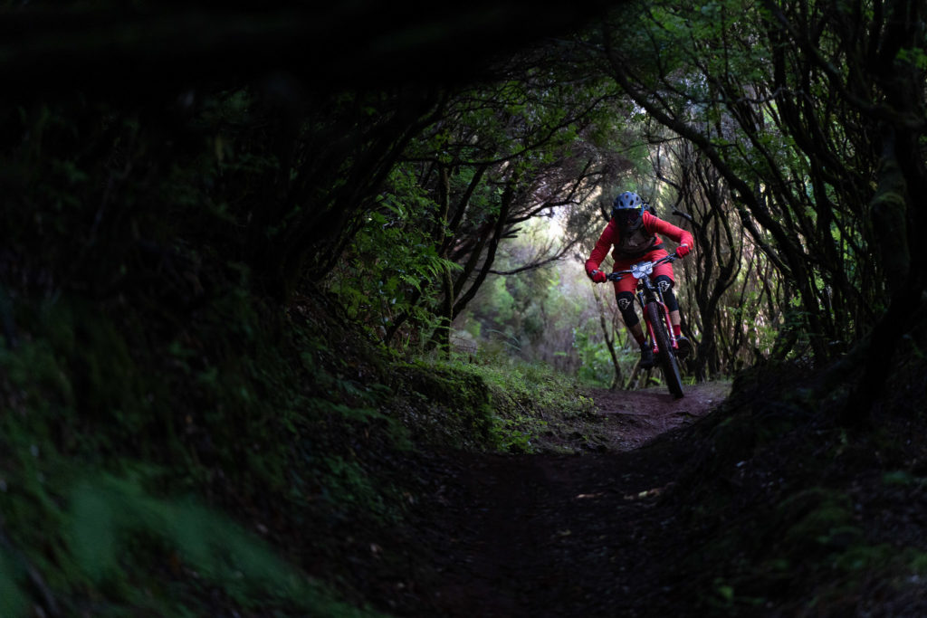 La terre est rouge, glissante mais les sentiers sont super fun à rouler, en prenant moins de vitesse, peu de risque et en slalomant dans la forêt. En mode course en revanche, on dépense beaucoup d’énergie à pomper et à sprinter en sortie de chaque virage ! A ce rythme, une erreur voire un problème mécanique peut vite arriver mais une course comme la Trans Madeira, c’est aussi de la gestion du risque.