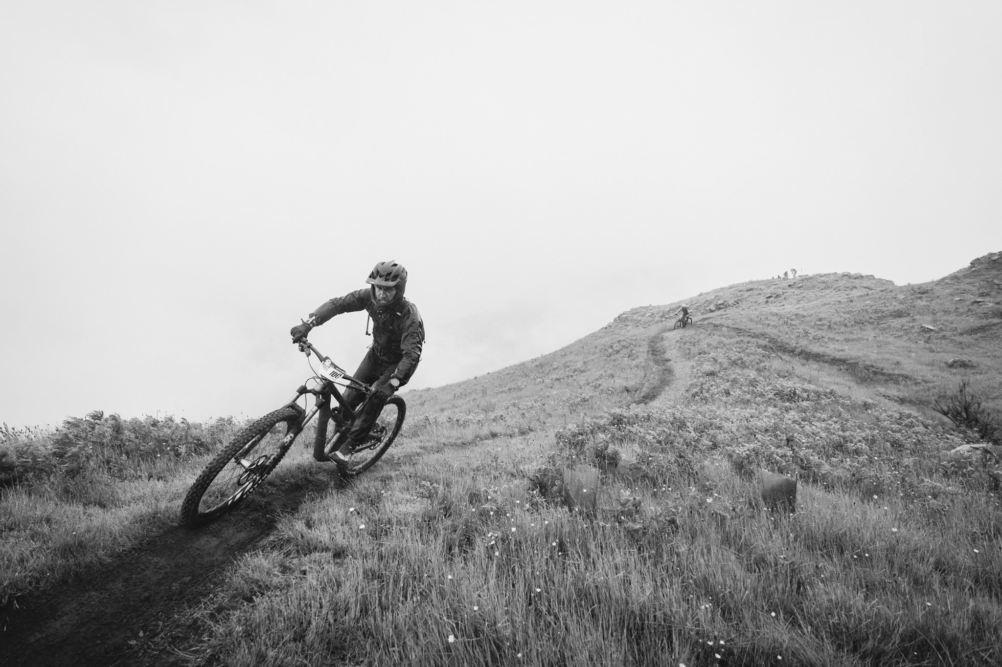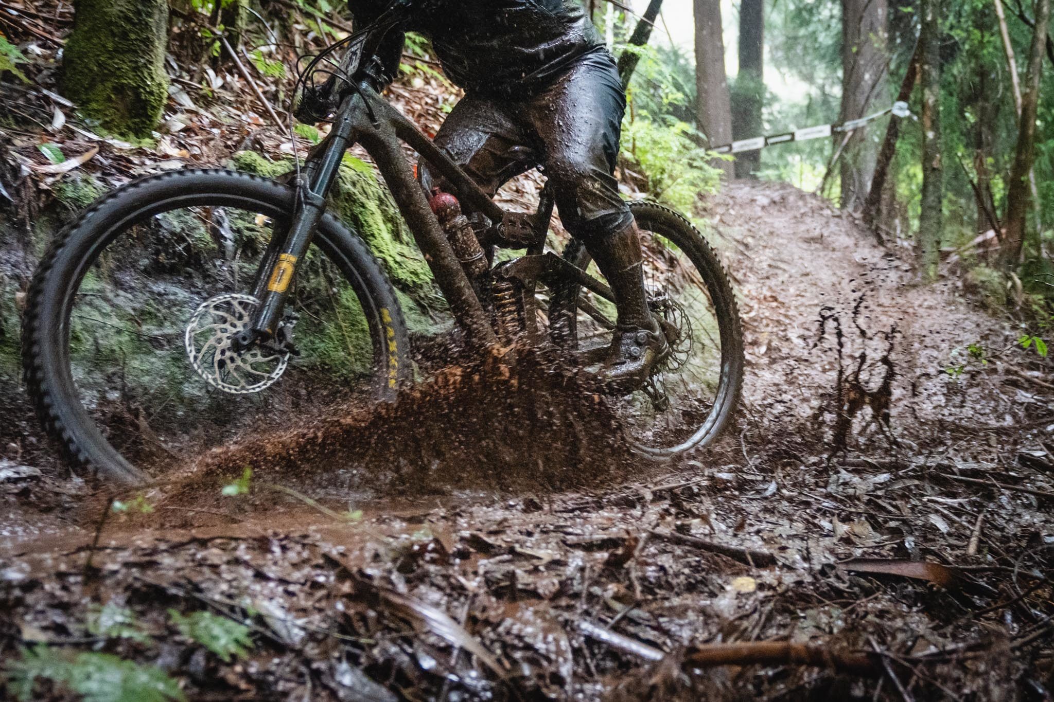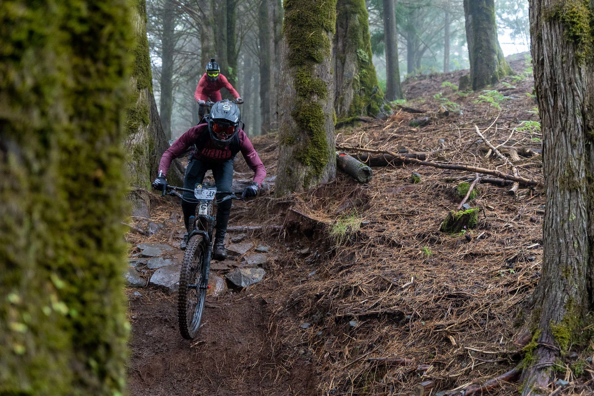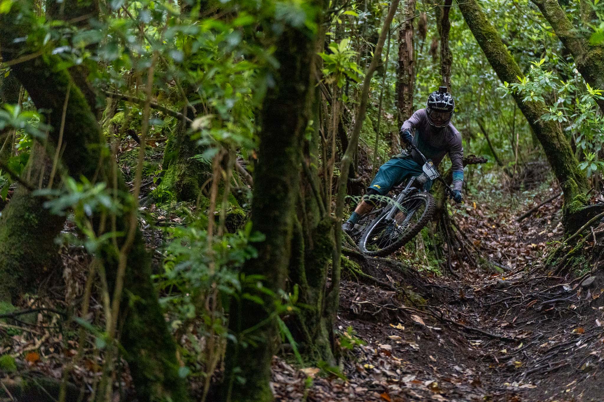 Parmi les riders, bien peu sont confiants avant d’affronter la tristement célèbre « glace noire » de Madère. Finalement, la pluie est si forte que nous ne l’affronterons pas vraiment aujourd’hui. La boue est tellement liquide que les pneus restent propres et c’est en fait assez fun à rouler ! La seule chose vraiment traître, c’est le « Serpent brun », autrement dit les racines !