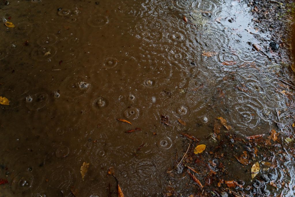 En regardant le ciel et les nuages coincés dans la montagne depuis la tente installée sur la plage, on se dit qu’on a encore une toute petite chance de rester au sec aujourd’hui, mais la route vers le départ va ruiner tout espoir. Aujourd’hui, ce sera pluie battante toute la journée !