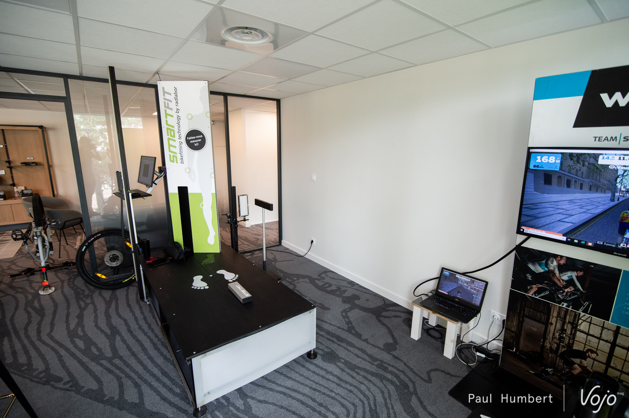 Dans la même pièce, un banc d’étude posturale est disponible pour vous aider à choisir au mieux votre vélo et adapter vos réglages.