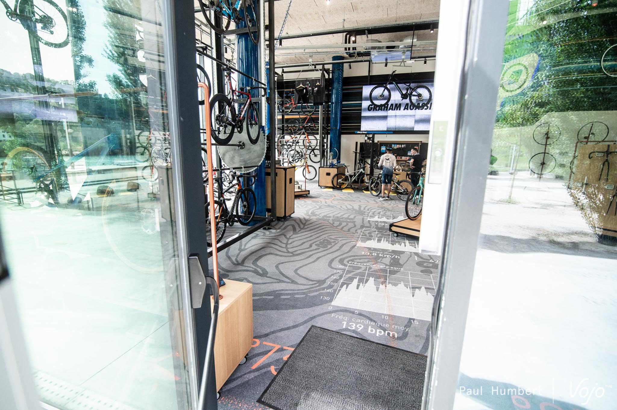 L’espace est à la hauteur des ambitions, et il conviendra maintenant de les réaliser. Avec de beaux projets en ligne de mire, les responsables de l’Ambassade Probikeshop ont déjà à coeur de faire vivre ce lieu unique en proposant des conférence, des ateliers, des formations produits, des avant-premières ou des projections. Au sens propre comme au figuré, l’espace est en mouvement et tous les présentoirs sont mobiles.