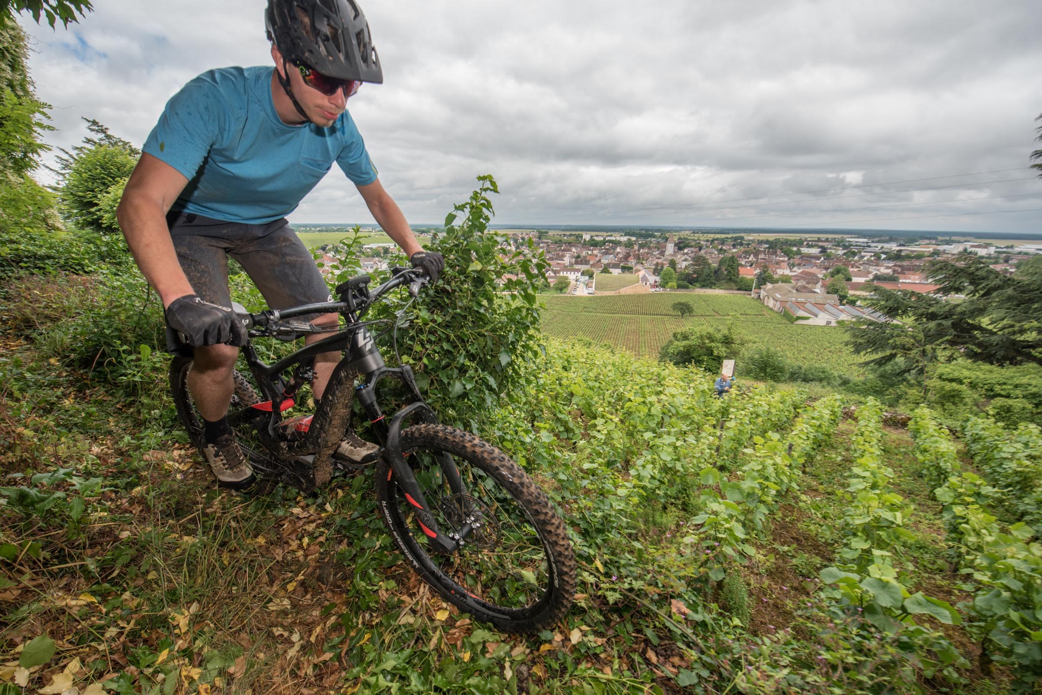 Une fois nos marques trouvées, nous continuons notre petite boucle à travers la campagne bourguignonne. Quel plaisir de trouver un vélo électrique avec une bonne vivacité ! Une bonne gestion de la puissance du moteur et la relative rigidité du vélo vous permettra de découvrir l’e-bike en mode « performance ». On positionne facilement sa roue avant et on se place bien plus facilement dans les virages sans plonger vers l’avant. Le pilotage nécessite toutefois un certain bagage pour exploiter le potentiel du vélo.