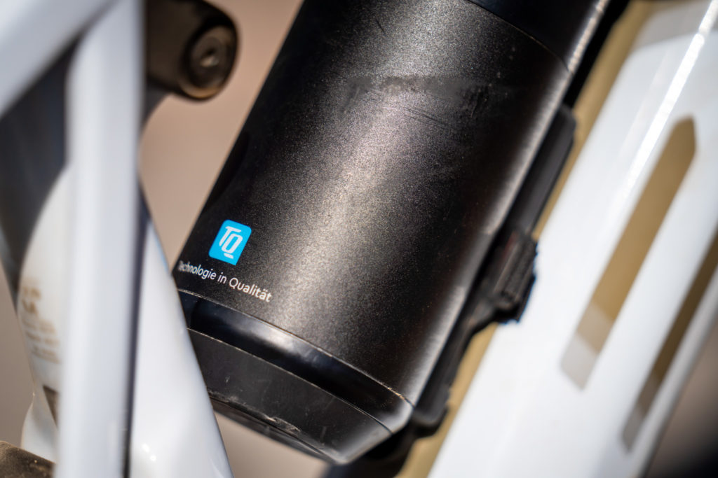 Contrairement à d’autres fabricants qui alternent les sources d’énergies lorsqu’un Range Extender est monté, TQ a décidé de programmer son système pour vider en premier cette réserve additionnelle puis de basculer sur la batterie principale. Il est donc tout à fait possible de commencer une sortie avec le Range Extender (l’affichage indique alors 150 % de batterie) et de le retirer en cours de route, lorsqu’on bascule sur la batterie intégrée au vélo ( quand l’affichage arrive à 100 %).