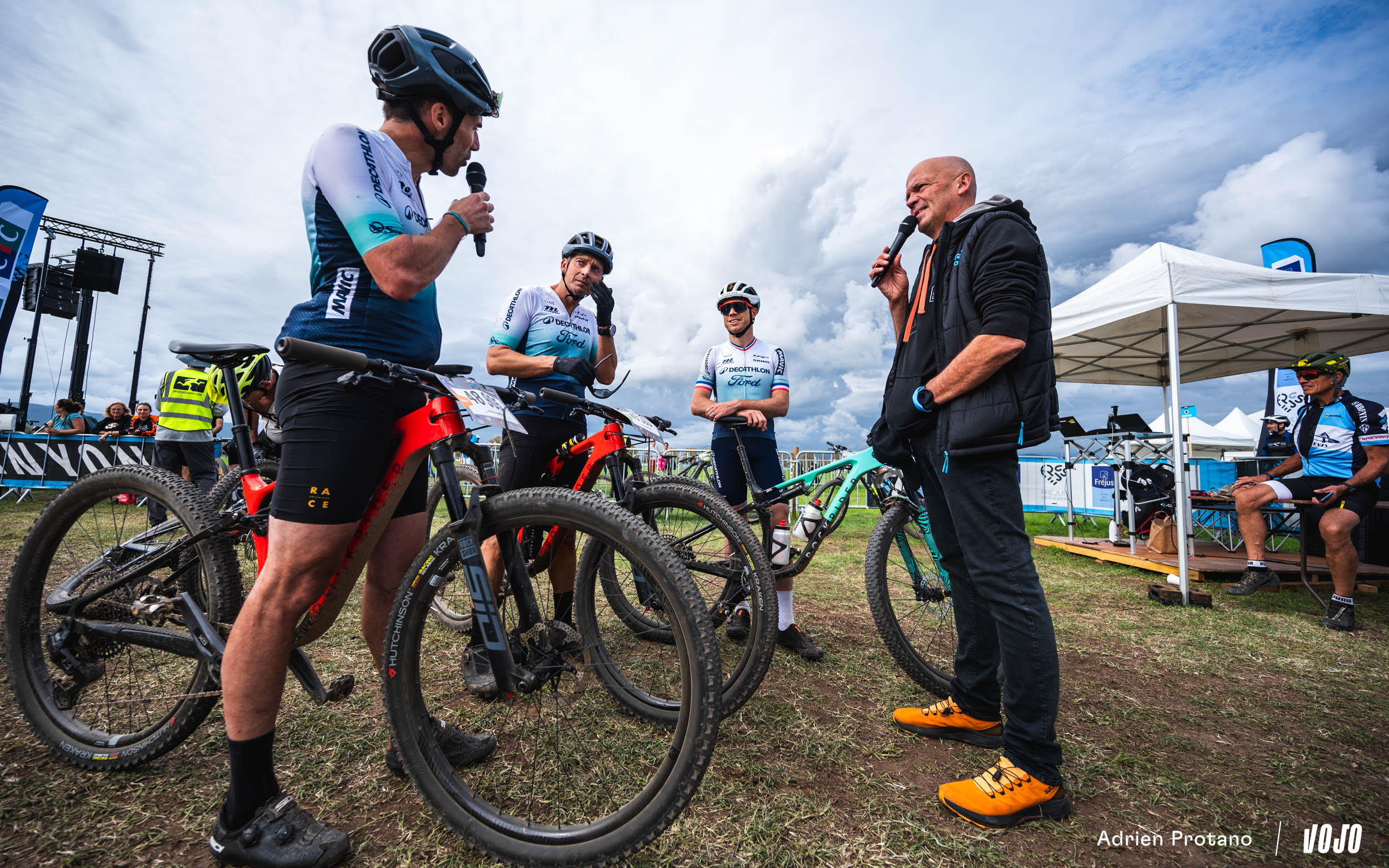 C’est lors de cette petite pause que la petite équipe sera rejointe par les collègues de Maxime Marotte : Emeline Detilleux et Greta Seiwald. Les deux pilotes féminines sont en pleine reconnaissance du parcours pour la course du lendemain et se mêlent au groupe le temps du ravito. Cela en fait du Rockrider au mètre carré ! Personne ne le sait à ce stade, mais Emeline est en train de préparer sa victoire du lendemain : Roc 2024 | Roc d’Azur : la surprise du chef !