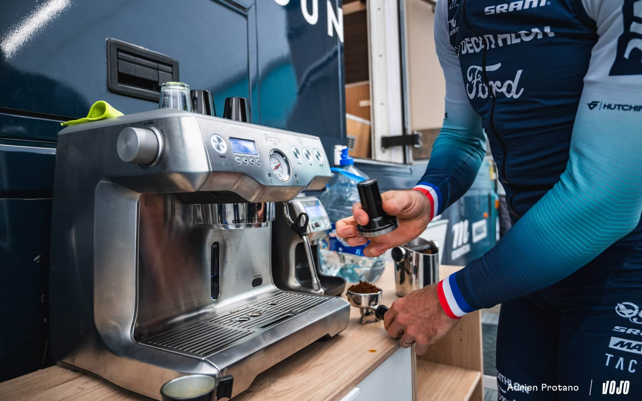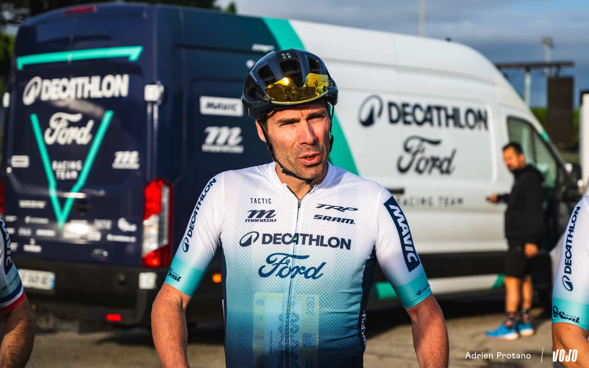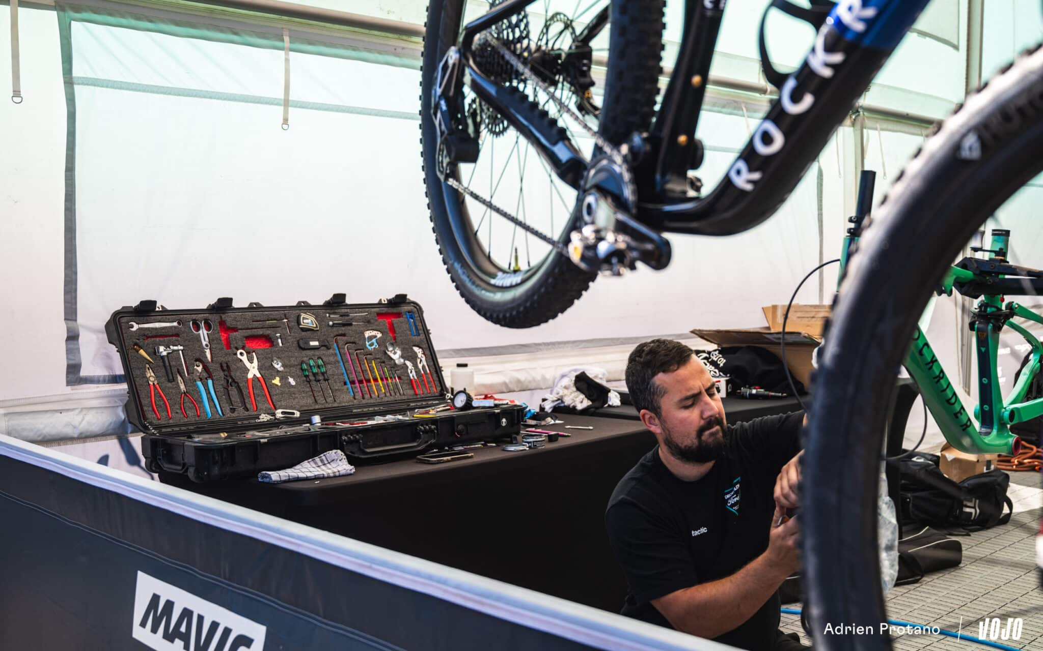 Pour que cette journée à bord du Race 940S soit idéale, Cyril et Ludo ont eu droit à un service VIP pour peaufiner les réglages de leur vélo du jour : Joseph de Poortere (ingénieur produit) et Théo Mougenel (mécanicien au sein du Decathlon Ford Racing Team) ont répondu présents en cette matinée. Cerise sur le gâteau, c’est Monsieur Maxime Marotte qui s’occupe des pressions en personne !