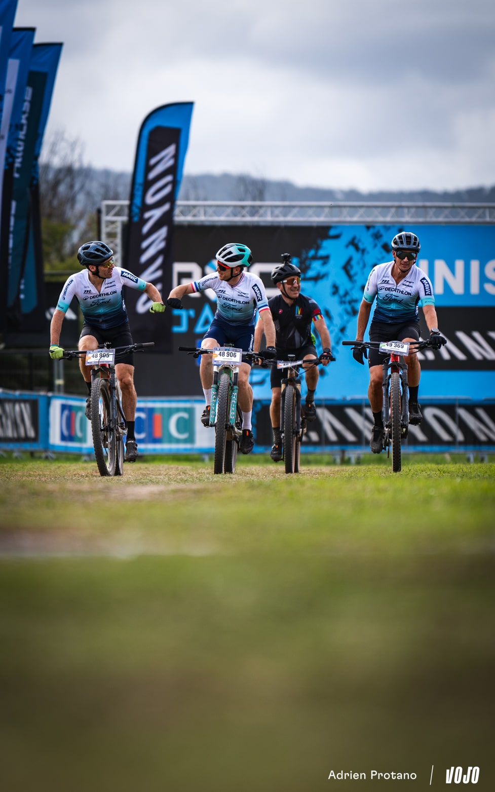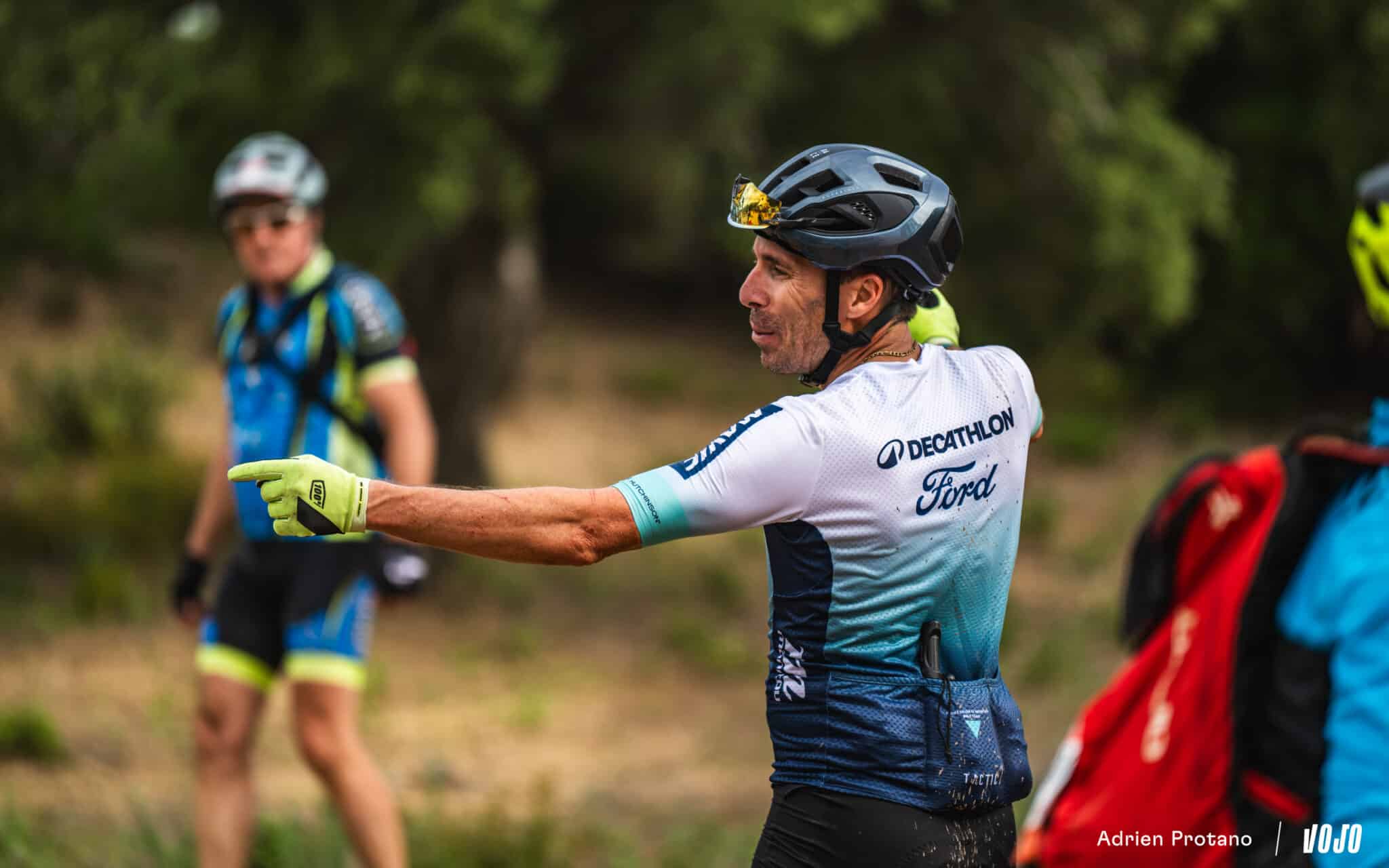 C’est lors de cette petite pause que la petite équipe sera rejointe par les collègues de Maxime Marotte : Emeline Detilleux et Greta Seiwald. Les deux pilotes féminines sont en pleine reconnaissance du parcours pour la course du lendemain et se mêlent au groupe le temps du ravito. Cela en fait du Rockrider au mètre carré ! Personne ne le sait à ce stade, mais Emeline est en train de préparer sa victoire du lendemain : Roc 2024 | Roc d’Azur : la surprise du chef !