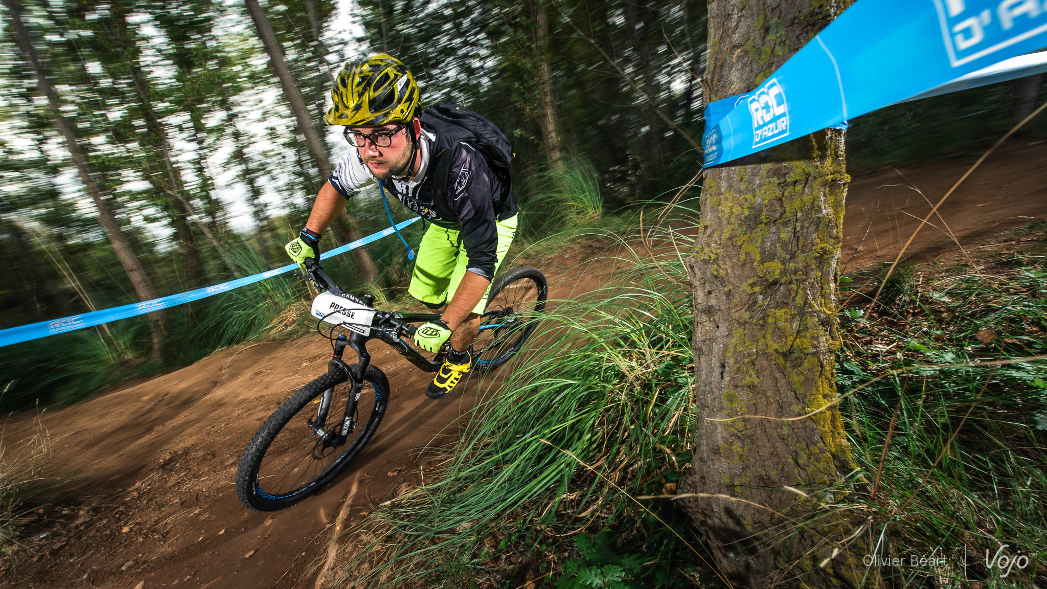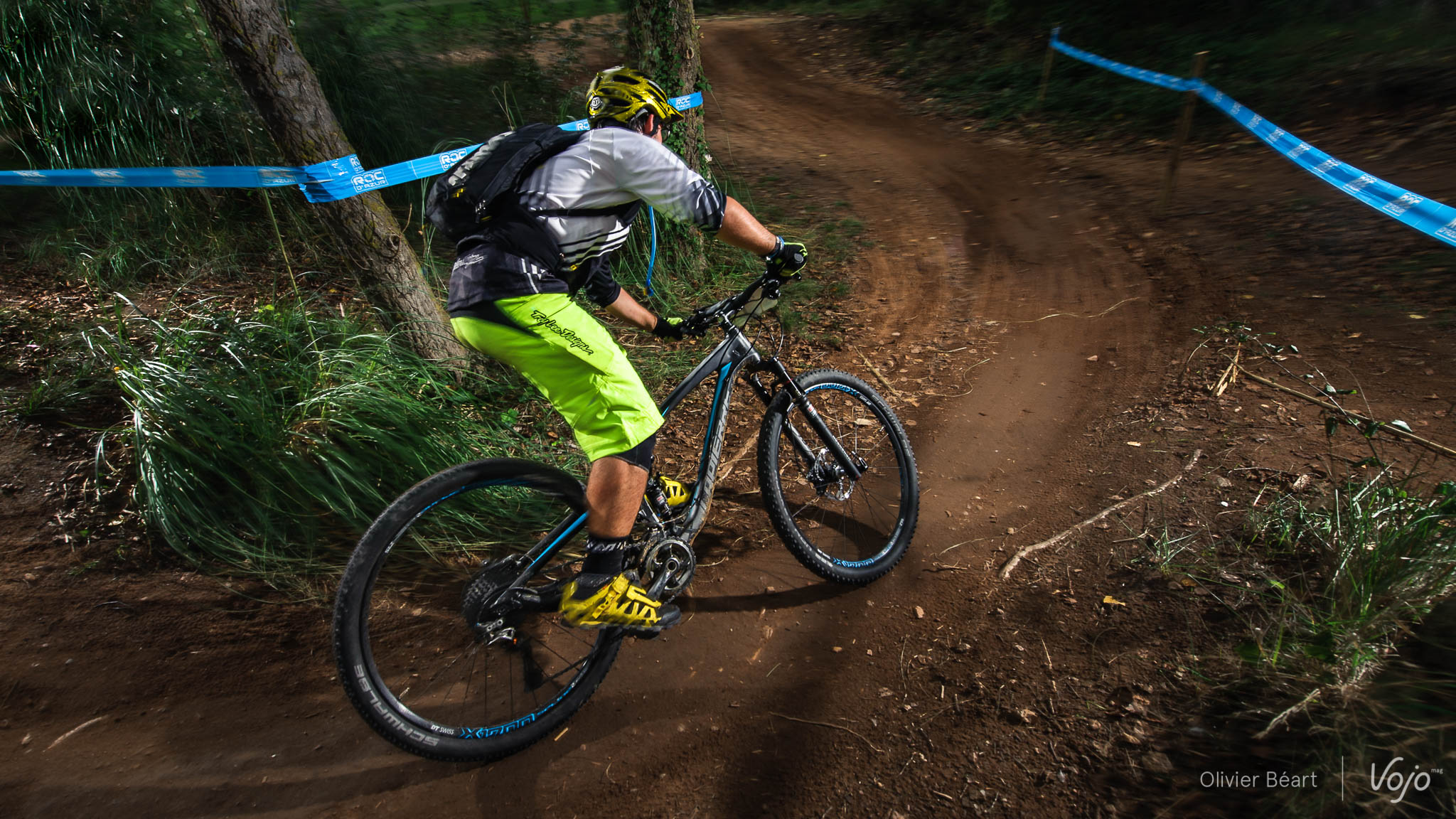 Après un rapide réglage de la hauteur de selle et des suspensions (toujours aussi facile grâce aux indicateurs de SAG), c’est parti pour le départ de l’épreuve, que nous prenons en 3e vague. La suspension X-Control est synonyme d’anti-pompage et cela se remarque tout de suite : on n’a pas de sensation d’affaissement au pédalage et on peut rapidement se permettre d’attaquer en laissant les suspensions en position ouverte. Heureusement d’ailleurs, car la mollette de blocage de l’amortisseur n’est pas facilement accessible en roulant. Quant au blocage au cintre de la fourche, il ne sert vraiment que sur les portions de route ou de longs chemins plats. Le reste du temps, on laisse tout ouvert et on profite d’un maximum de grip et de confort, qui sont deux points forts de la machine.