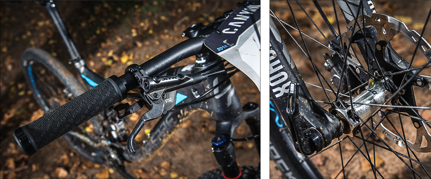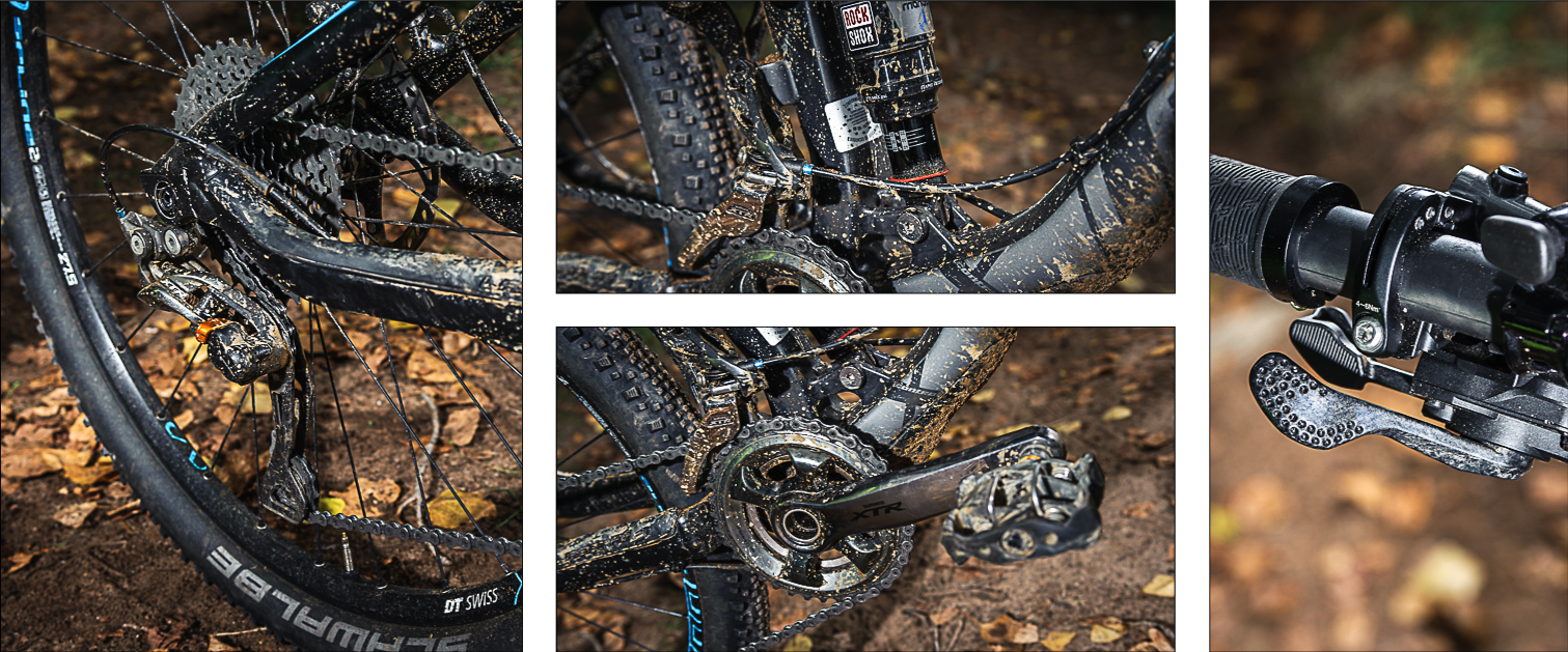 Un de points fort de ce montage, c’est le nouveau groupe XTR 11 vitesses de Shimano, avec lequel nous avons pu faire également un premier galop d’essai court, mais représentatif. Ce n’était pas (encore) la version électronique, mais même si on n’entend quasiment plus parler que de Di2, il ne faut pas oublier la version mécanique, qui est loin d’avoir rendu les armes. S’il fallait résumer le feeling du groupe, on peut dire qu’il a de sérieux arguments pour réconcilier les fervents amateurs du mono-plateau avec le double. Les changements entre les plateaux de 26 et 36 dents semblent instantanés et sans effort. On se surprend souvent à changer de plateau rapidement plutôt que de pignon pour passer une petite bosse imprévue ou autre. Le changement de plateaux était déjà hyper rapide sur la précédente version, mais ici, on passe un nouveau palier.