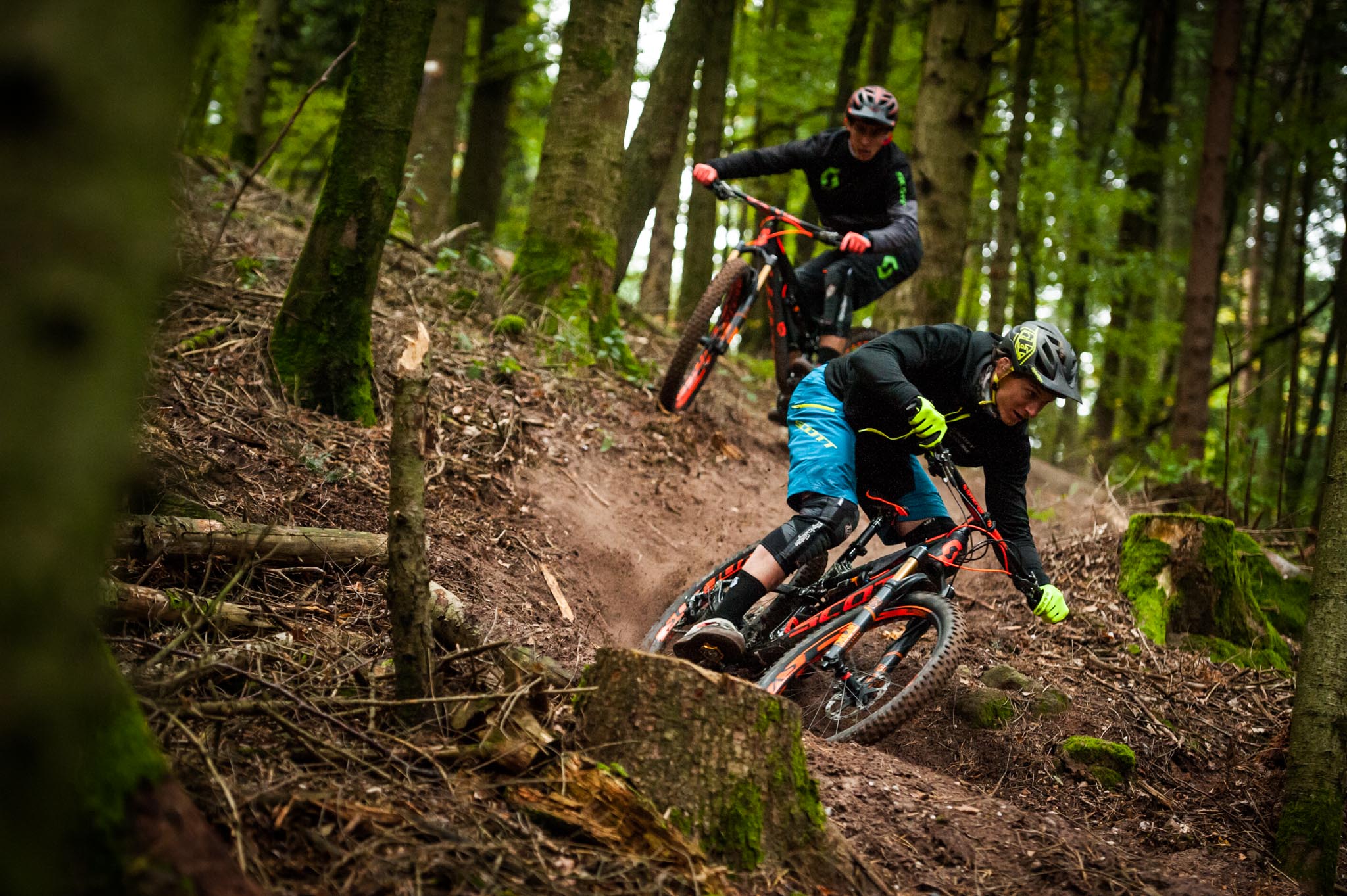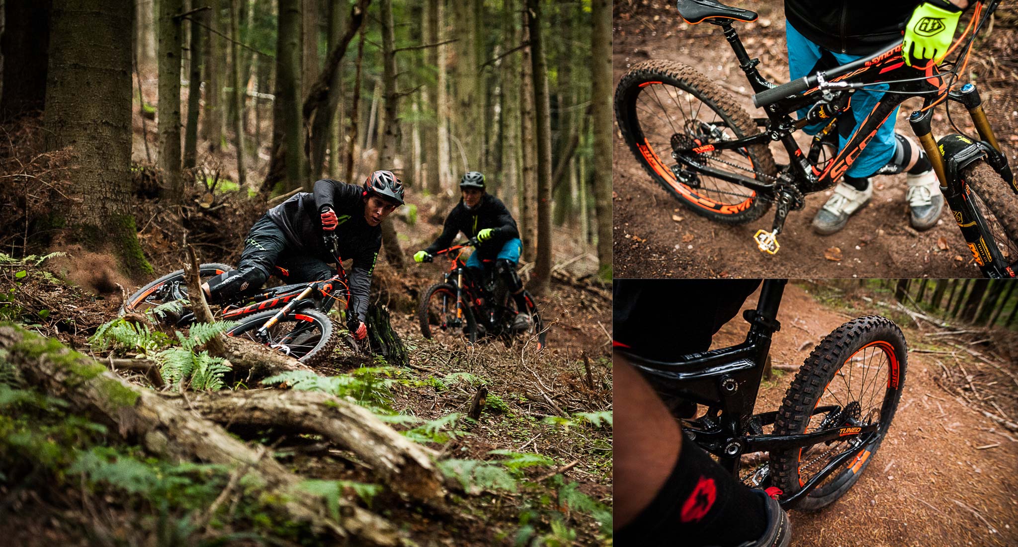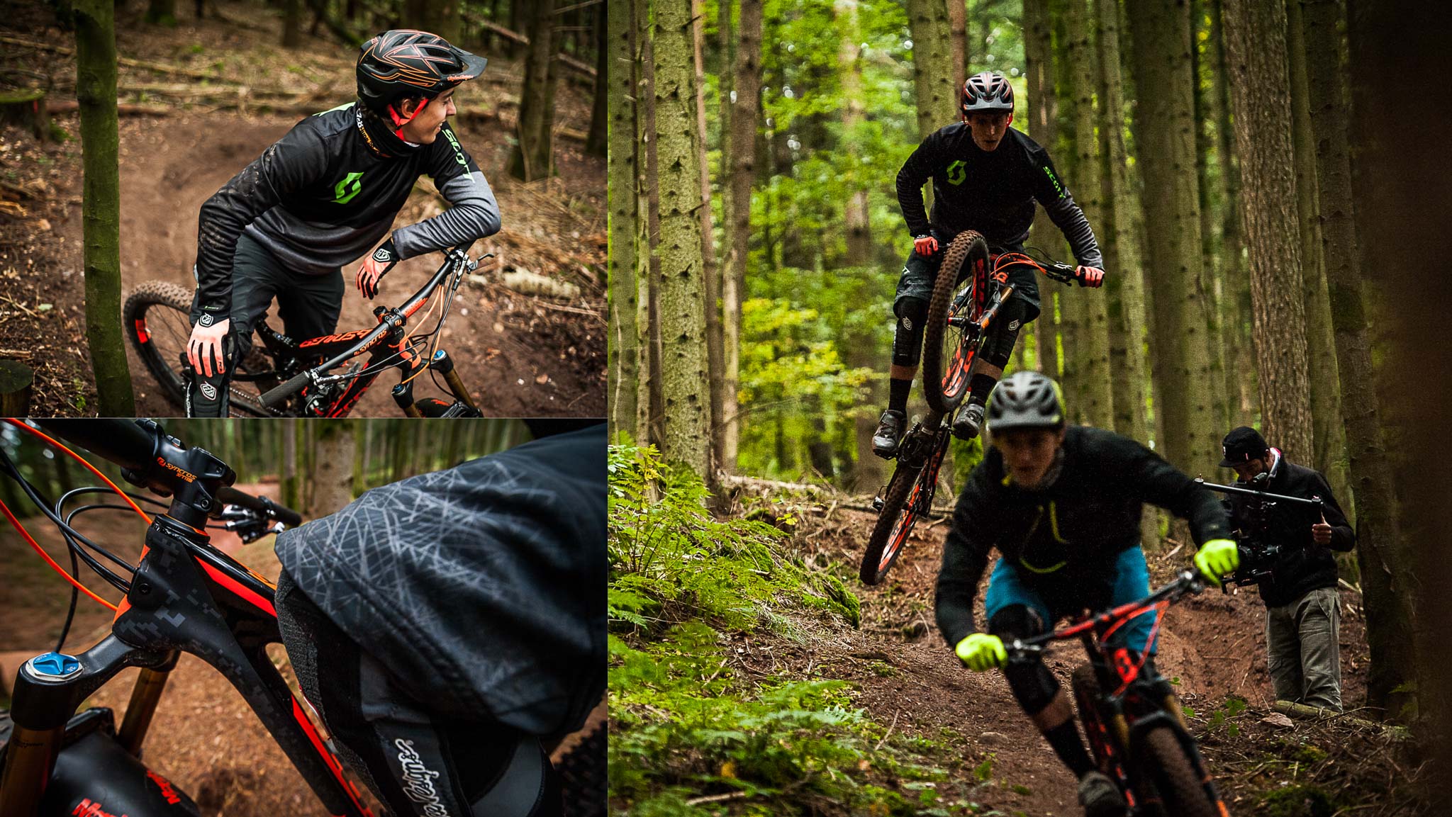 Après plusieurs jours passés à rouler « pour le fun » sur ce nouveau Scott Genius Plus, Pich et Amaury avaient rendez-vous avec Jérémie Reuiller pour le tournage d’une vidéo au guidon du vélo. Nous nous sommes glissés derrière Jérémie (dont vous avez pu voir les comptes-rendus photos des EWS cette année sur Vojo) pour immortaliser les premiers passages des pilotes.