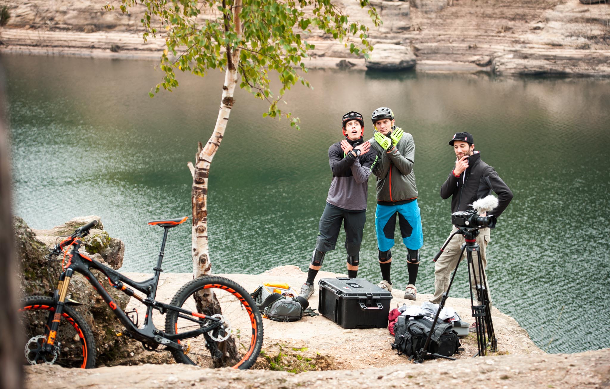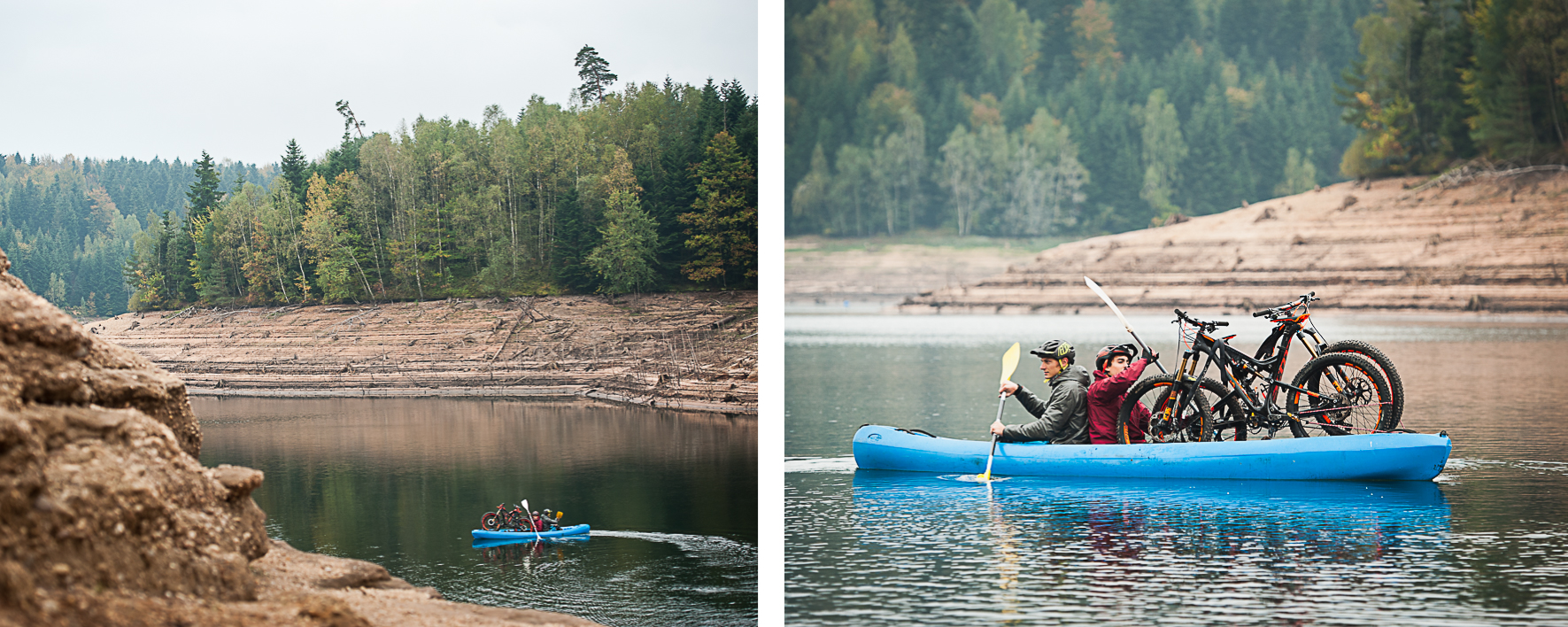 En guise d’introduction, direction le lac de pierre percée où les pilotes chargent leurs vélos sur un canoë.